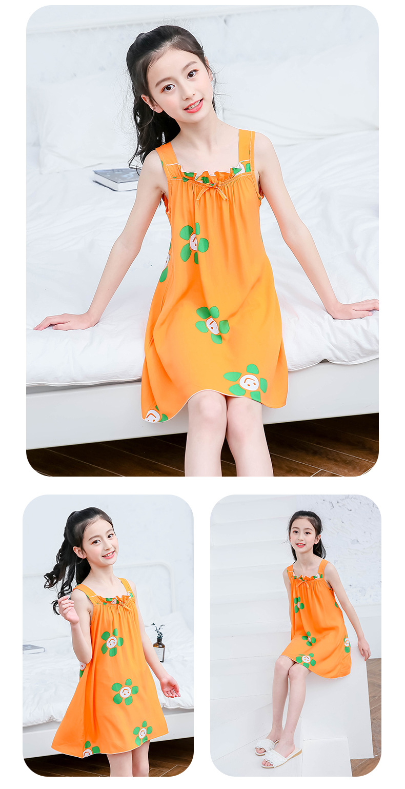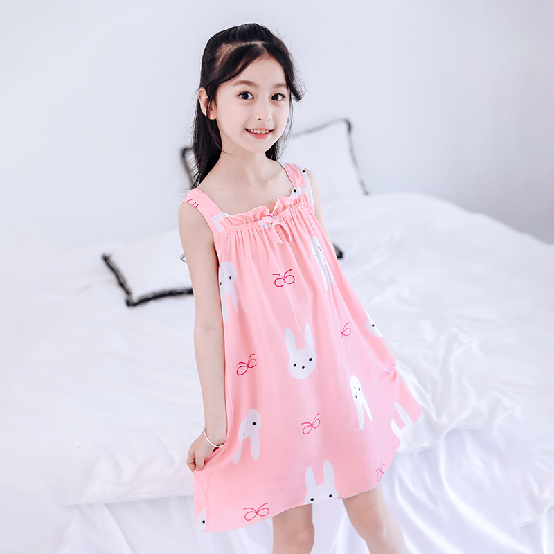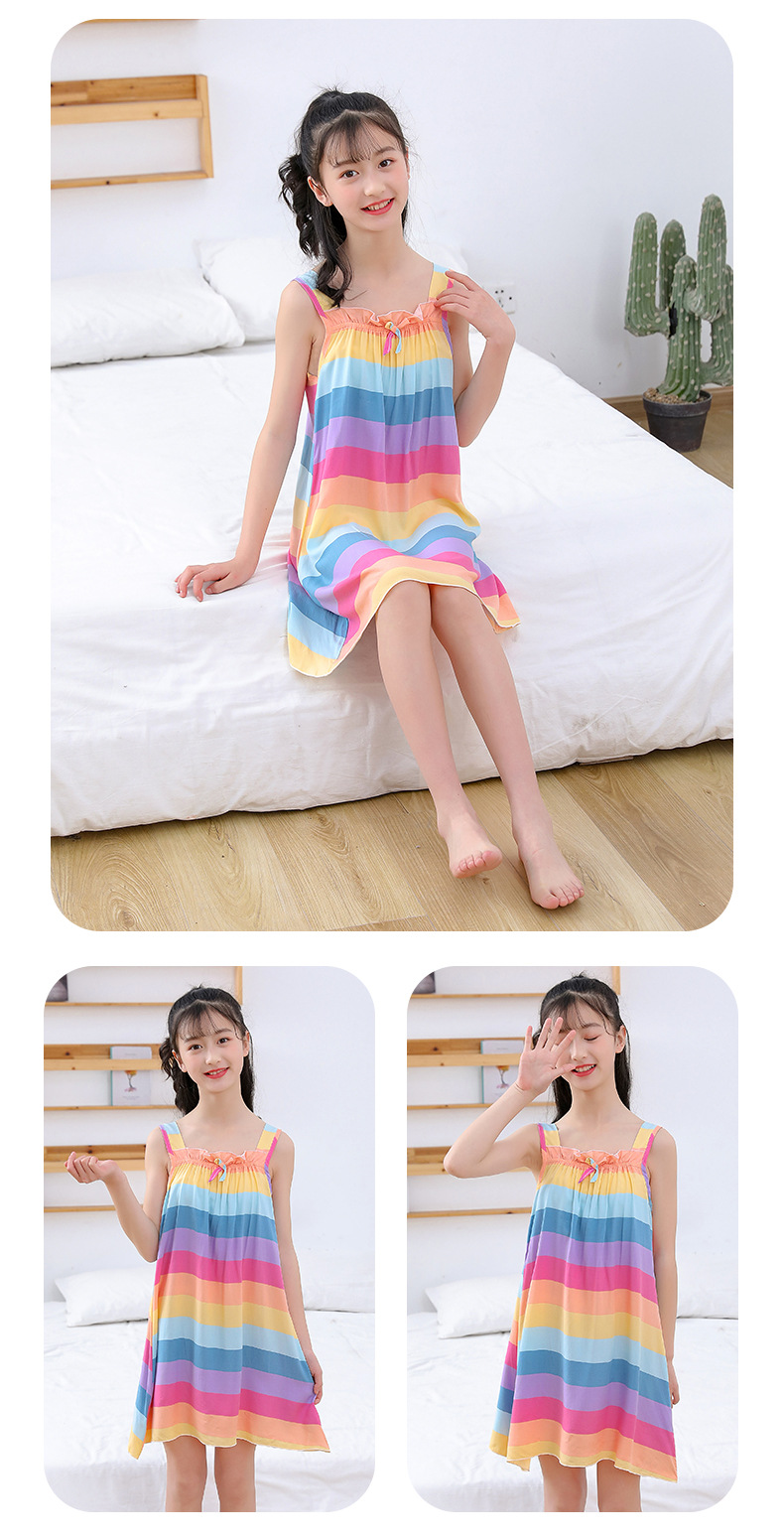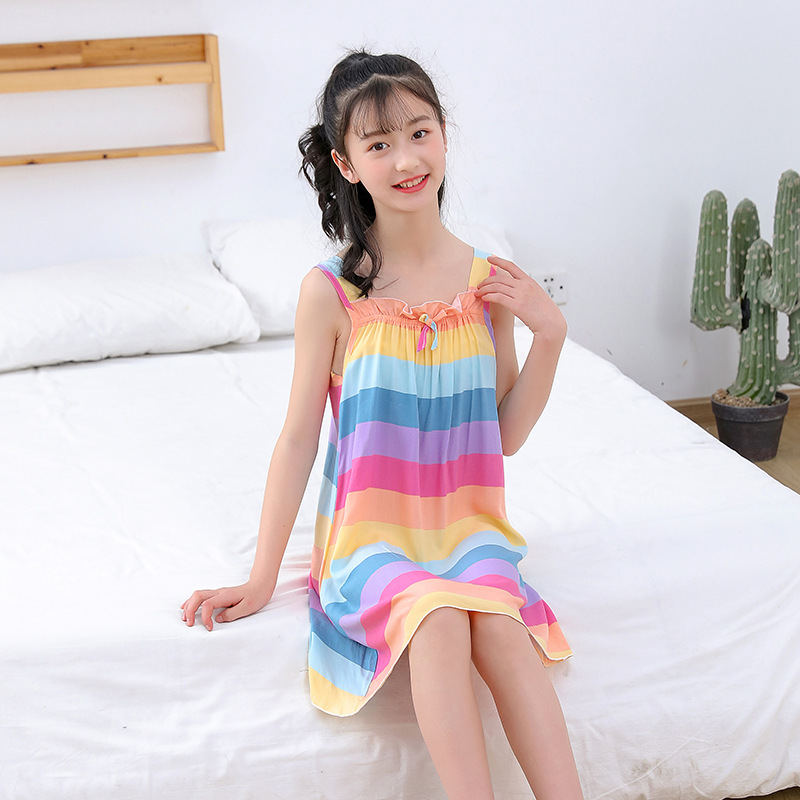 여름 얇은 소녀의 잠옷 면 실크 어린이 얼음 실크 슬링 파자마 소녀의 여름 공주 원피스 큰 어린이 홈 원피스스토어 가기