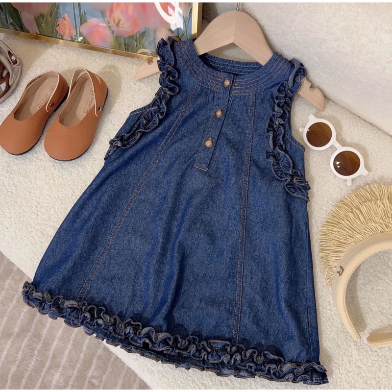 데님 조끼 소녀의 원피스 여름 서양 스타일 2023 새로운 도착 귀 가장자리 민소매 스커트 77279스토어 가기