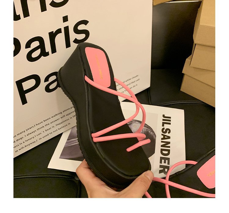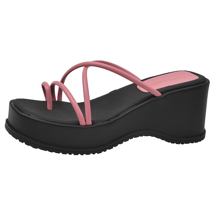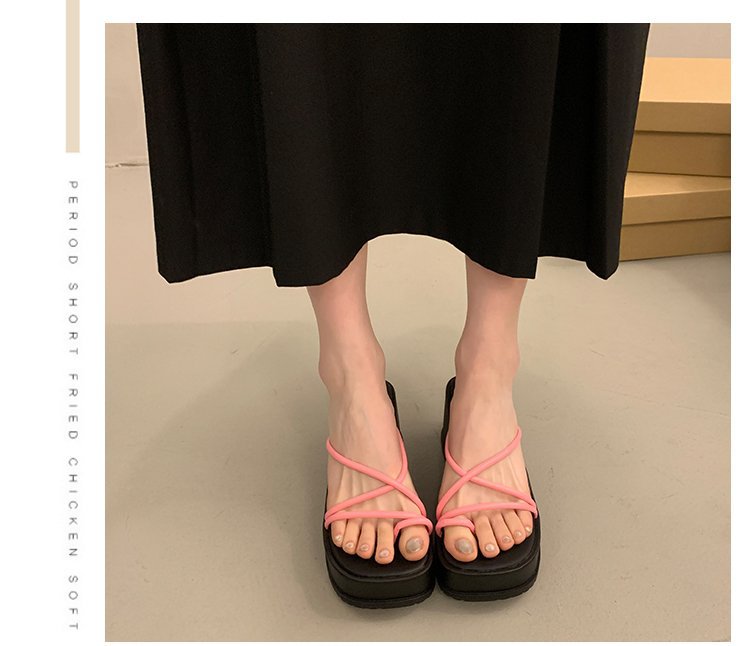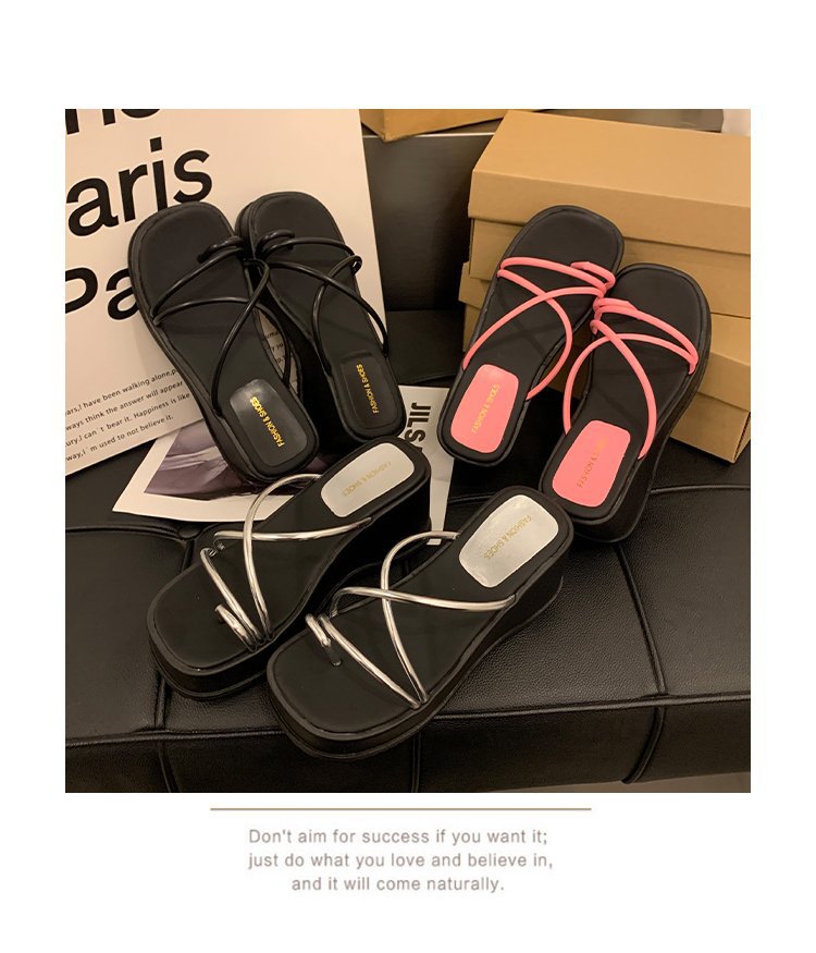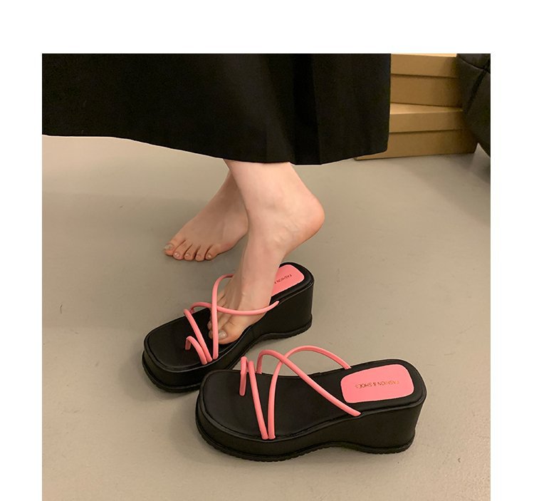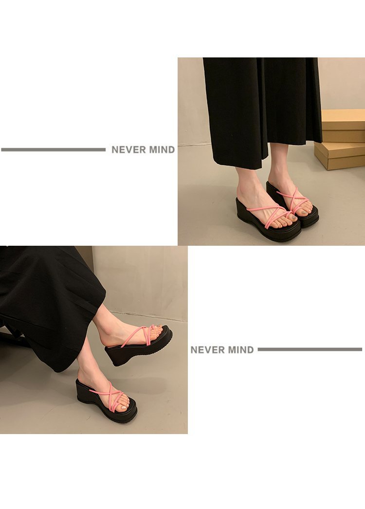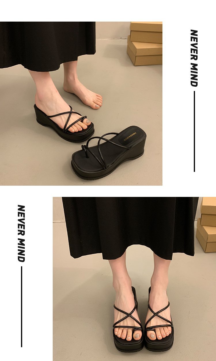 2024 년 여름 새로운 두꺼운 밑창 플립 플롭 여성용 겉옷 크로스 오픈 토 웨지 힐 작은 하이힐 도매