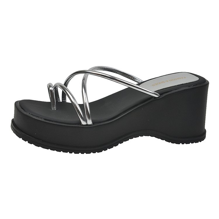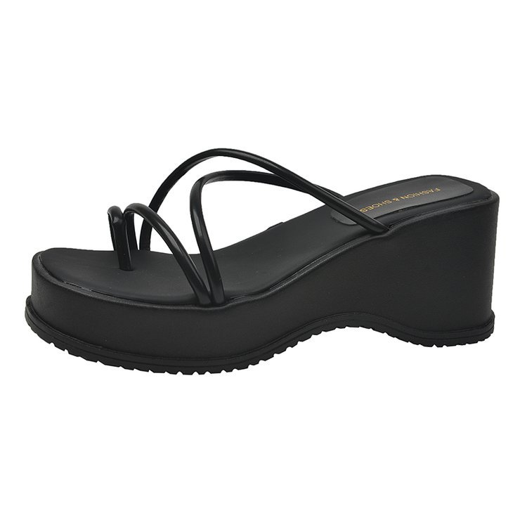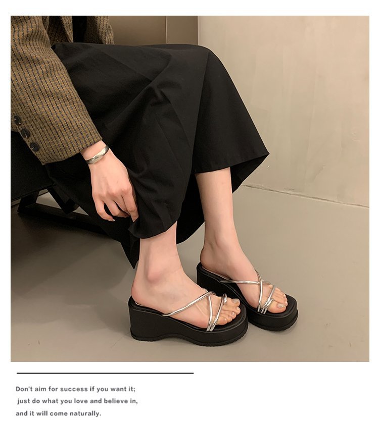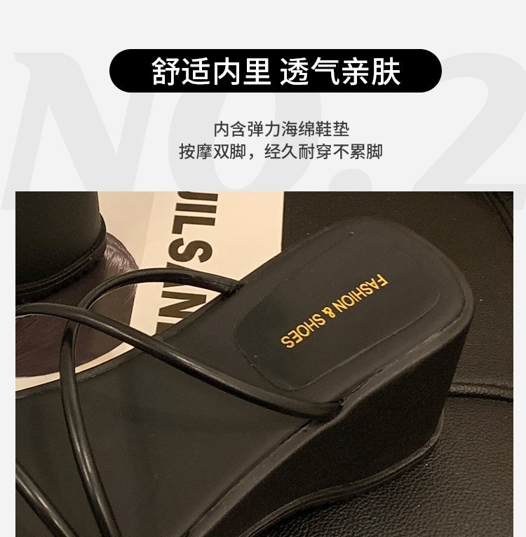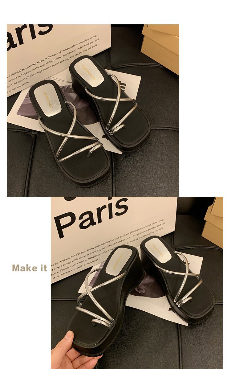 2024 년 여름 새로운 두꺼운 밑창 플립 플롭 여성용 겉옷 크로스 오픈 토 웨지 힐 작은 하이힐 도매스토어 가기