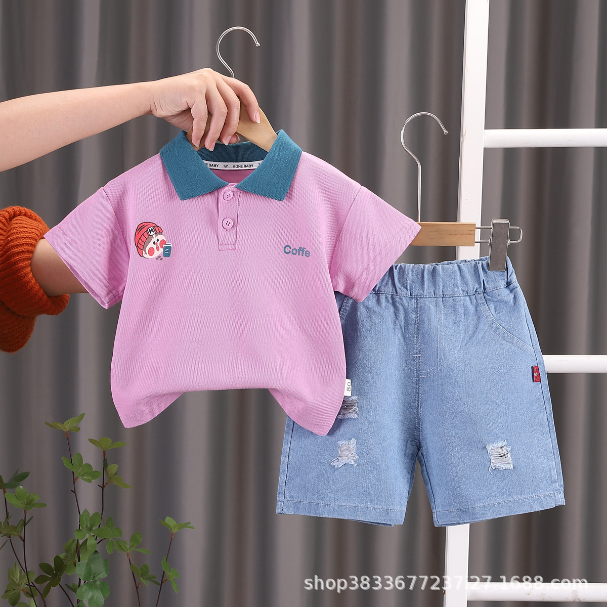 남자들의 여름 얇은 반팔 세트 어린이 신식 폴로 셔츠 어린이 캐주얼 투피스 여름 원피스스토어 가기