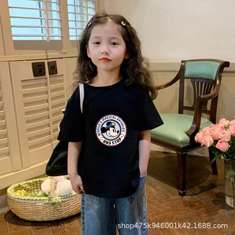 어린이 미키 만화 반팔 티셔츠 퓨어 코튼 여름 원피스 어린이 반소매 최고 소년 소녀 얇은 티셔츠 루즈스토어 가기