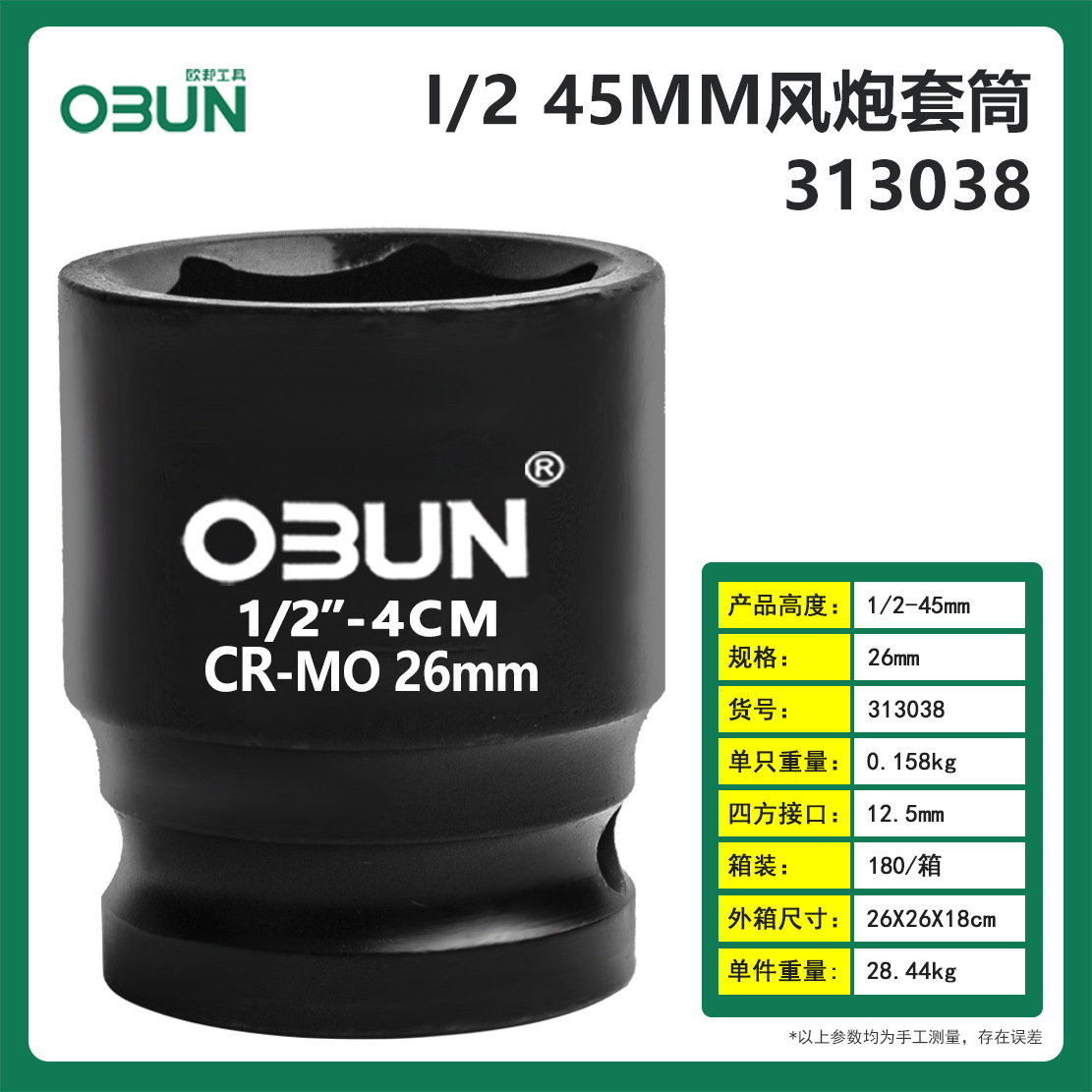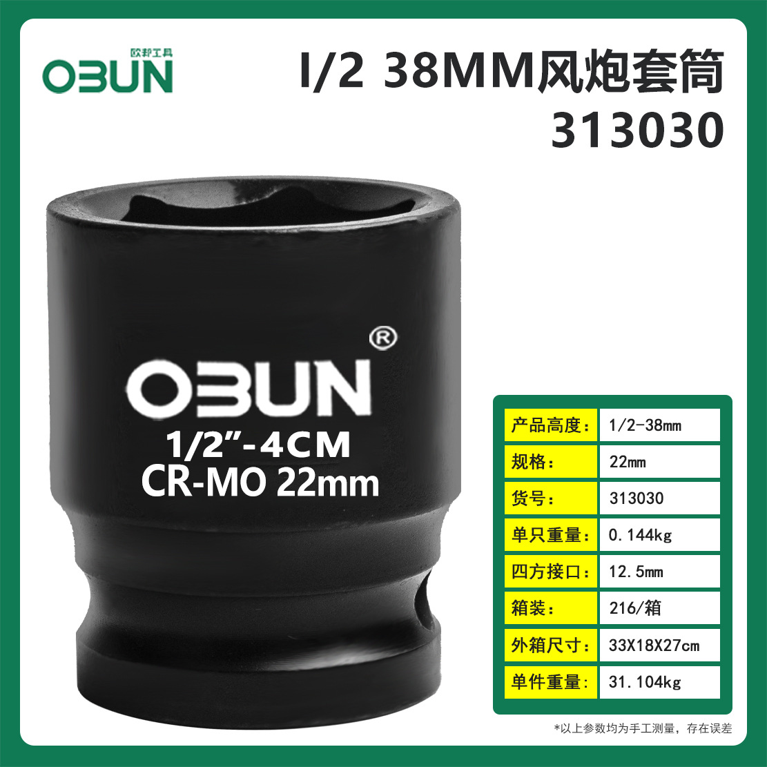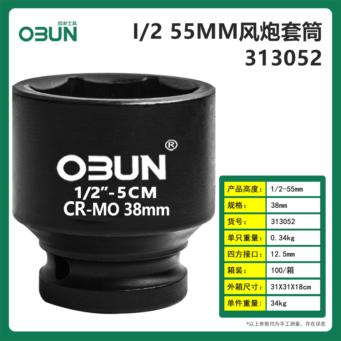 • 13mm(38 높이) 공기총 슬리브 헤드 1/2 인터페이스 12.5mm