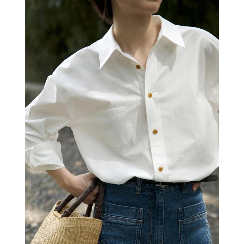 2024 년 봄 신톱 여자 프랑스 레트로 화이트 셔츠 루즈 올매치 하이 엔드 틈새 긴팔 셔츠