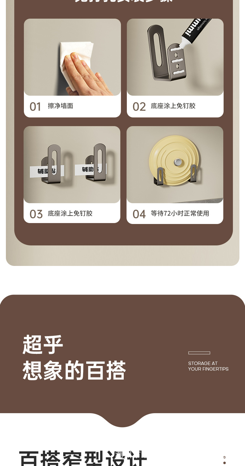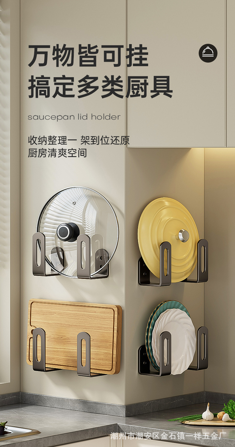 주방 냄비 뚜껑 랙 펀치없는 냄비 삽 랙 도마 도마 냄비 뚜껑 벽 교수형 주방 벽 보관 랙스토어 가기