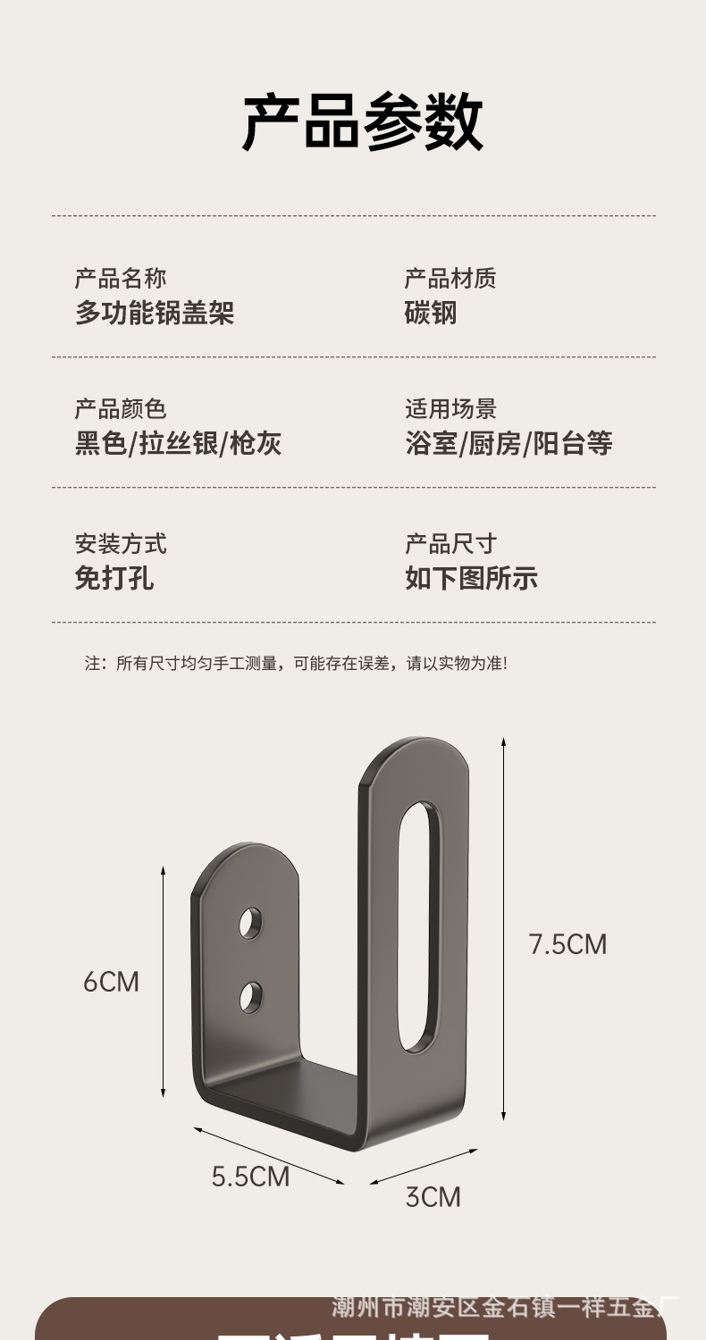 주방 냄비 뚜껑 랙 펀치없는 냄비 삽 랙 도마 도마 냄비 뚜껑 벽 교수형 주방 벽 보관 랙
