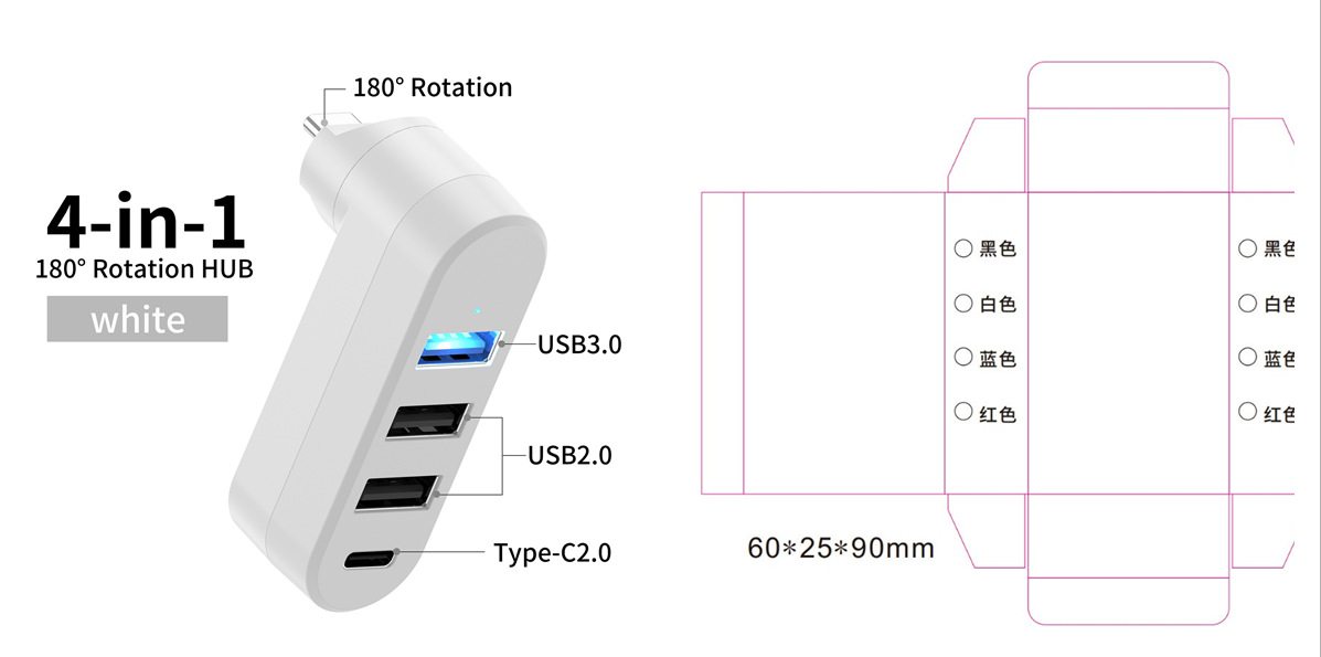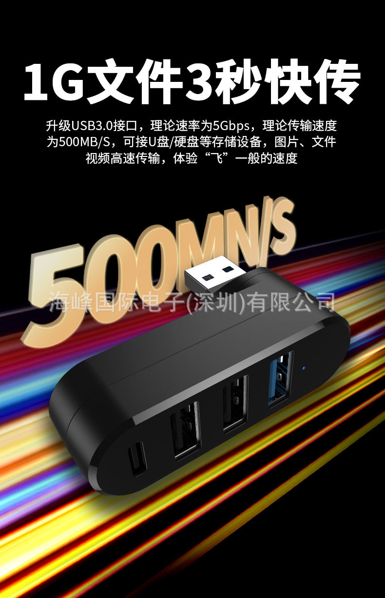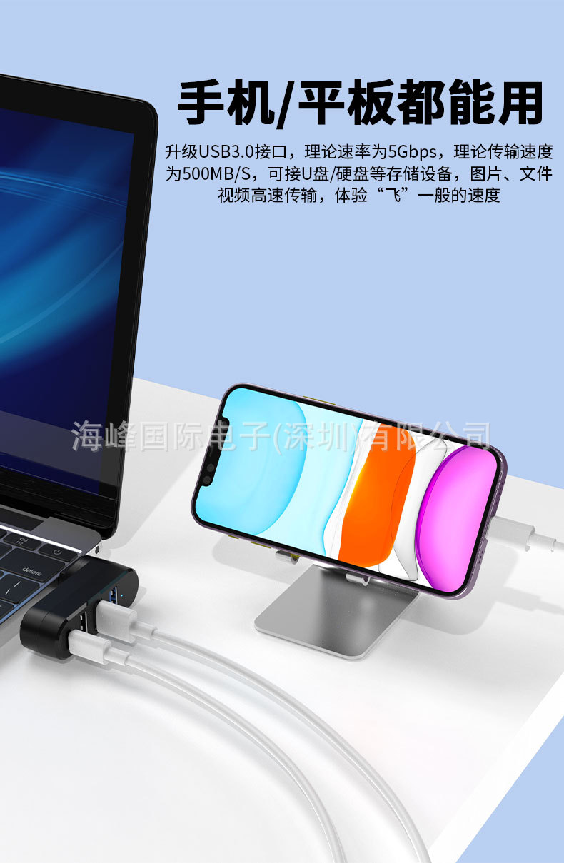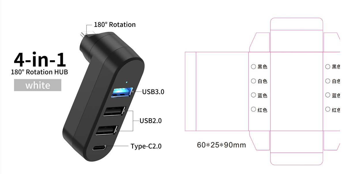 USB rotating HUB, suitable for notebook expansion, light and convenient, super compatible, high speed transmission.