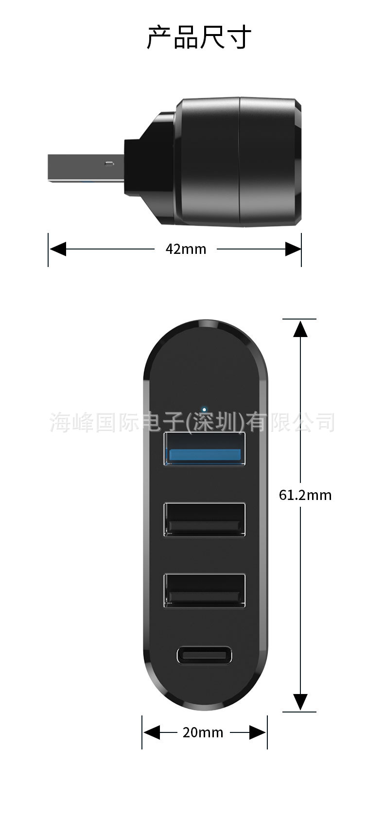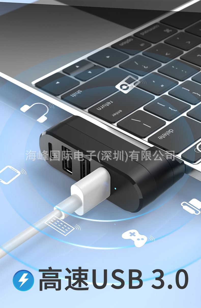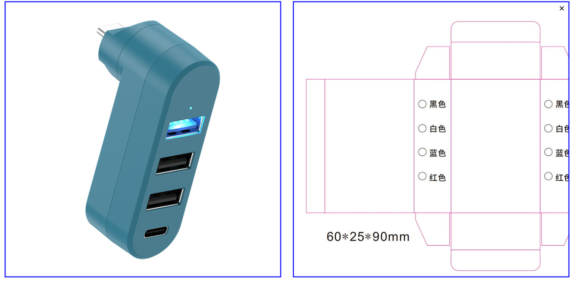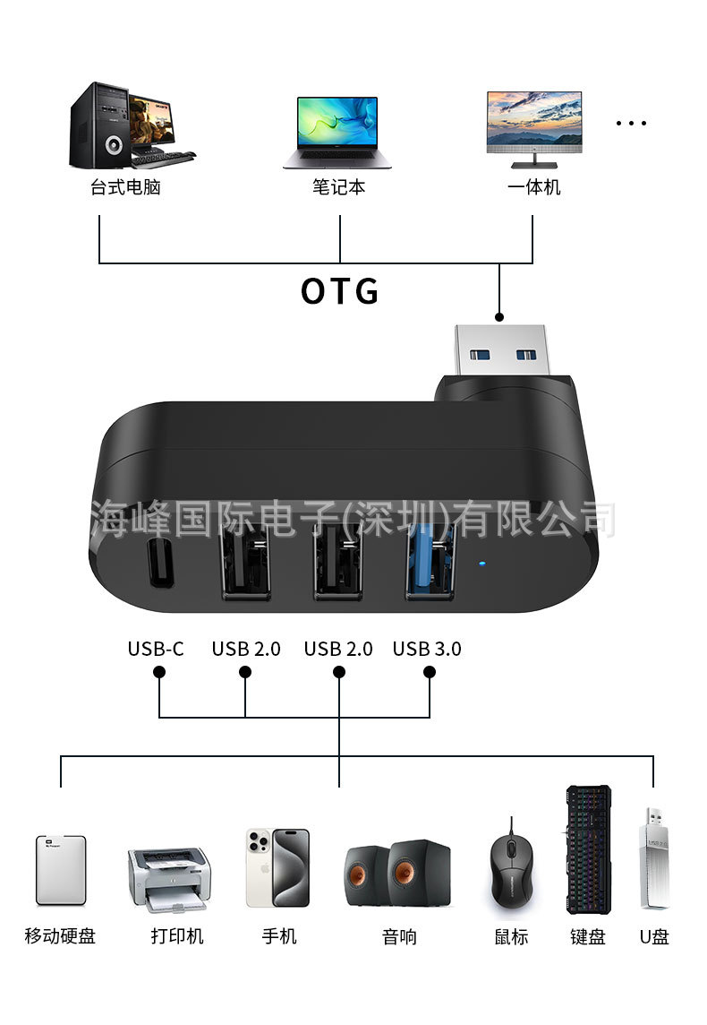 USB rotating HUB, suitable for notebook expansion, light and convenient, super compatible, high speed transmission.