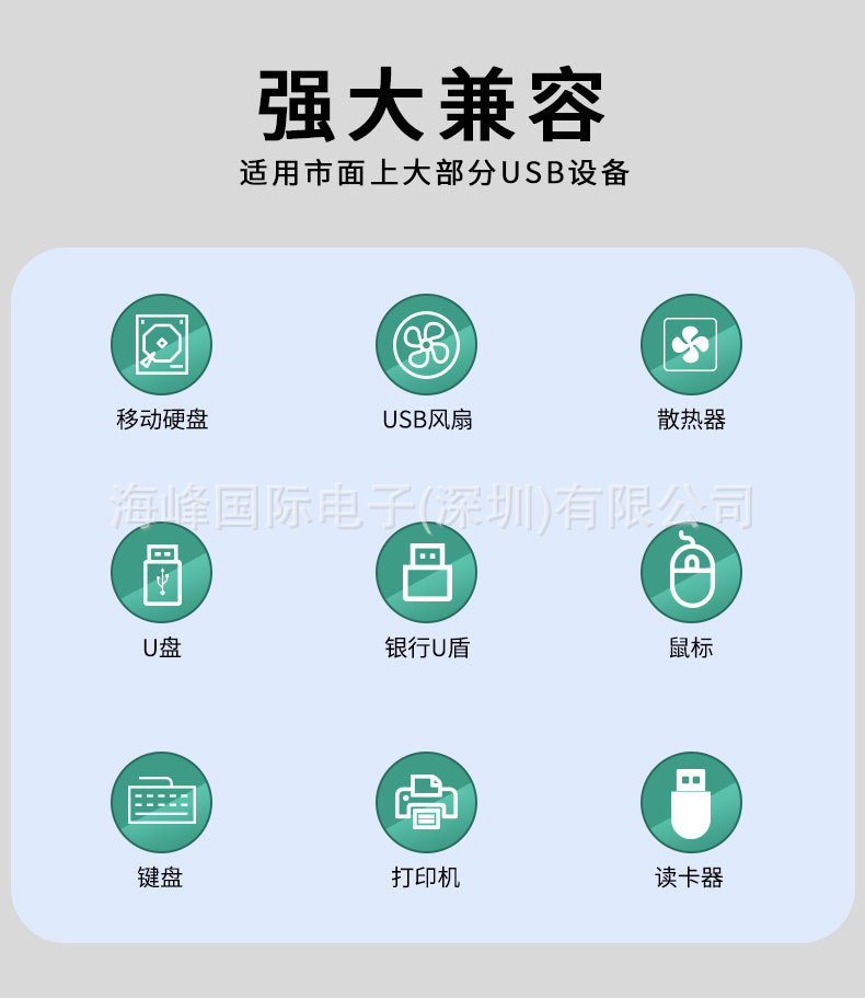 Suitable for smartphones , number keyboard, hard duisk , card reader , USB mini fan , USB cooler , keyboard , mouse, printer and other computer equipment.