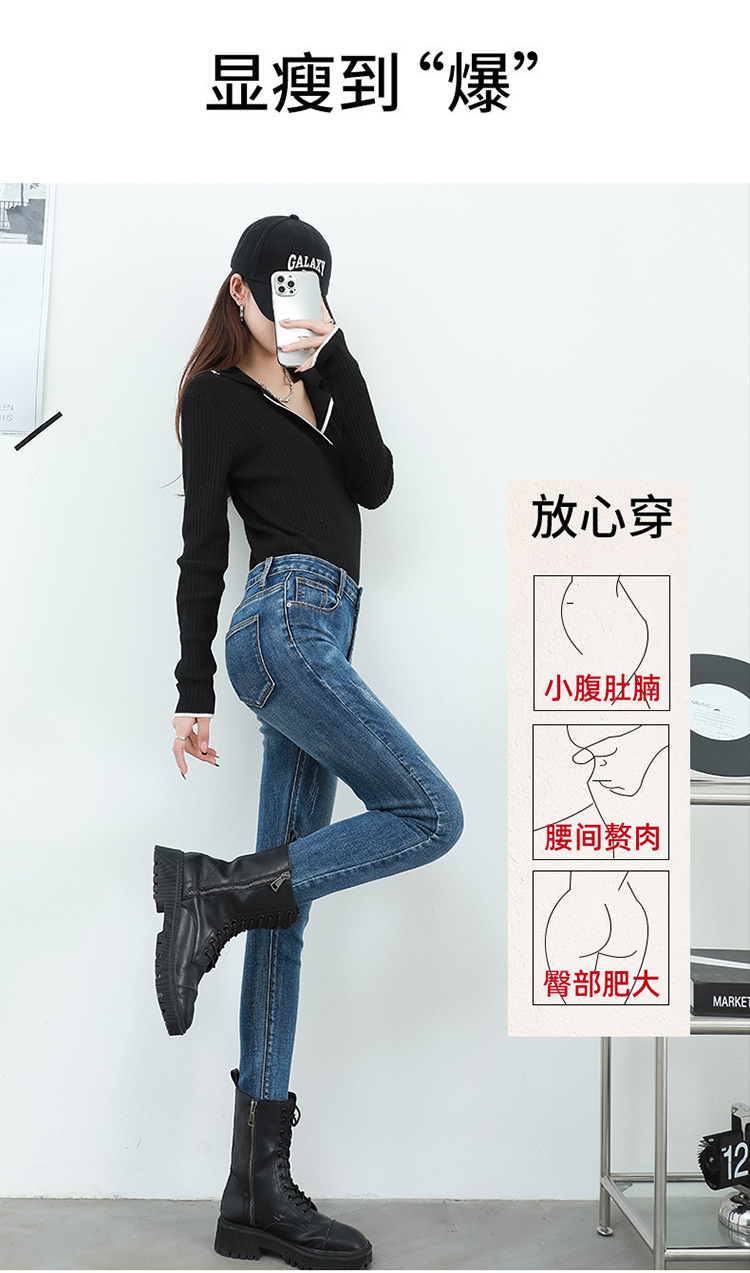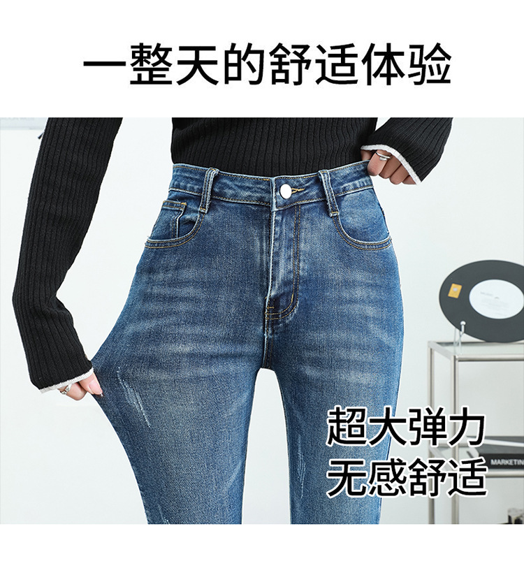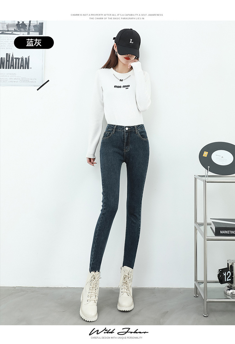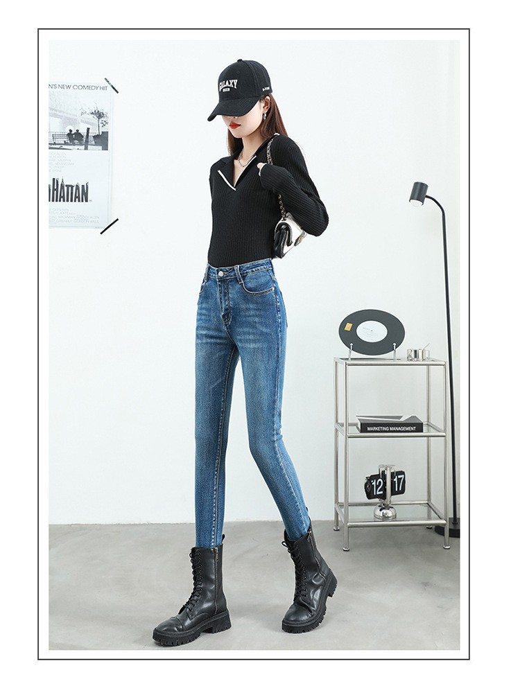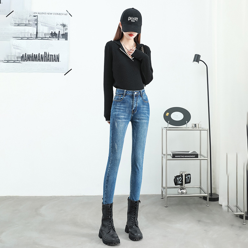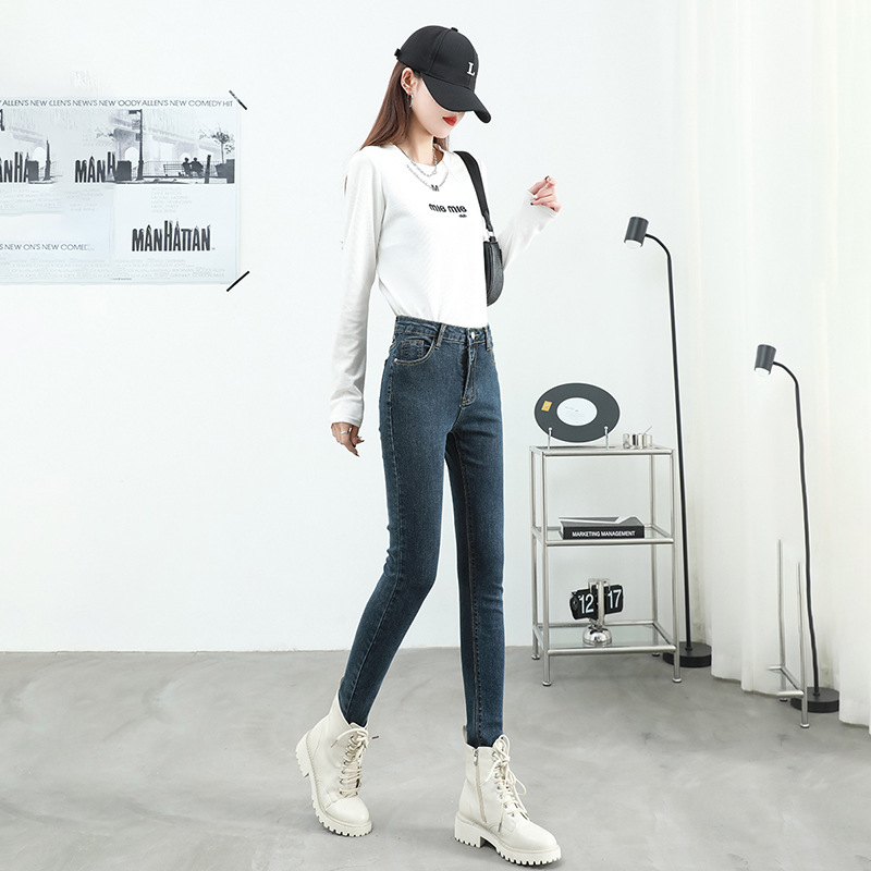 봄과 여름 2024 새로운 배 모양의 그림 복고풍 얇은 단단한 세척 한국식 다리 얇은 스트레치 청바지스토어 가기