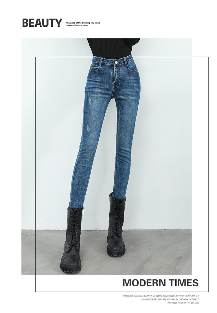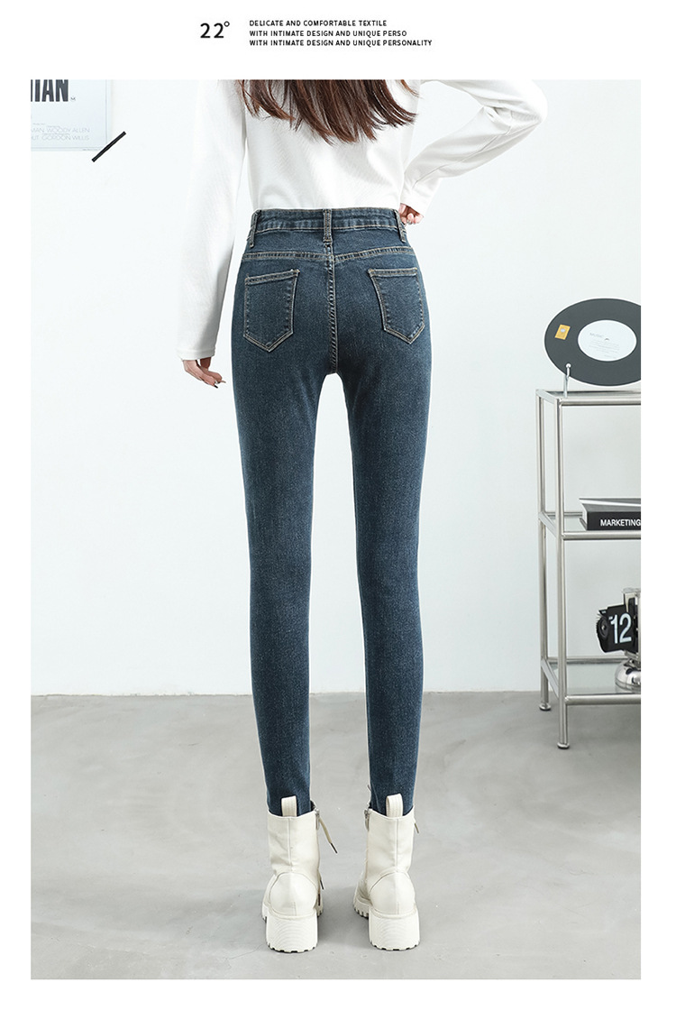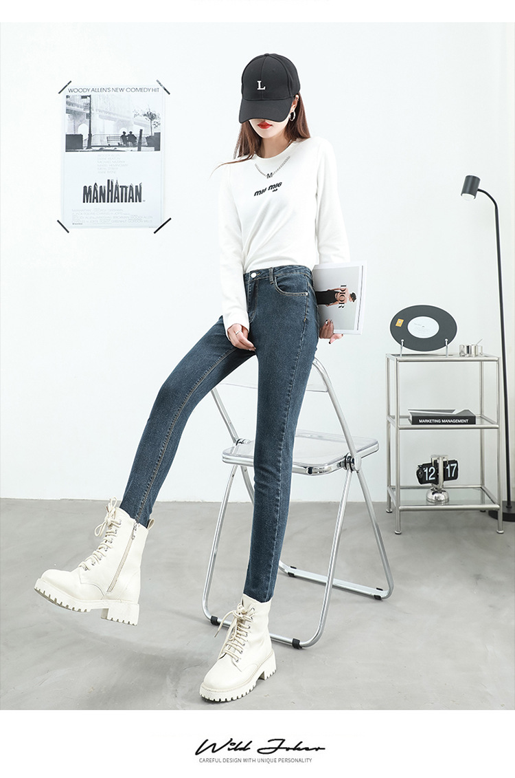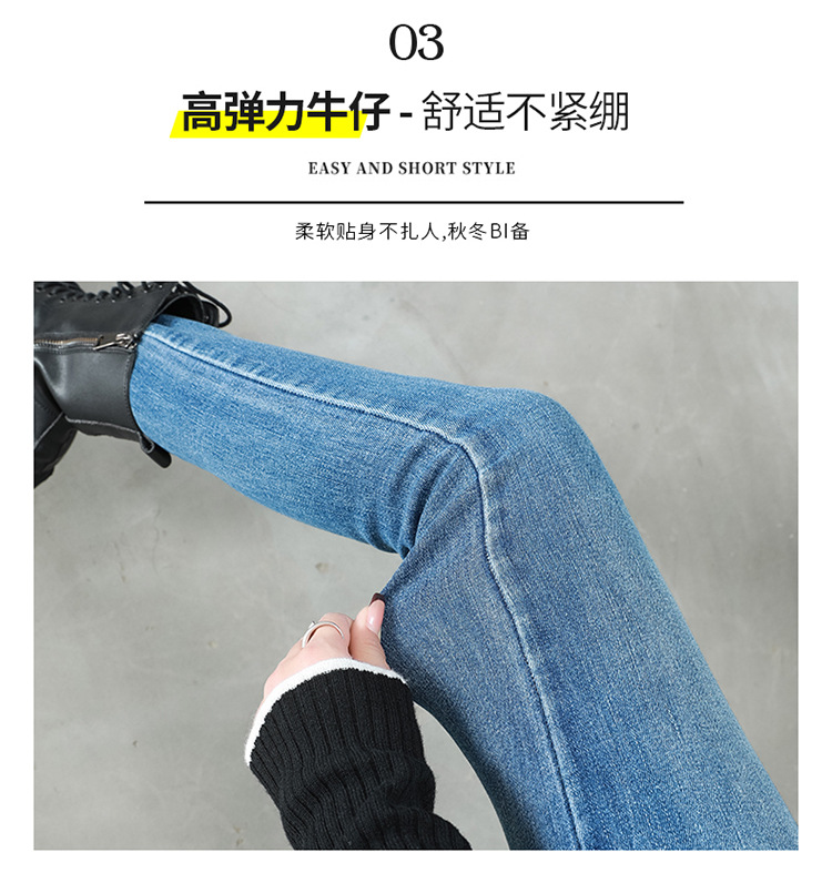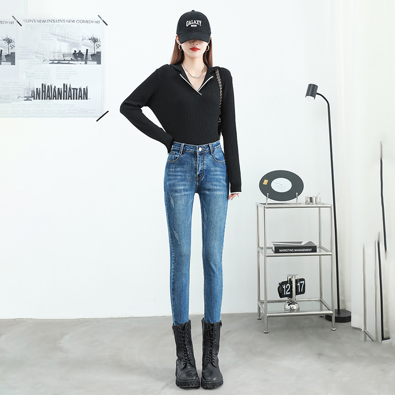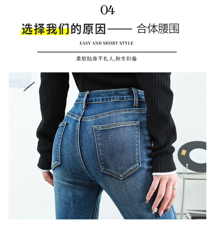 봄과 여름 2024 새로운 배 모양의 그림 복고풍 얇은 단단한 세척 한국식 다리 얇은 스트레치 청바지스토어 가기