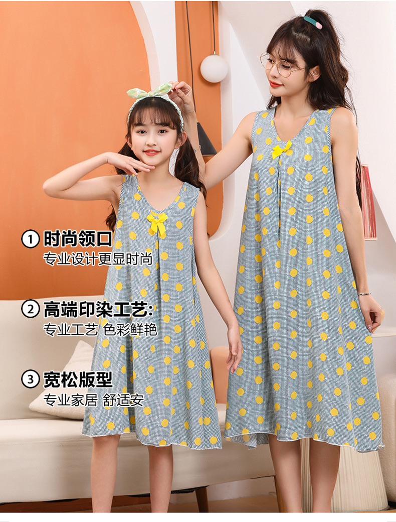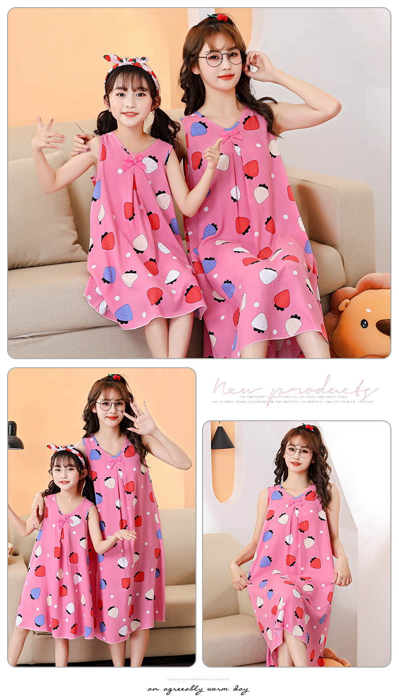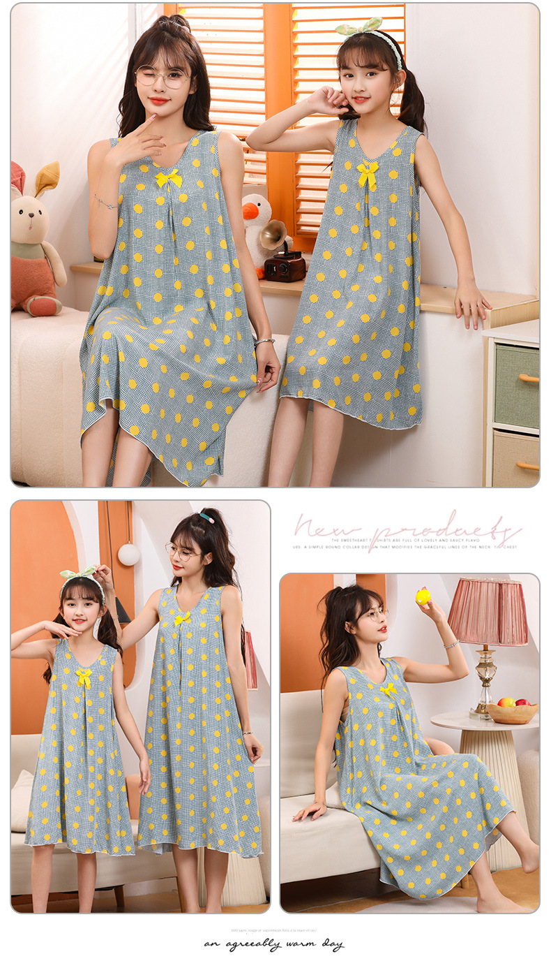 여름 어린이 스커트 코튼 실크 소녀 엄마 부모-자식 스커트 어머니-딸 의류 2025 새로운 여자 홈 잠옷 도매