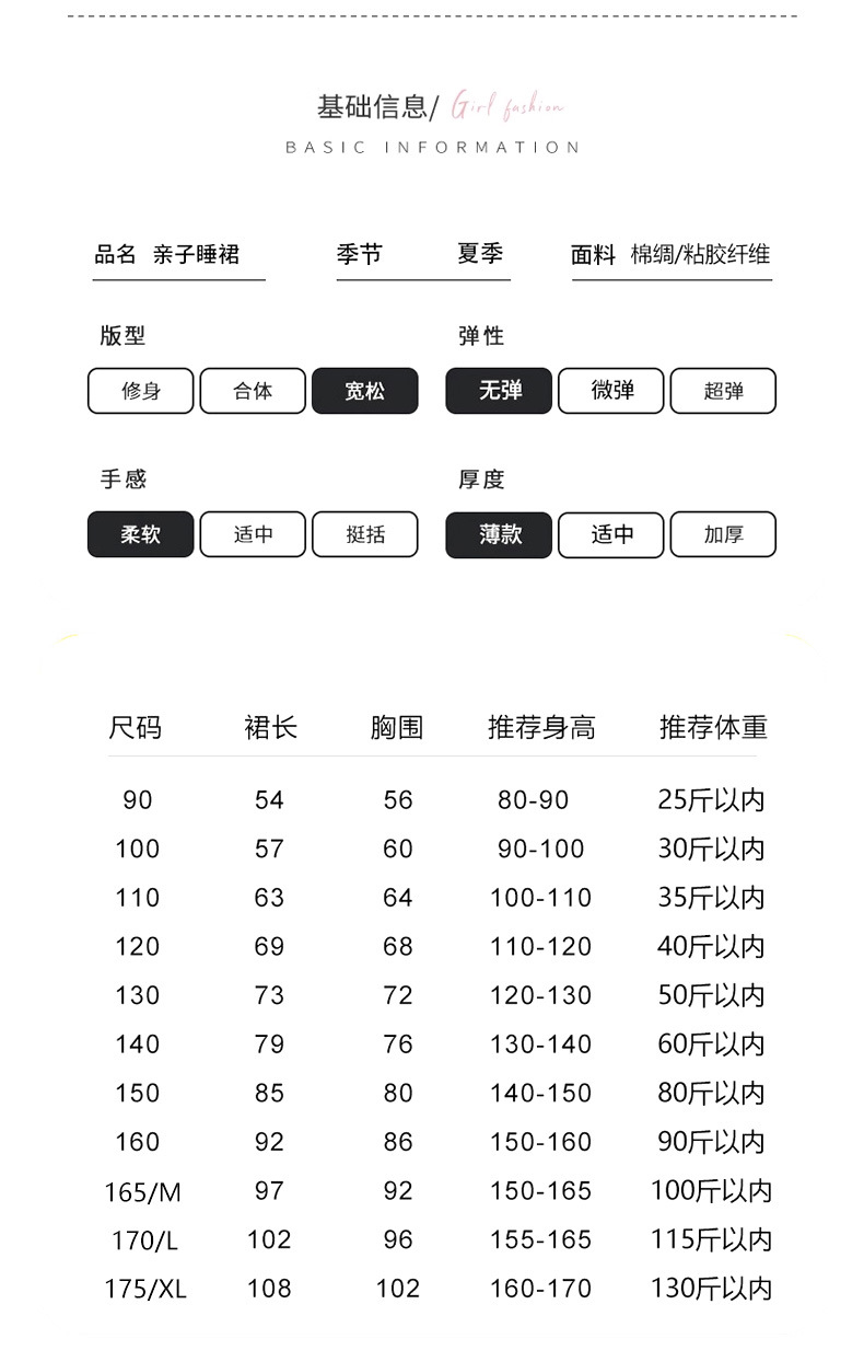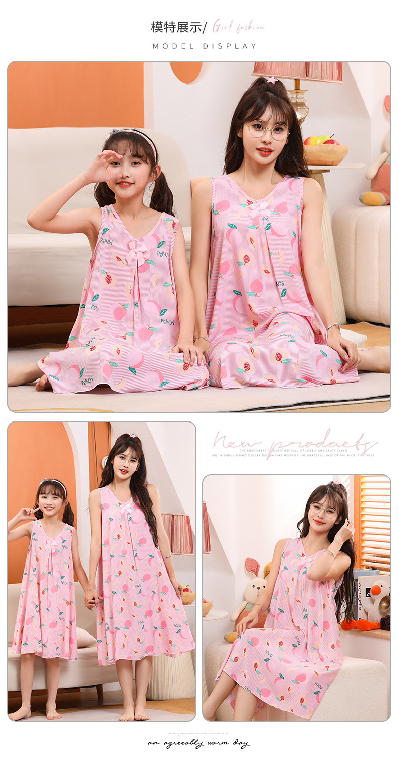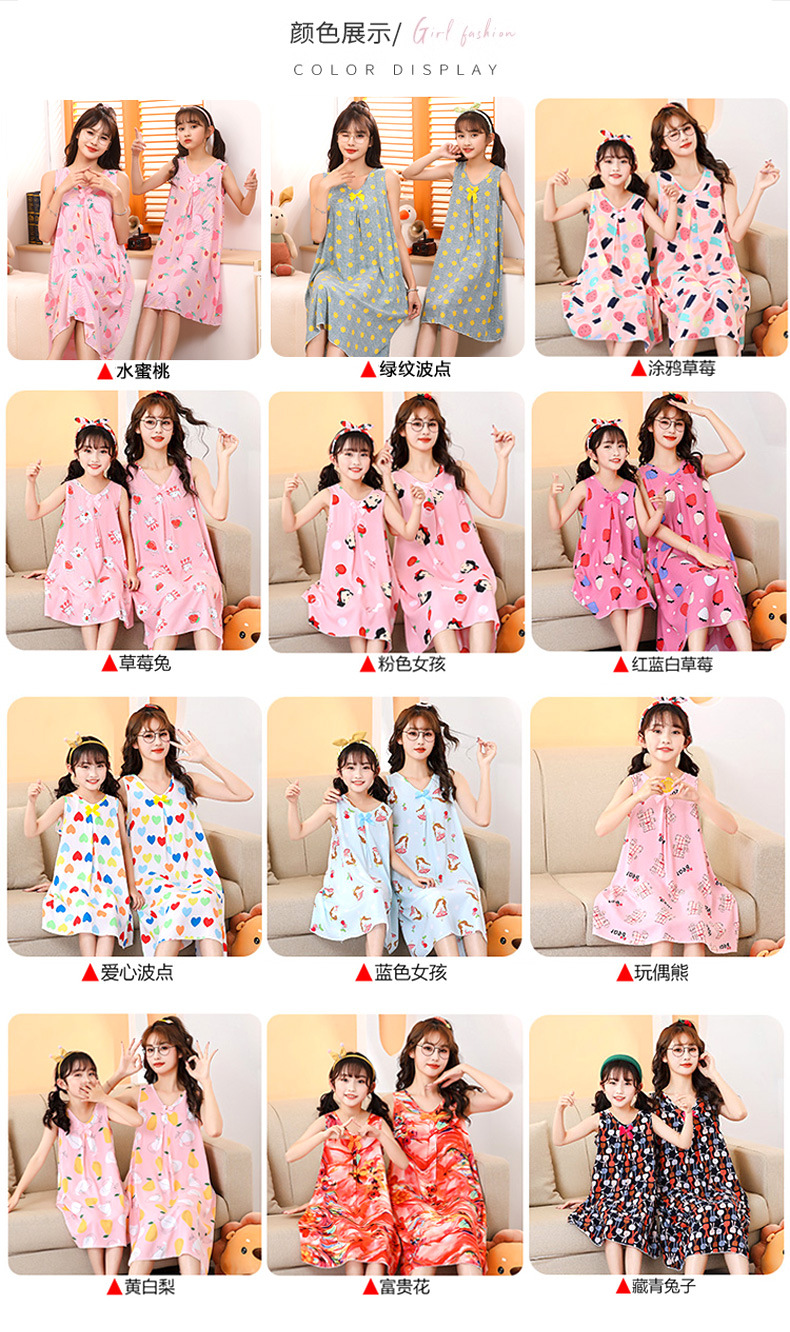 여름 어린이 스커트 코튼 실크 소녀 엄마 부모-자식 스커트 어머니-딸 의류 2025 새로운 여자 홈 잠옷 도매
