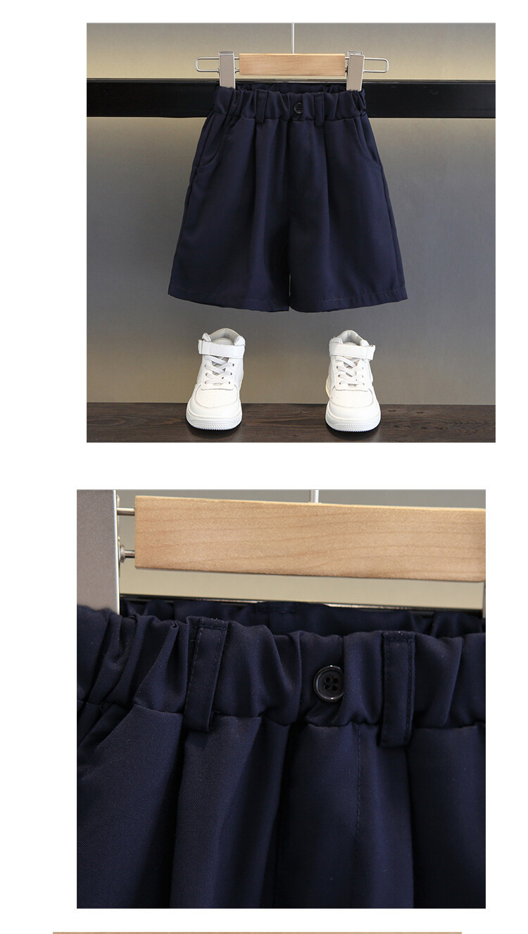 소년 소녀 투피스 여름 세트 영국 스타일 어린이 가짜 투피스 얇은 반팔 반바지 대학 세트