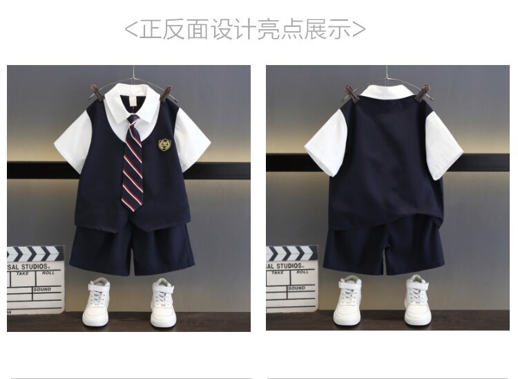 소년 소녀 투피스 여름 세트 영국 스타일 어린이 가짜 투피스 얇은 반팔 반바지 대학 세트스토어 가기