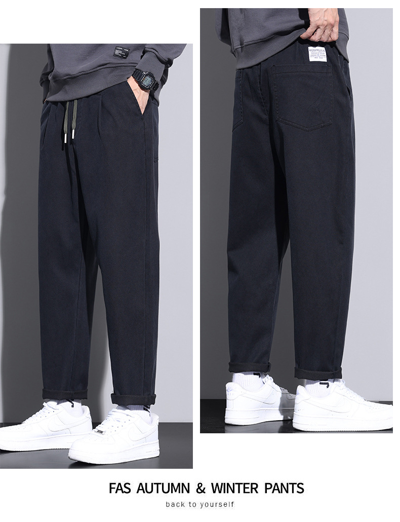맞춤형 남성 청바지 느슨한 곧은 가을 2023 새로운 유행 가을 겨울 올 매치 스트레치 바지 캐주얼 남성스토어 가기