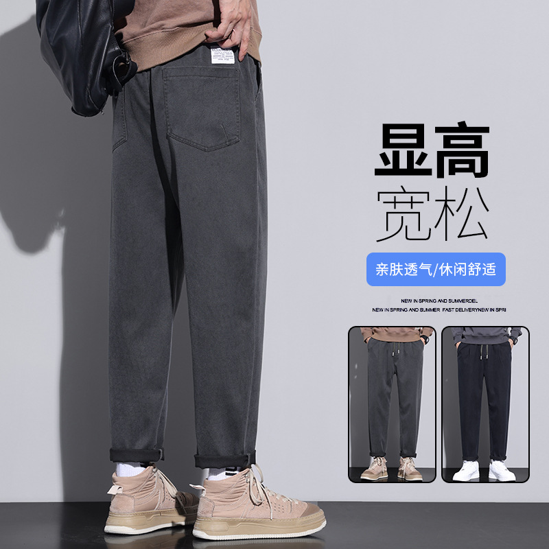 맞춤형 남성 청바지 느슨한 곧은 가을 2023 새로운 유행 가을 겨울 올 매치 스트레치 바지 캐주얼 남성