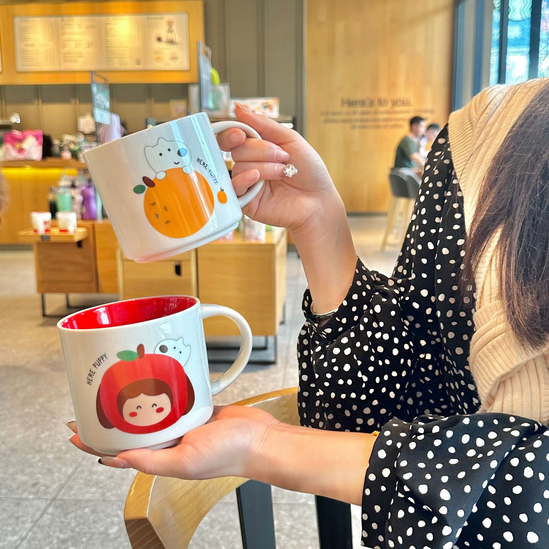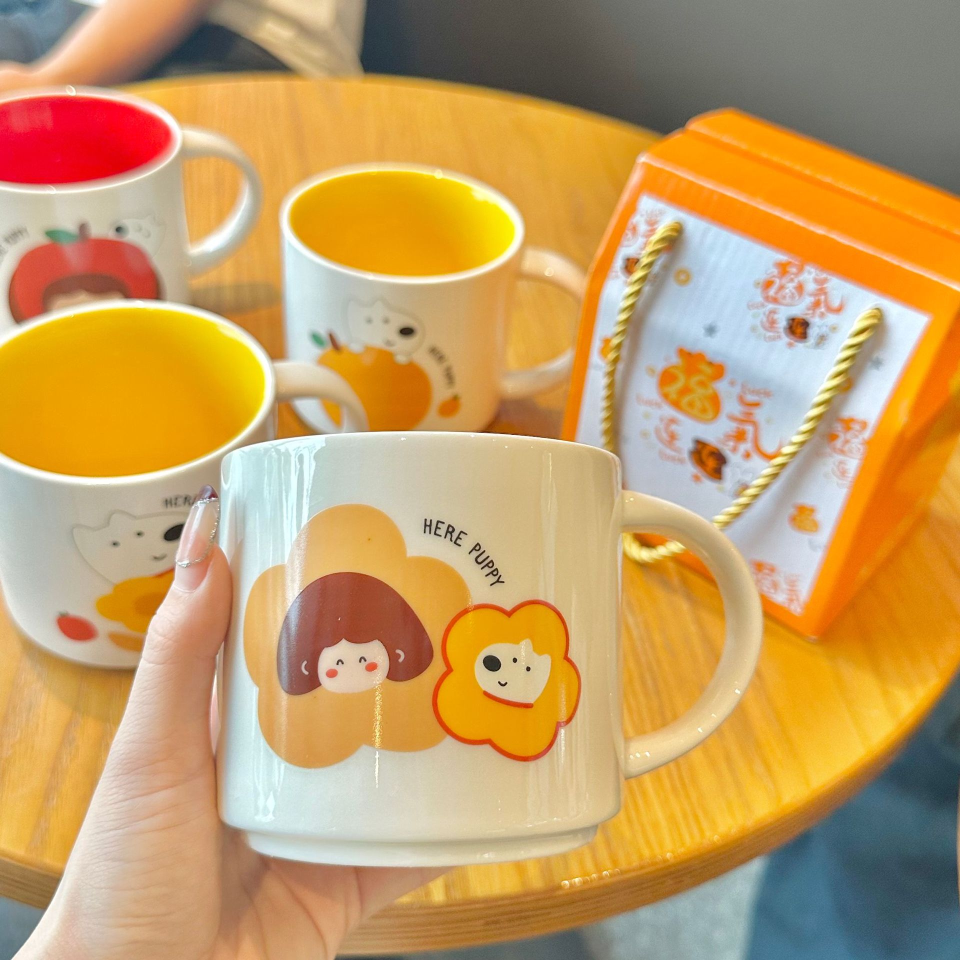 세라믹 컵 만화 창조적 인 활동 선물 컵 대용량 컬러 유약 머그잔 Xi 가게 보석 동반 선물 컵 도매스토어 가기