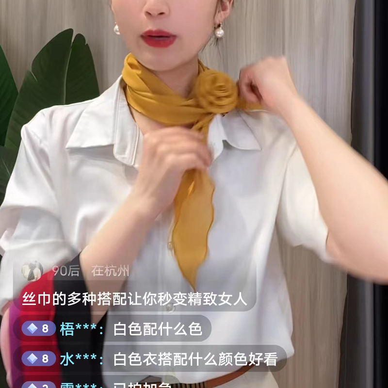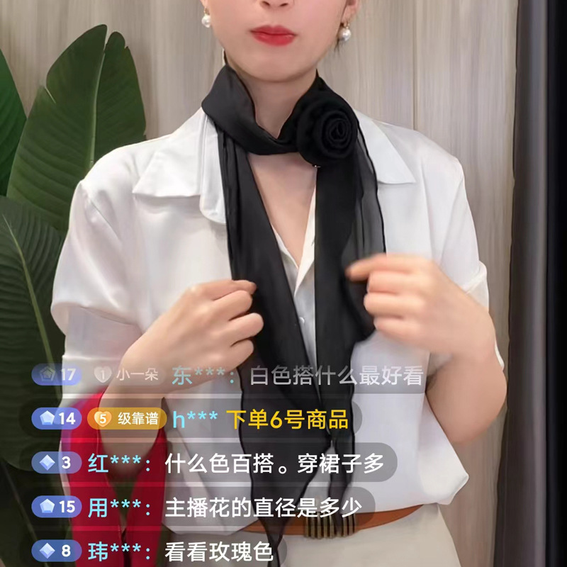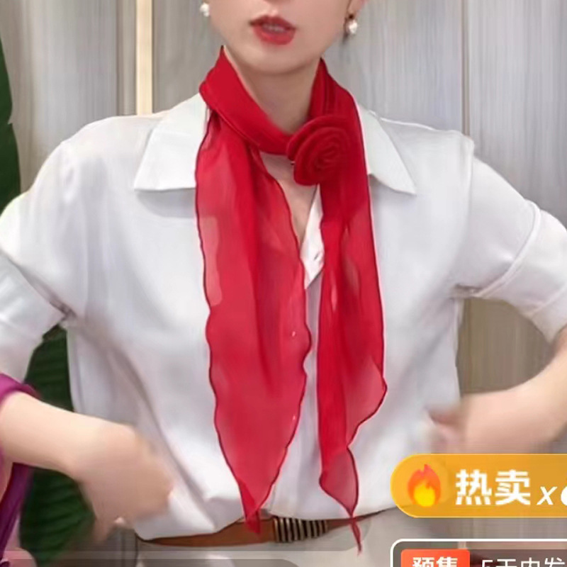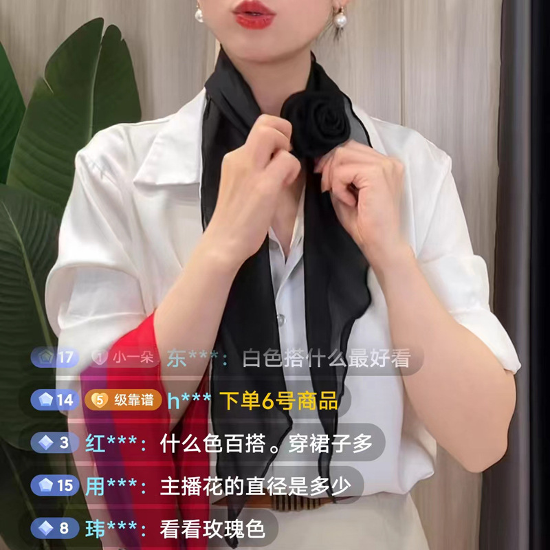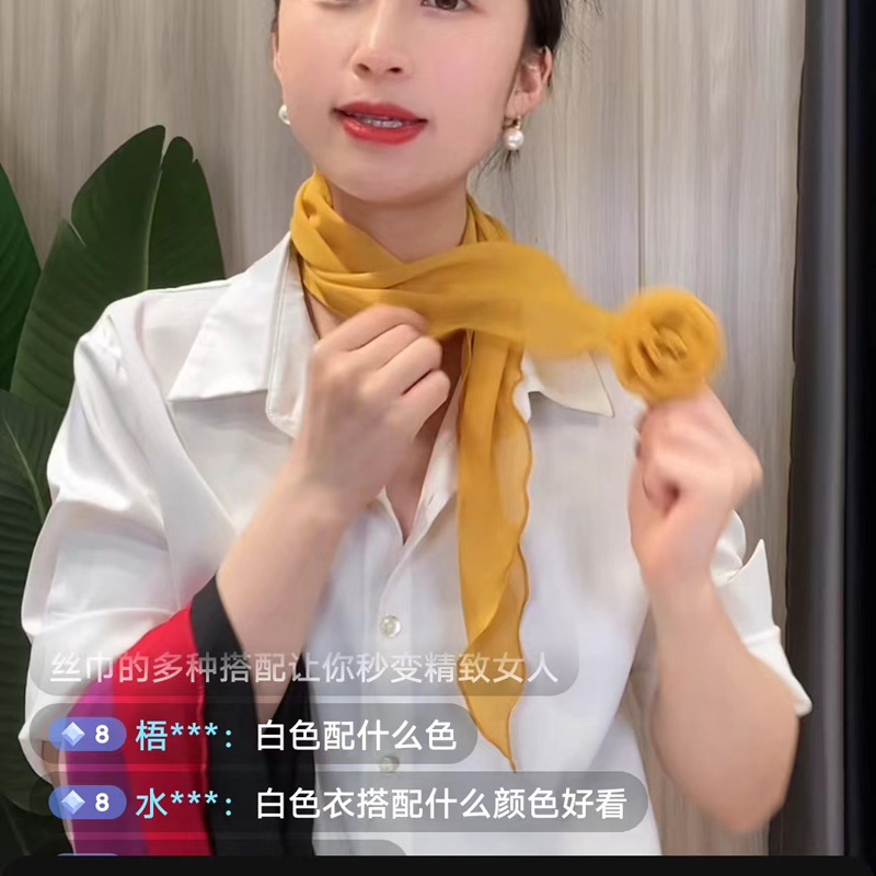 品名:玫瑰花扣纯色丝巾