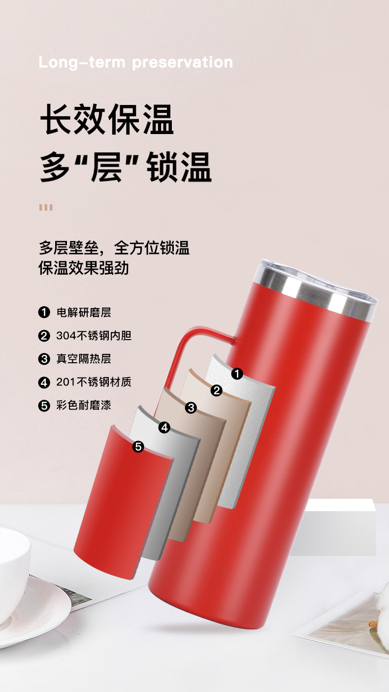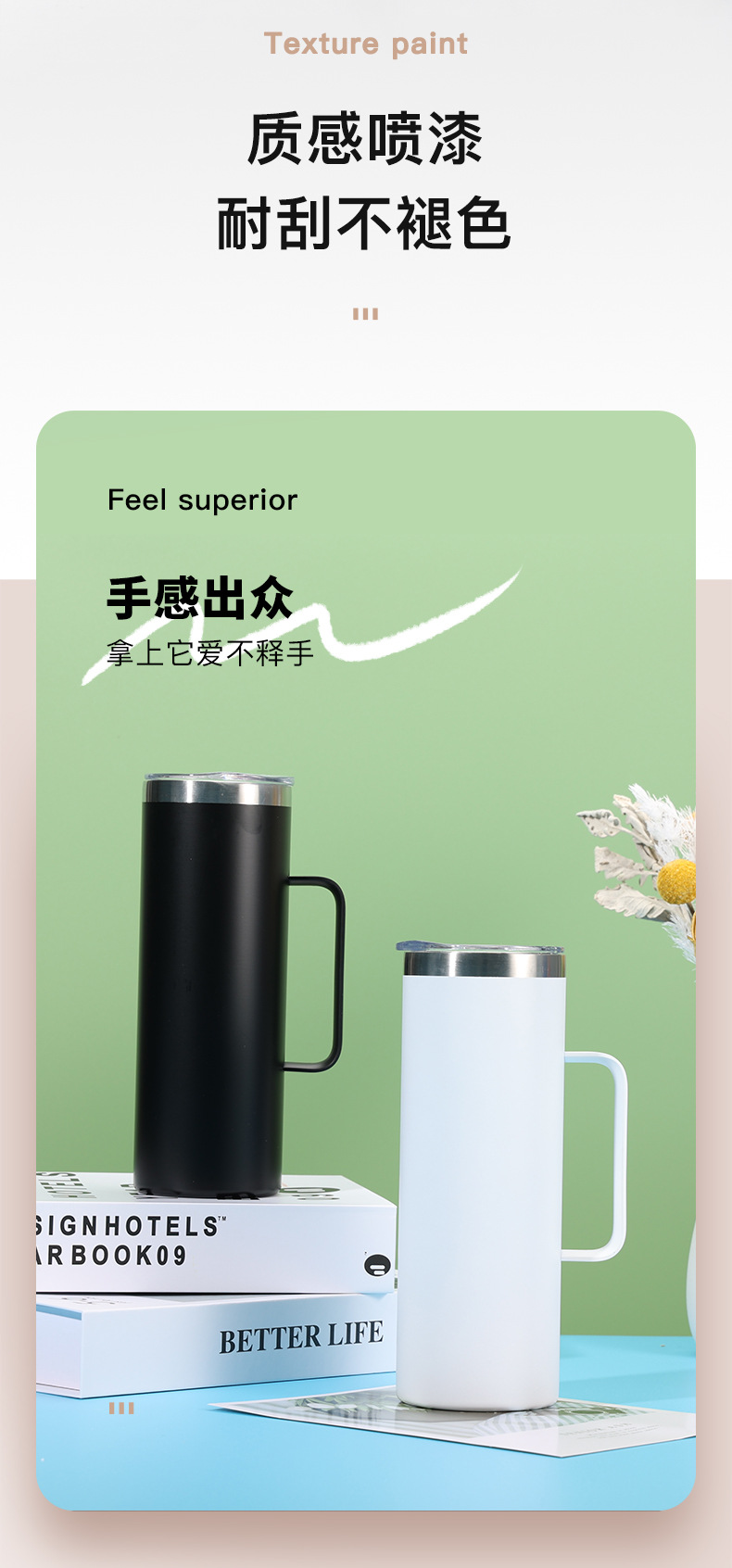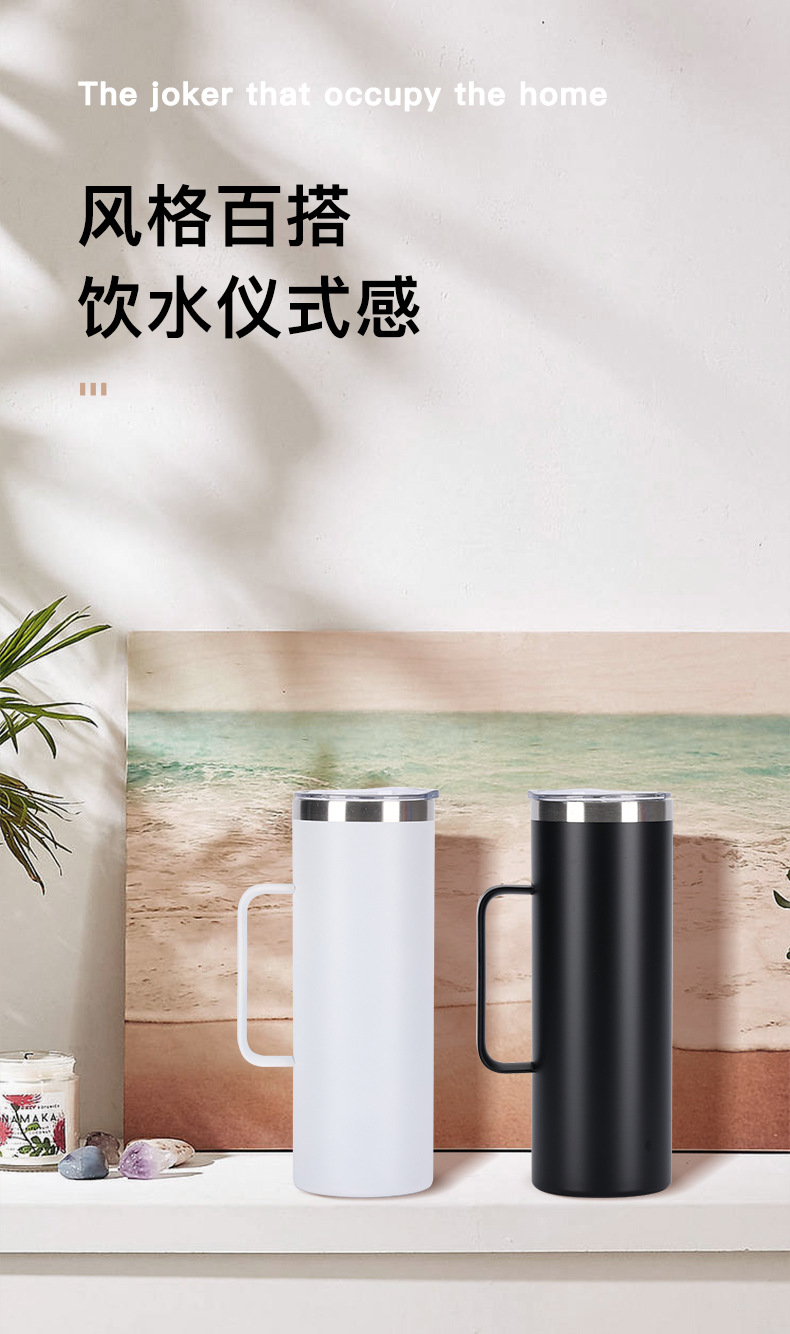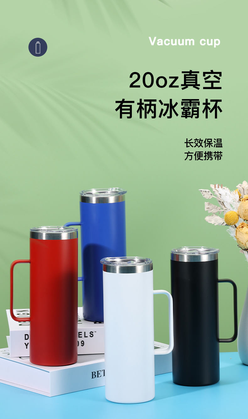 20온스 손잡이 달린 자동차 컵 이중 진공 304 직선형 물컵 로고 맞춤 가능 3D5D 인쇄 이중 단열