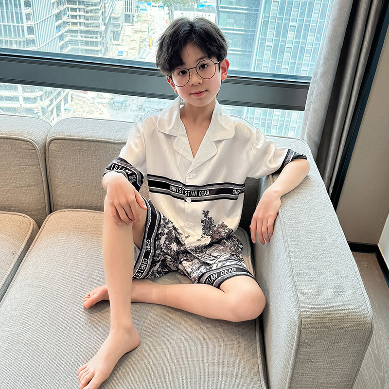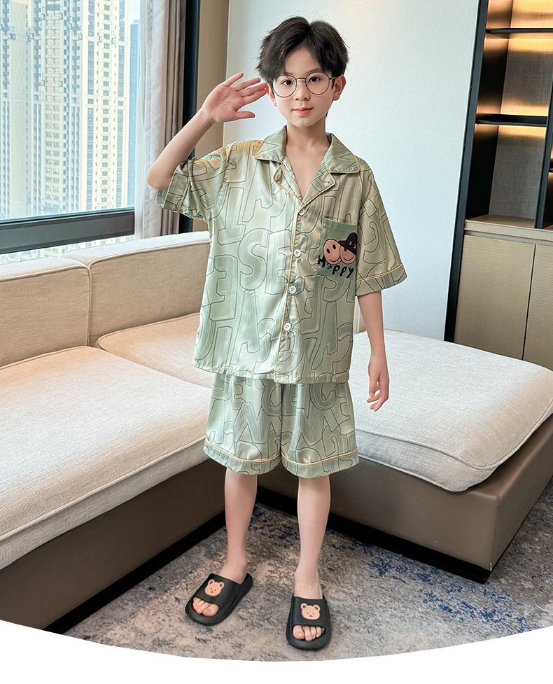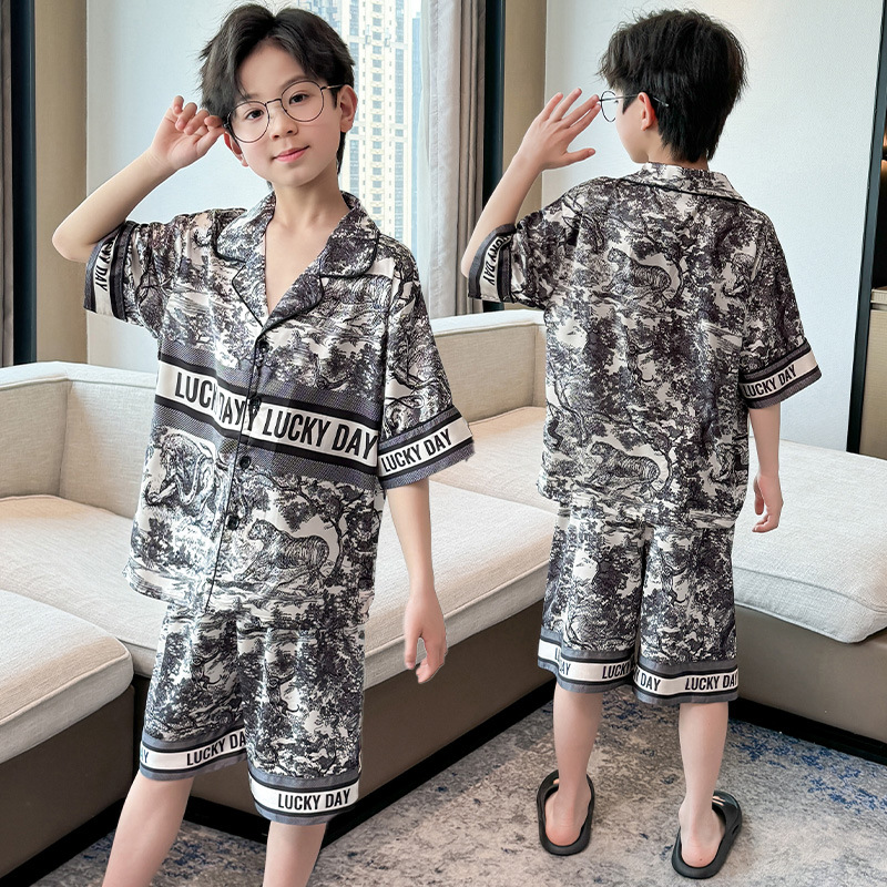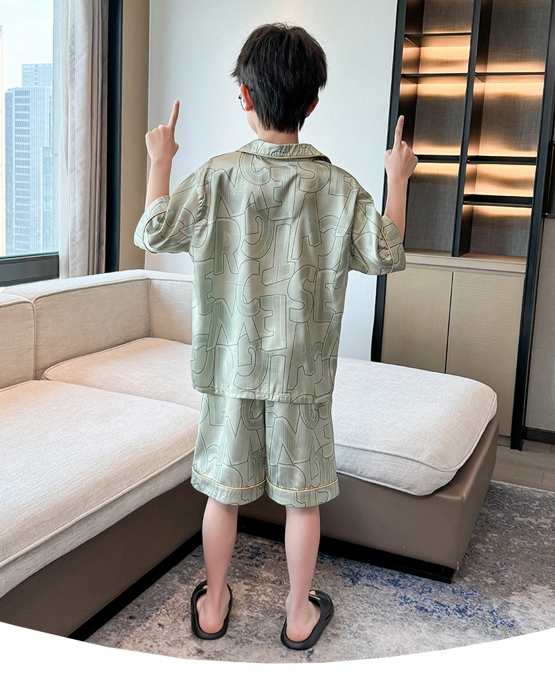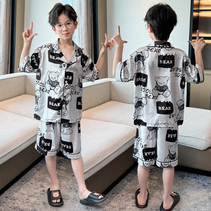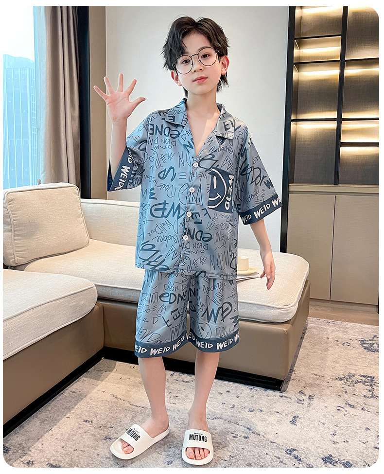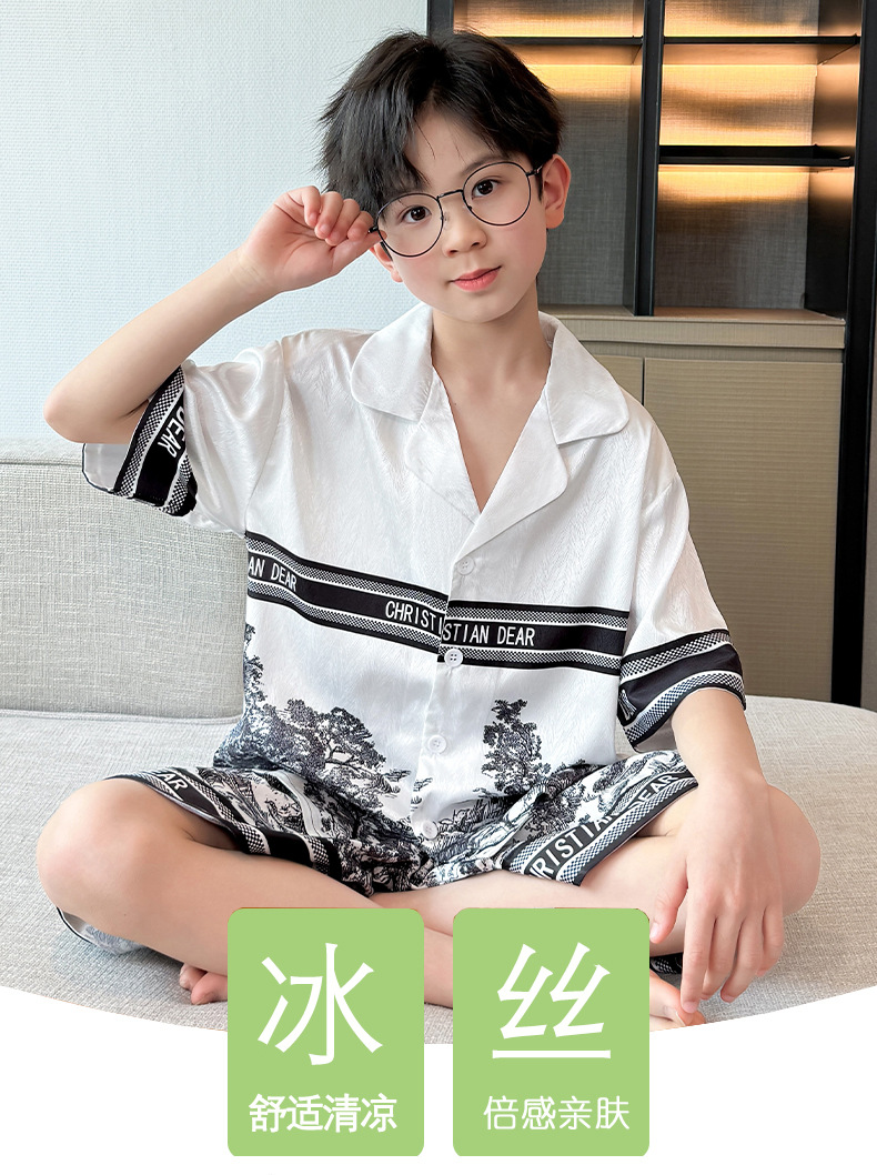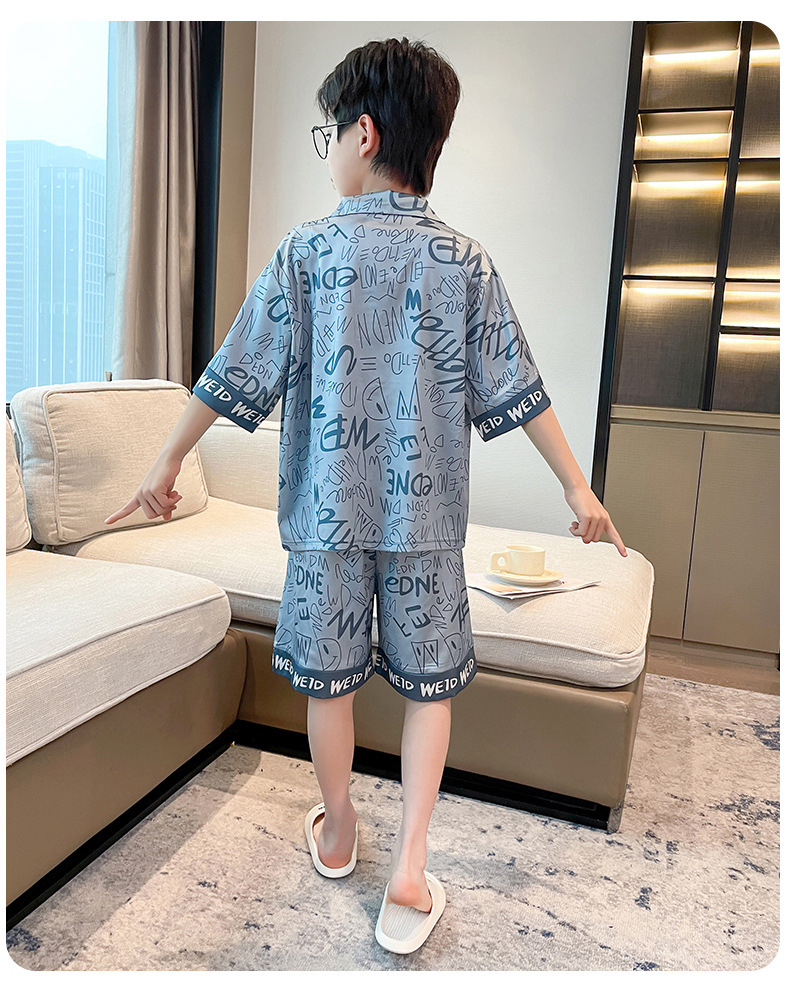 어린이 의류 소년 여름 잠옷 아이스 실크 반팔 홈 의류 세트 얇은 소년의 여름 에어컨 세트스토어 가기