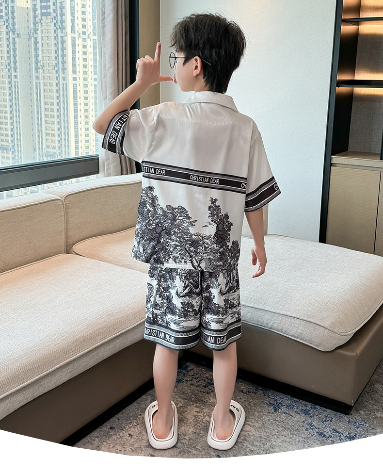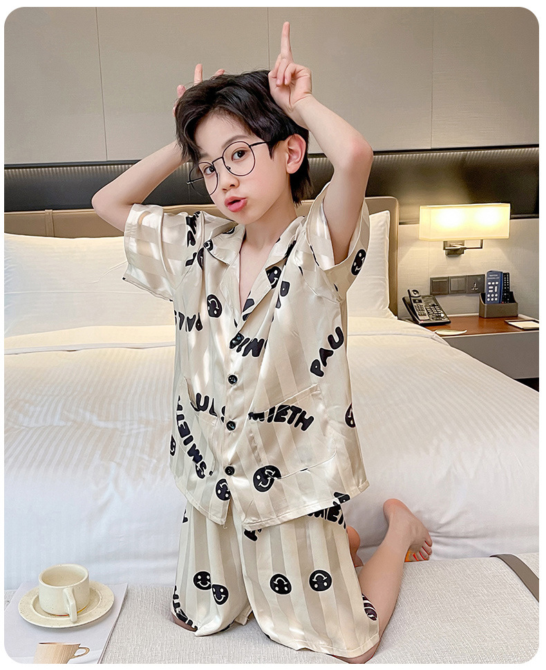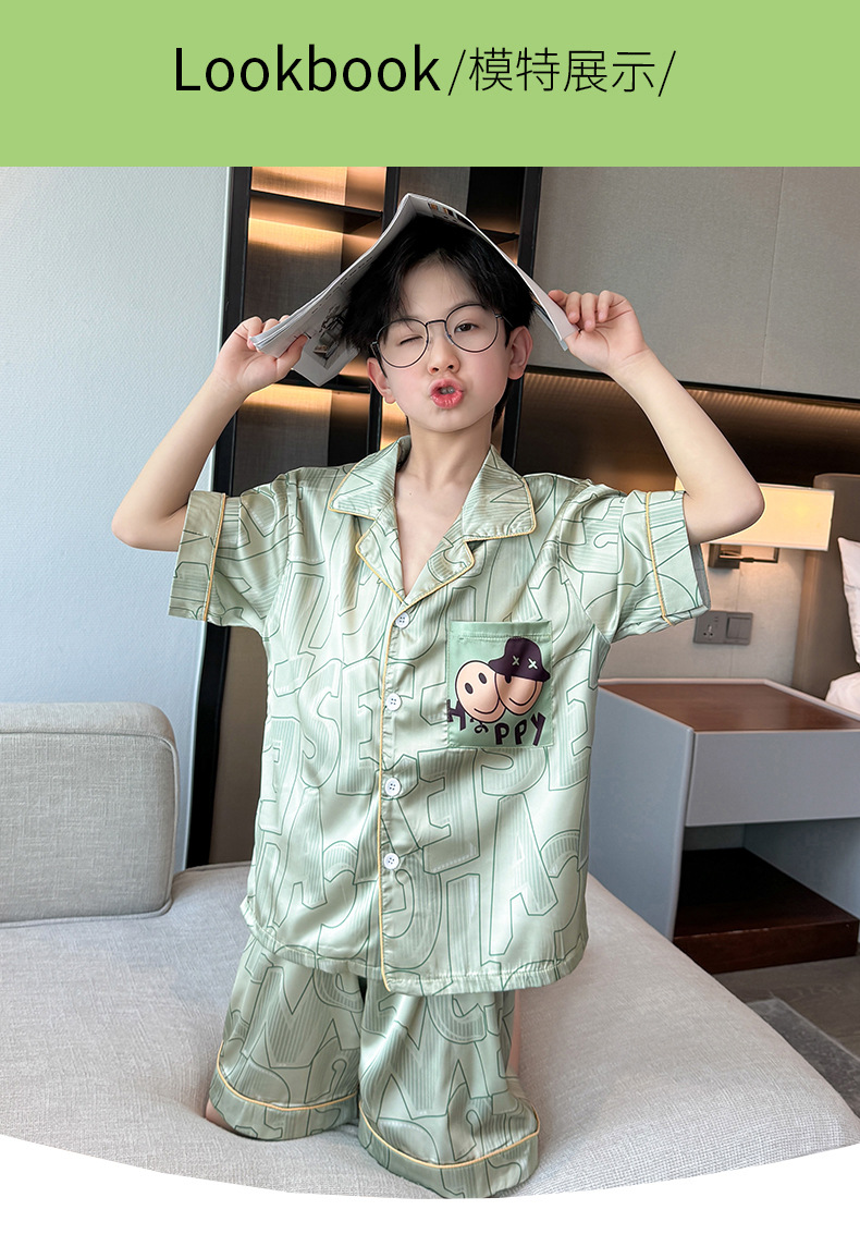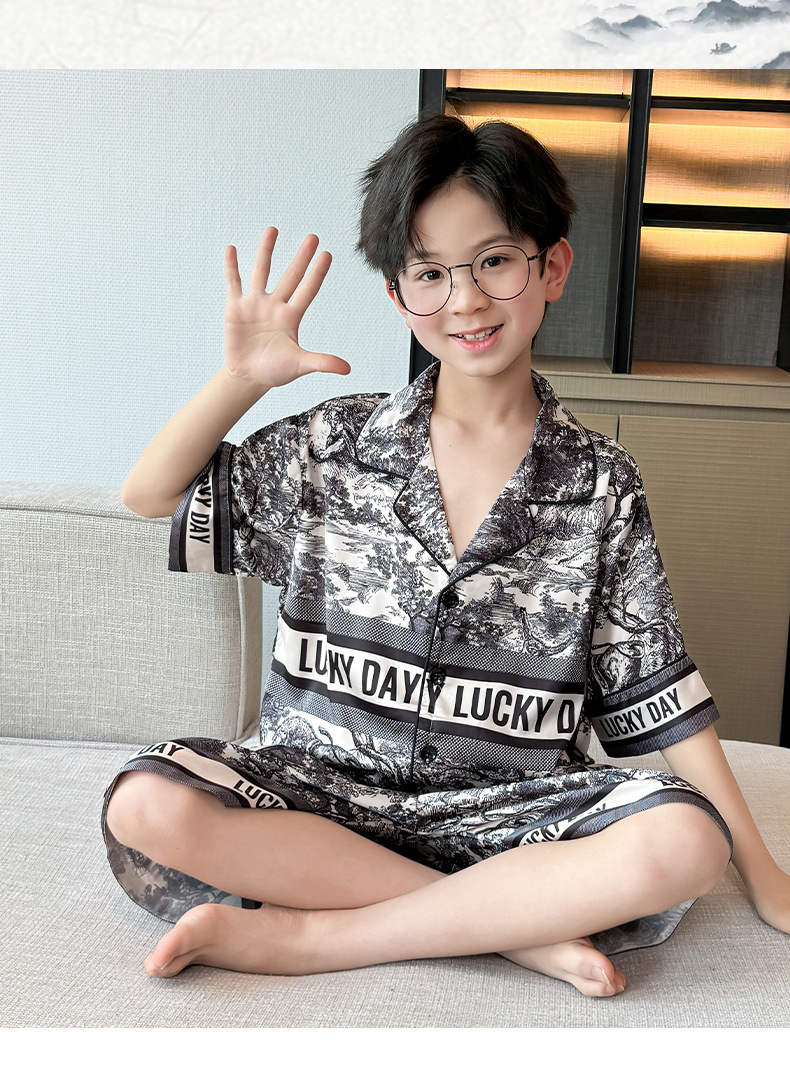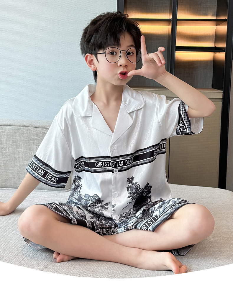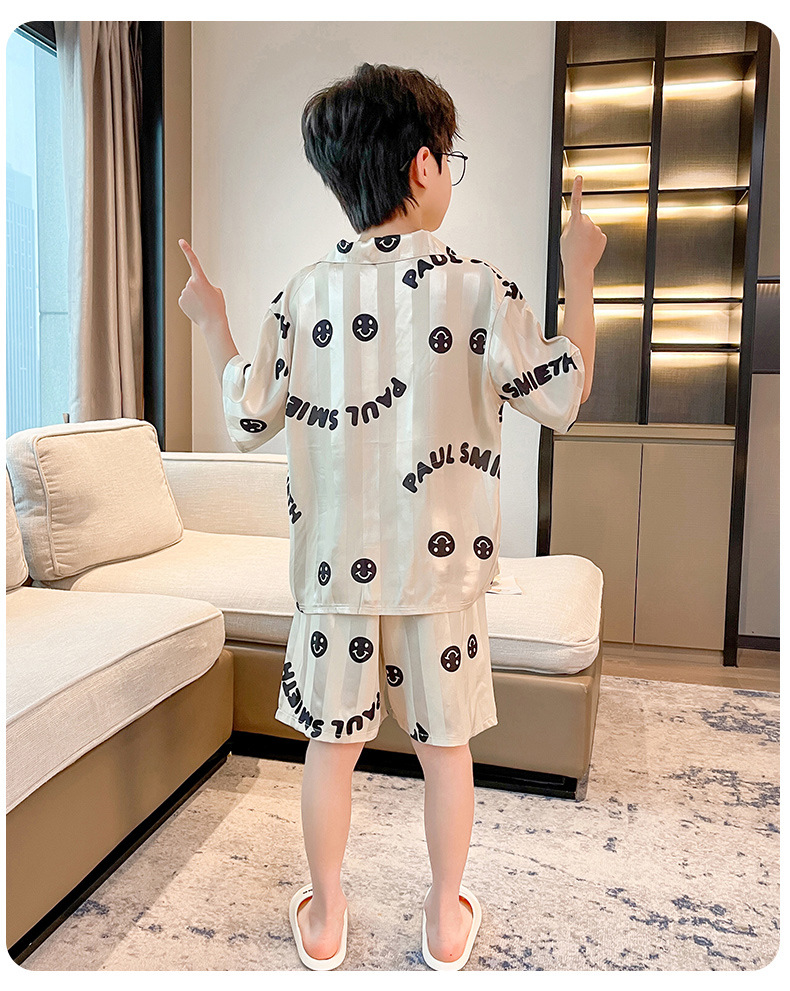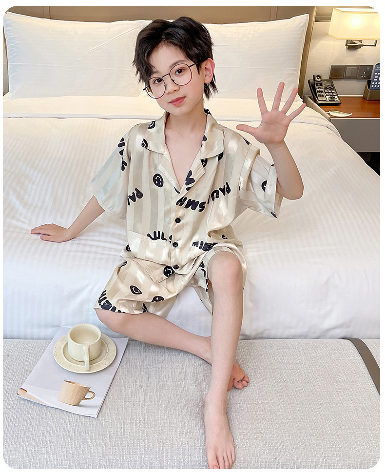 어린이 의류 소년 여름 잠옷 아이스 실크 반팔 홈 의류 세트 얇은 소년의 여름 에어컨 세트스토어 가기