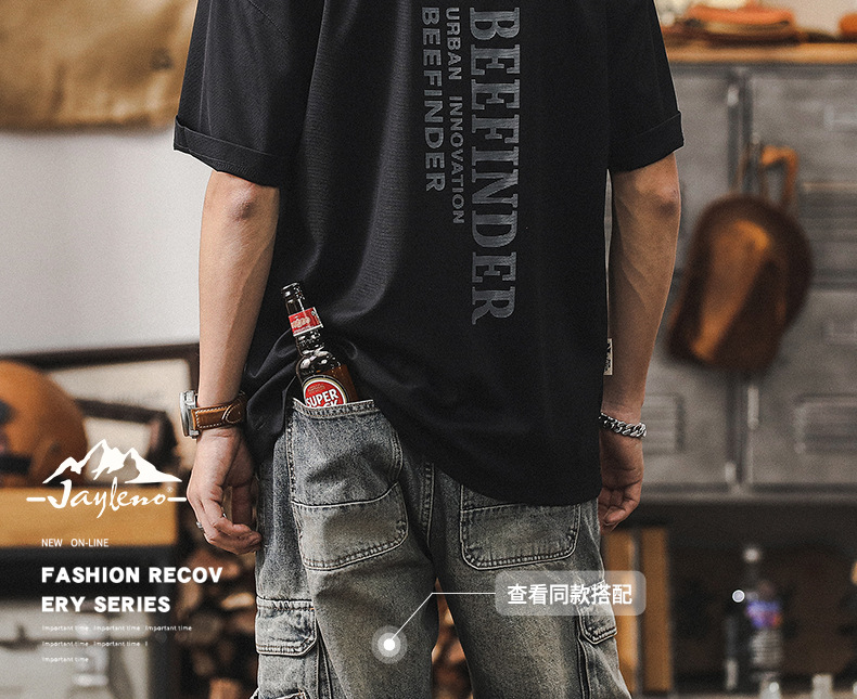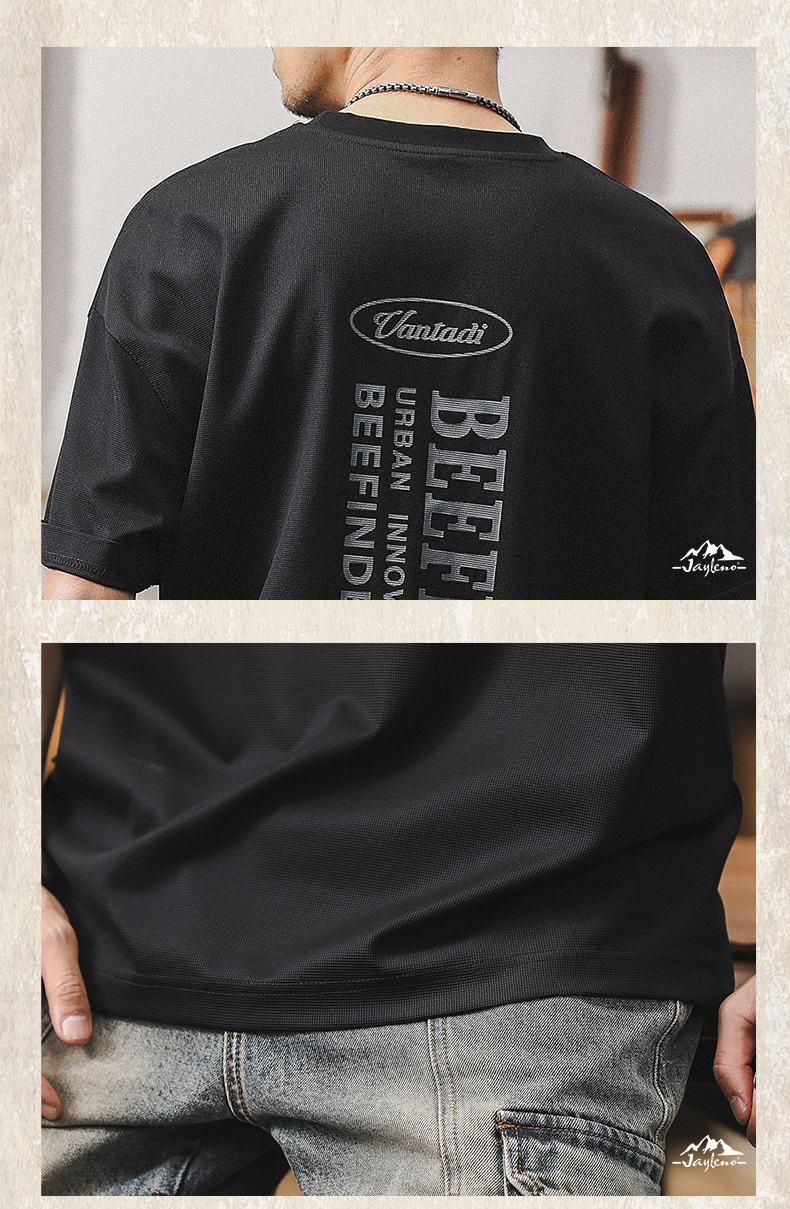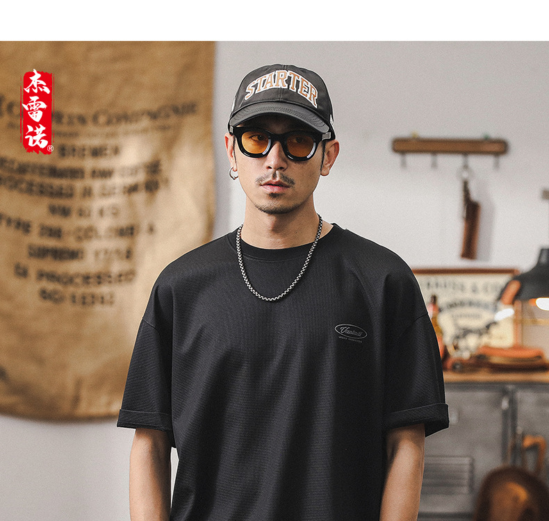 아이스 실크 반팔 티셔츠 남자 여름 얇은 유행 브랜드 느슨한 2024 새로운 탑 와플 남성 티셔츠 블랙스토어 가기