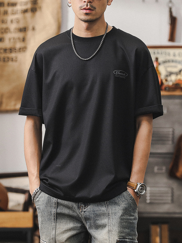 아이스 실크 반팔 티셔츠 남자 여름 얇은 유행 브랜드 느슨한 2024 새로운 탑 와플 남성 티셔츠 블랙