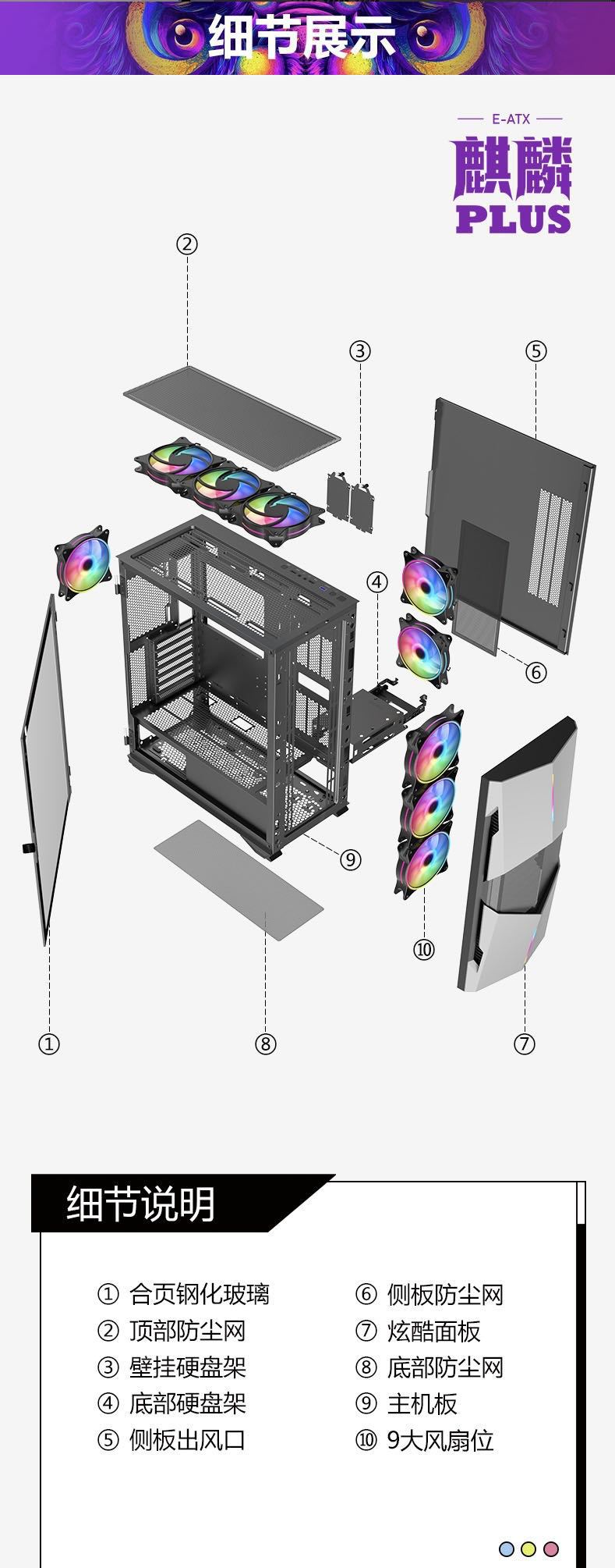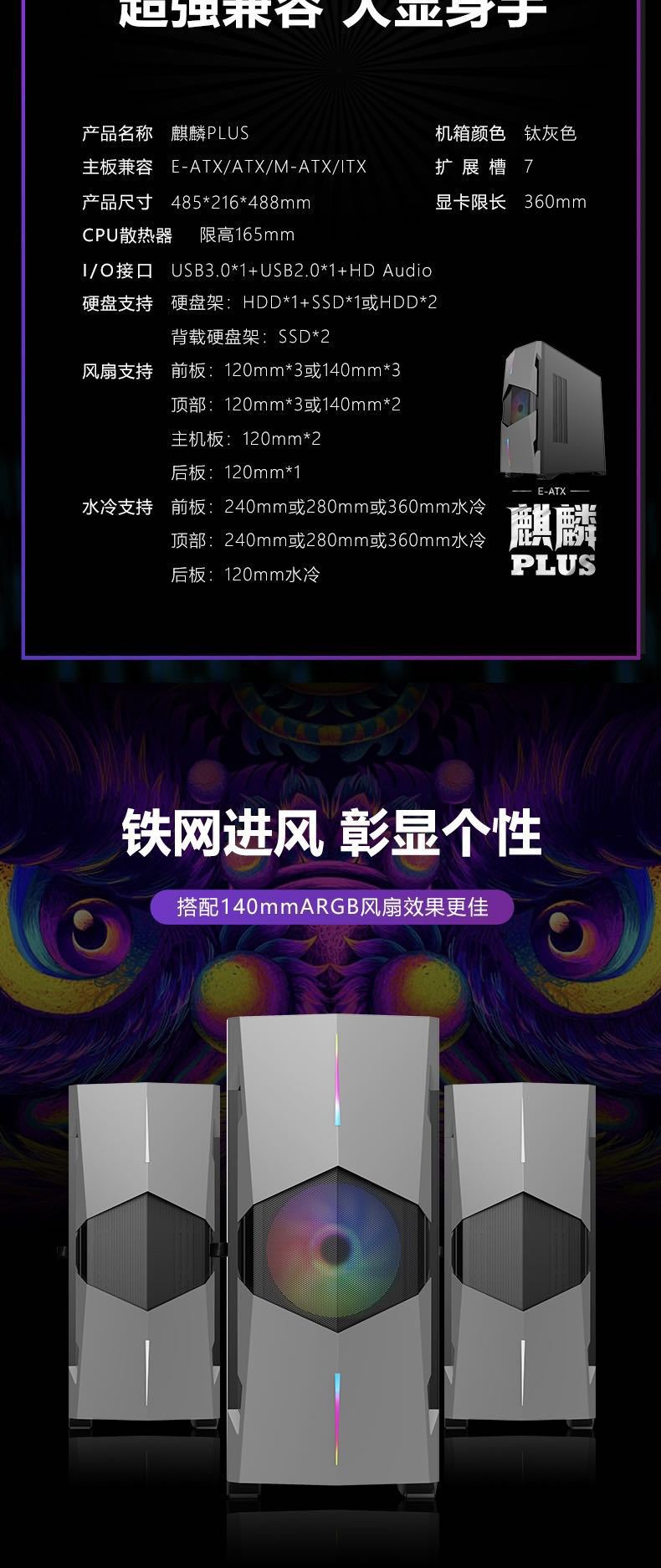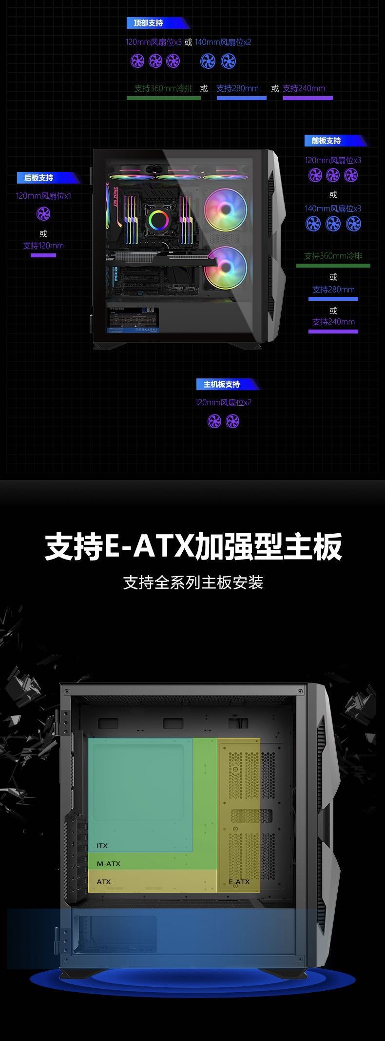 ARGB 라이트 바 섀시 E-ATX 섀시를 통해 대형 섀시 강화 유리 측면이있는 Panchi 360 수냉식 섀시