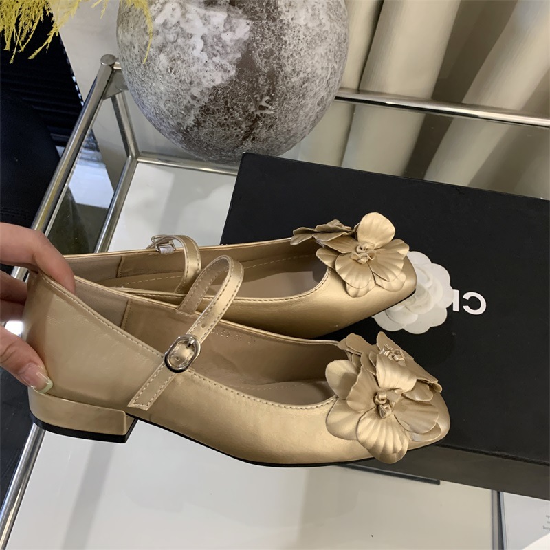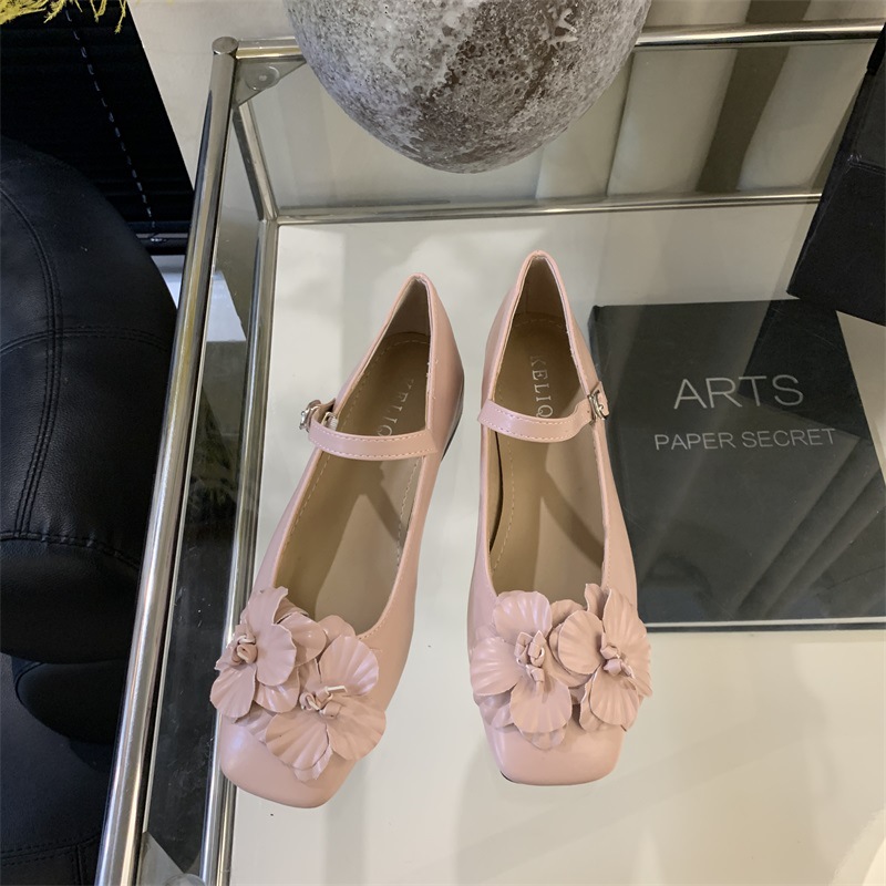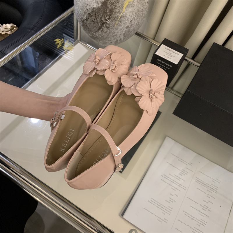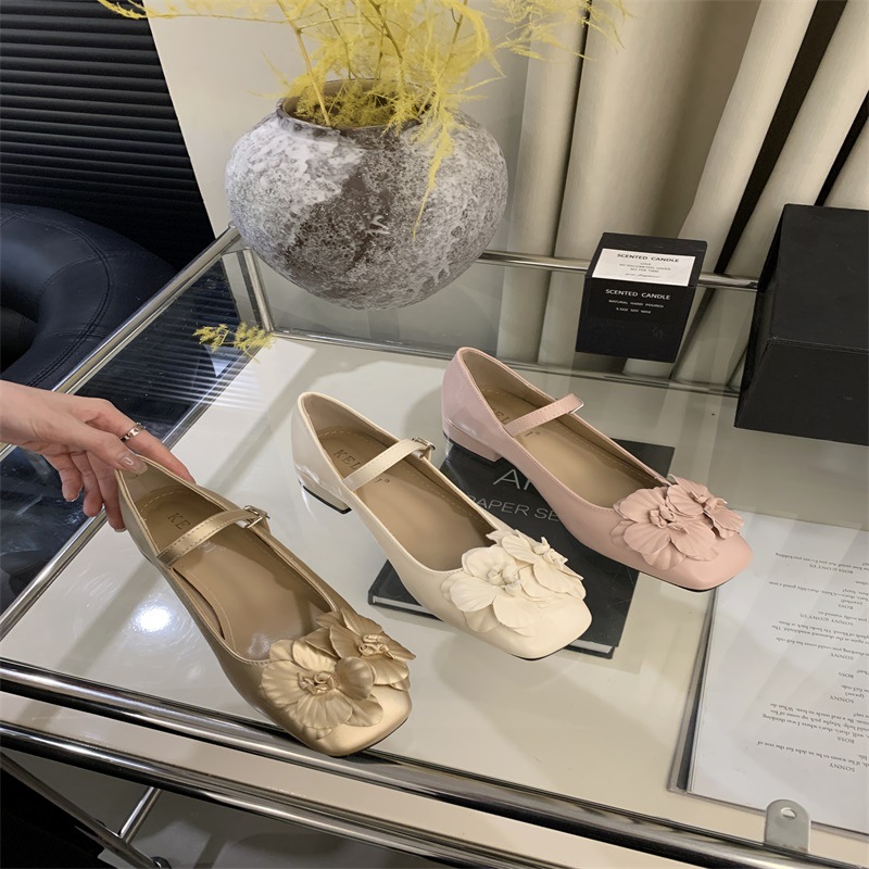 봄과 가을 2024 새로운 프랑스 요정 스타일 두꺼운 메리 제인 싱글 신발 여성 신발 꽃 디자인 저녁 신발스토어 가기