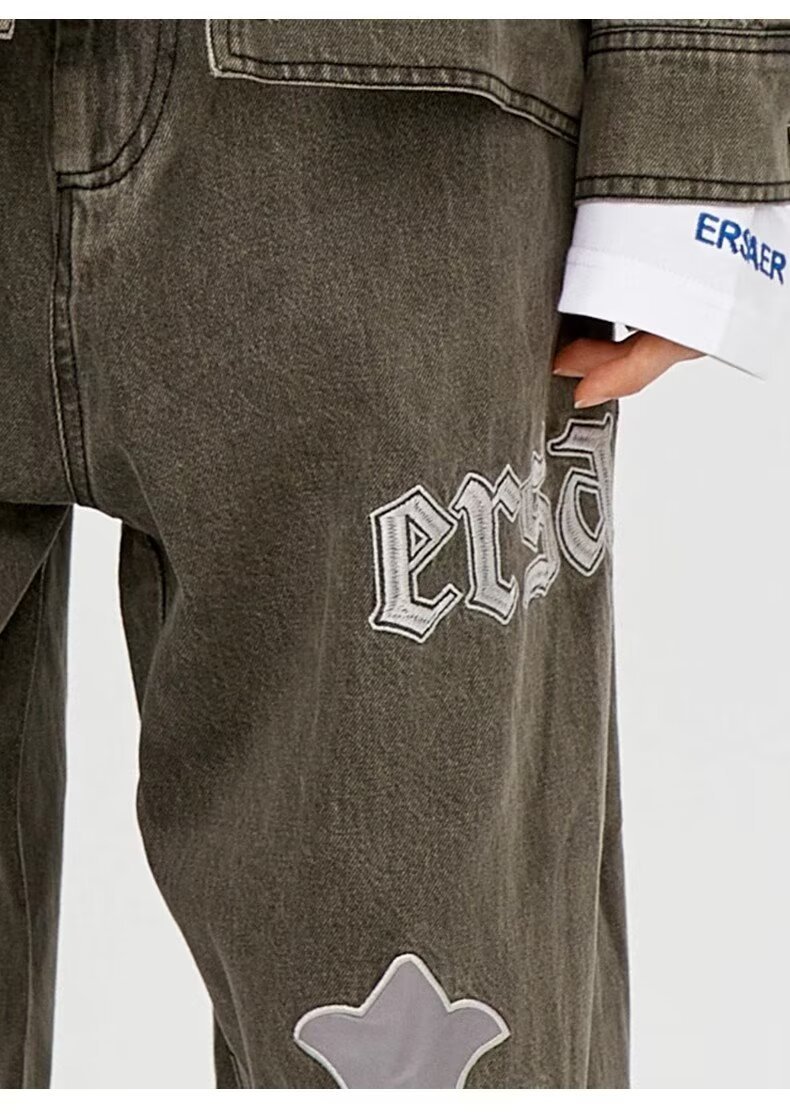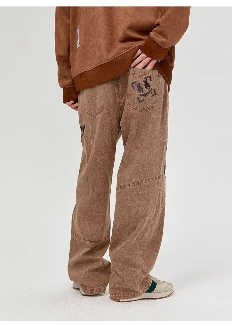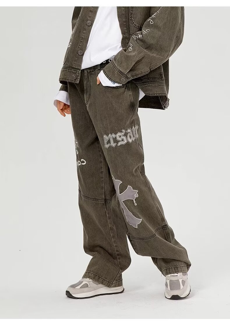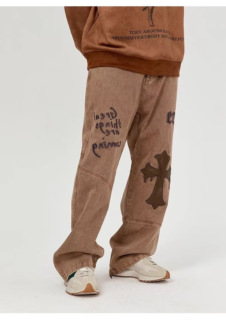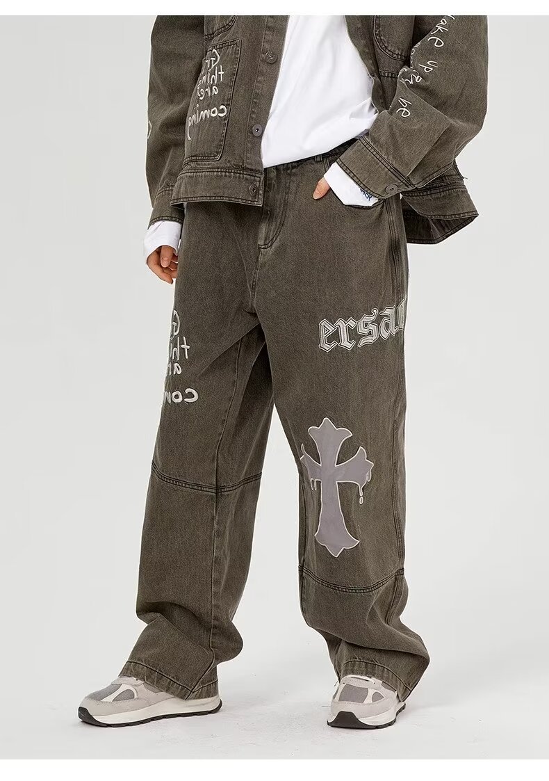 BAGGYJEANS 빈티지 크로스 스티칭 청바지 남성 유럽 및 미국 하이 스트리트 트렌디 브랜드 루즈 스트레이트 바지스토어 가기