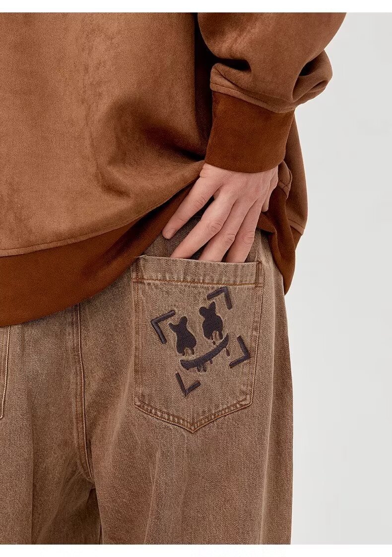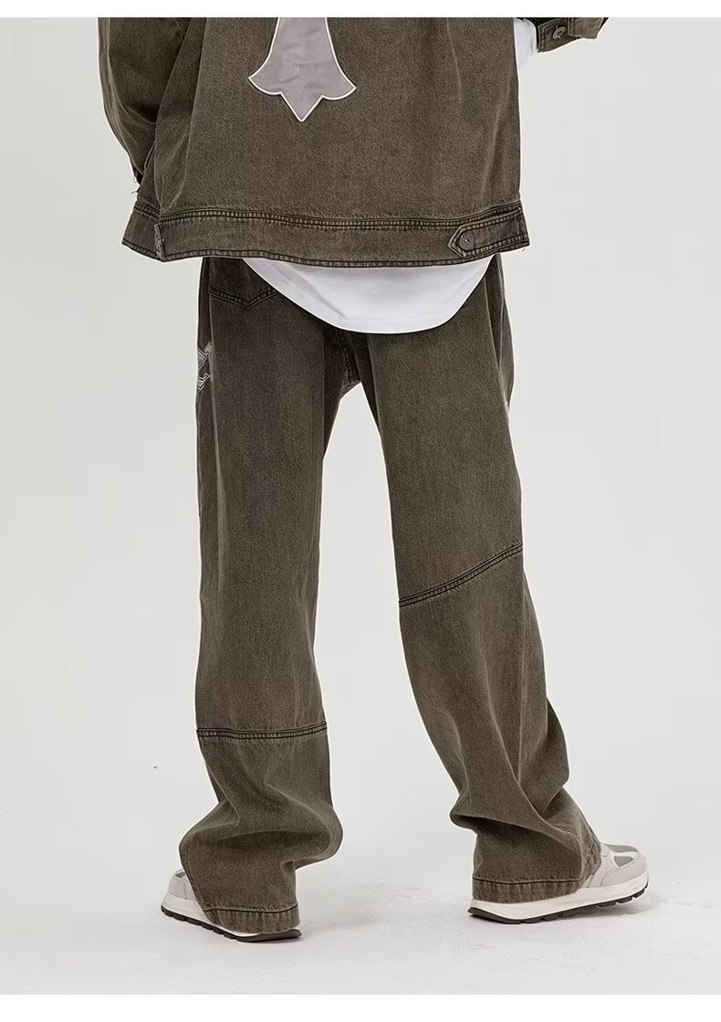 BAGGYJEANS 빈티지 크로스 스티칭 청바지 남성 유럽 및 미국 하이 스트리트 트렌디 브랜드 루즈 스트레이트 바지