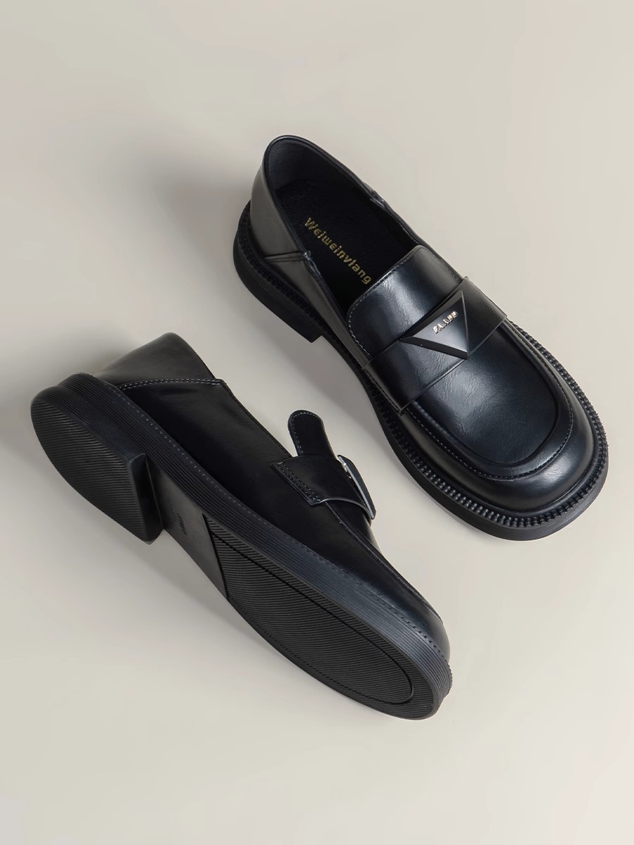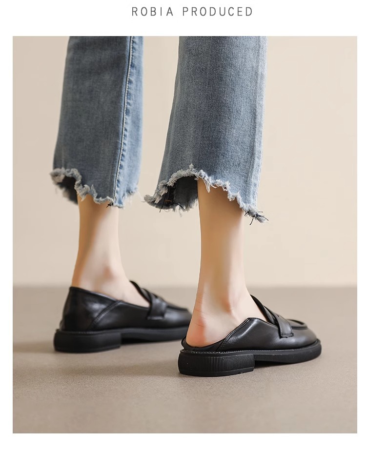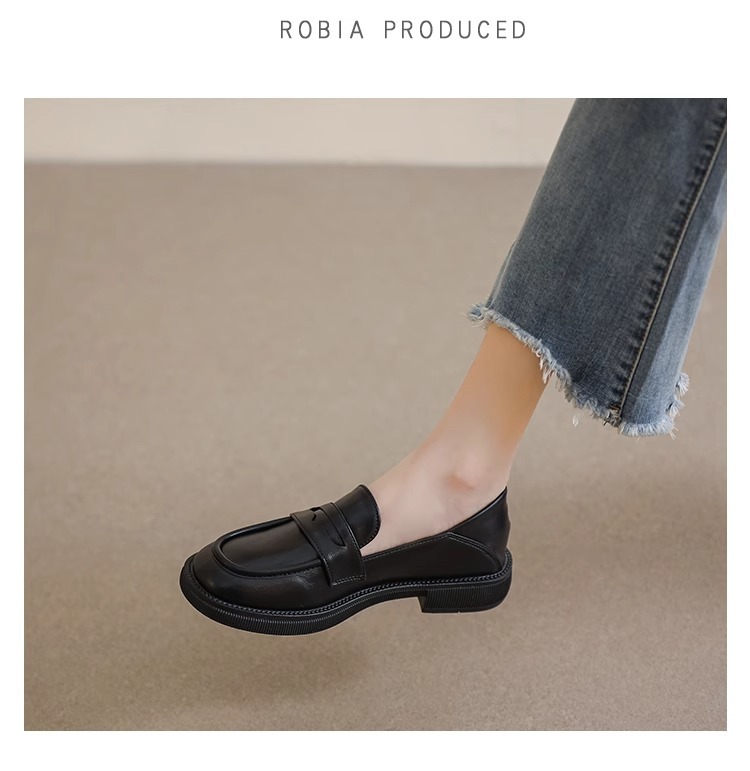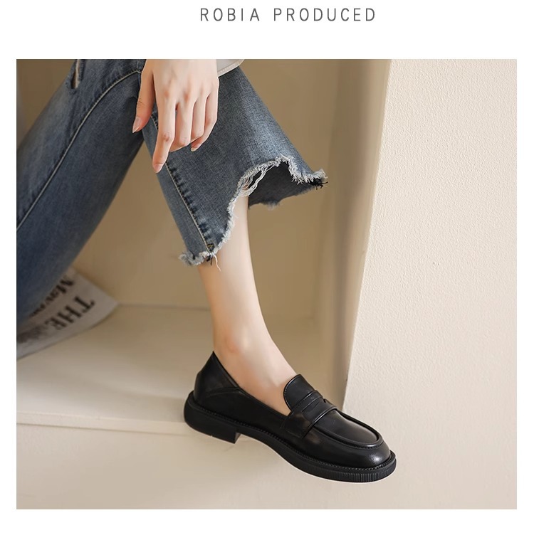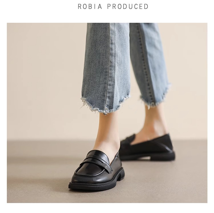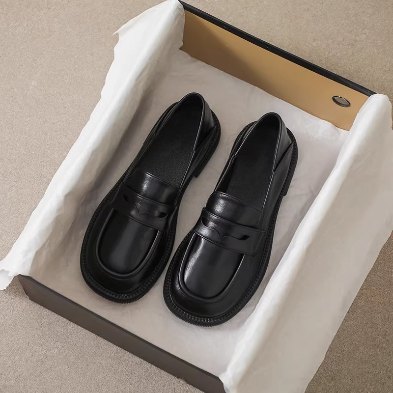 블랙 영국 스타일 작은 가죽 신발 여성의 2024 봄과 가을 새로운 부드러운 가죽 플랫 Jk 싱글 신발 대학 한 페달 로퍼스토어 가기