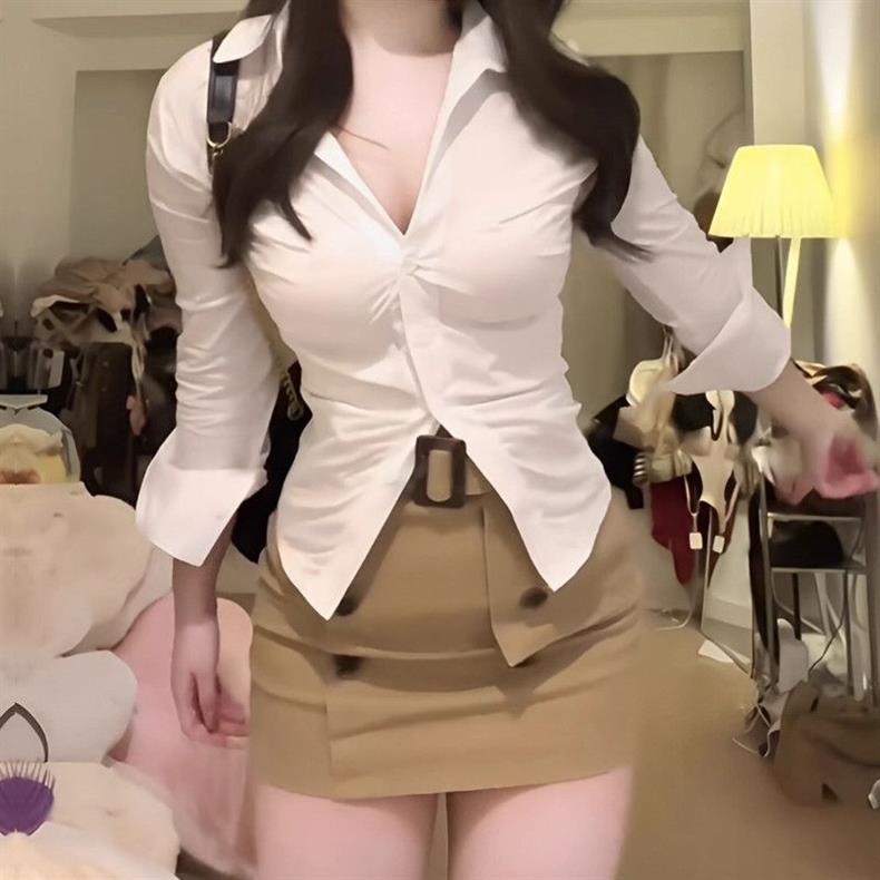 Jk 유니폼 순수한 욕망 스파이스 소녀 타이트 허리 셔츠 여성의 봄과 가을 대학 스타일 화이트 셔츠 슬림 핏 슬림베이스 탑