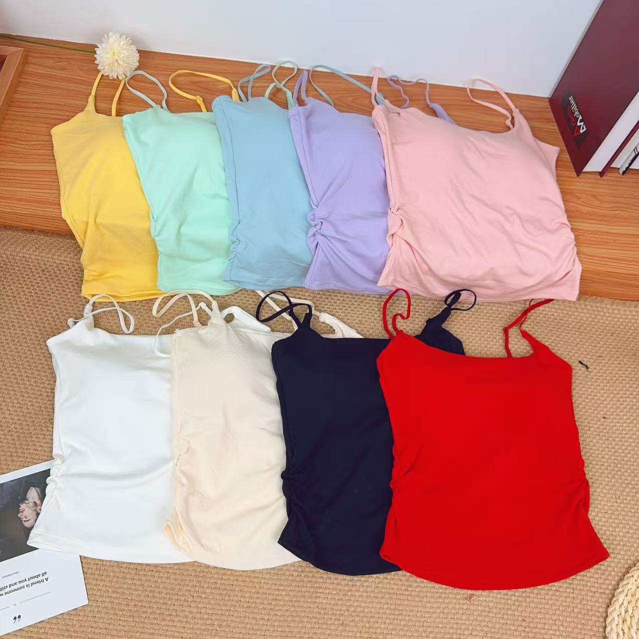 순수한 달콤하고 매운 주름 된 카미 솔 여성이 가슴 패드 내부와 함께 온다. 외장 입기 디자인 감각 슬림 핏 아름다운 백탑