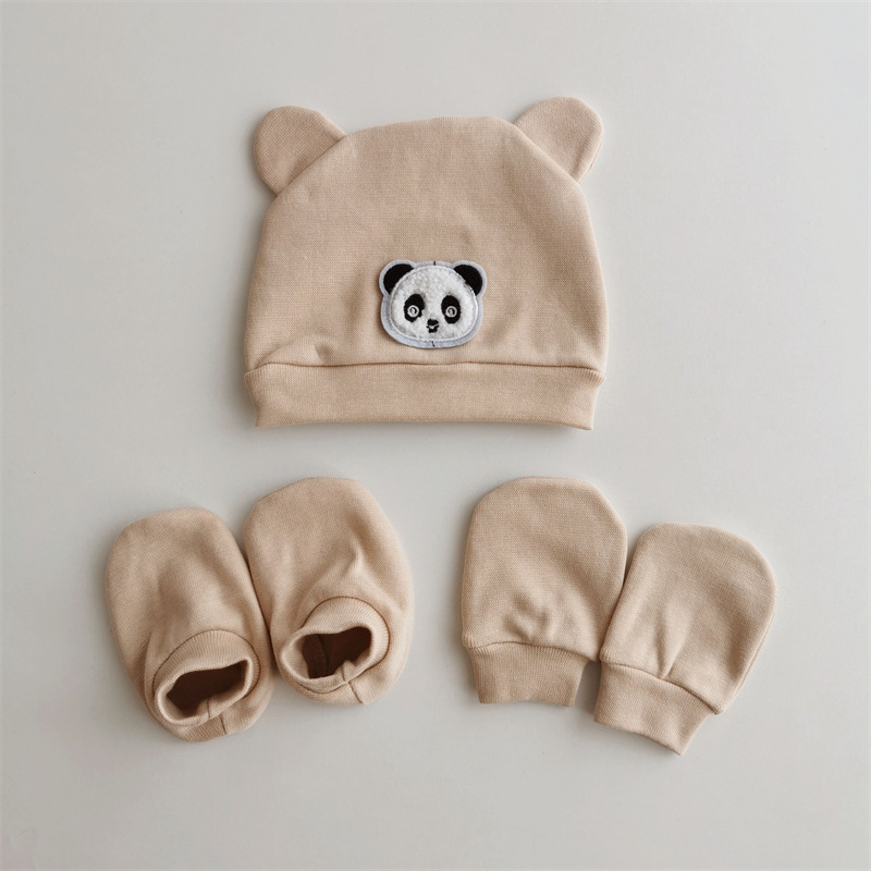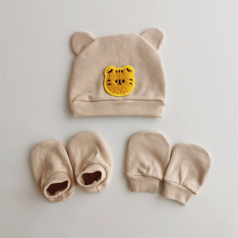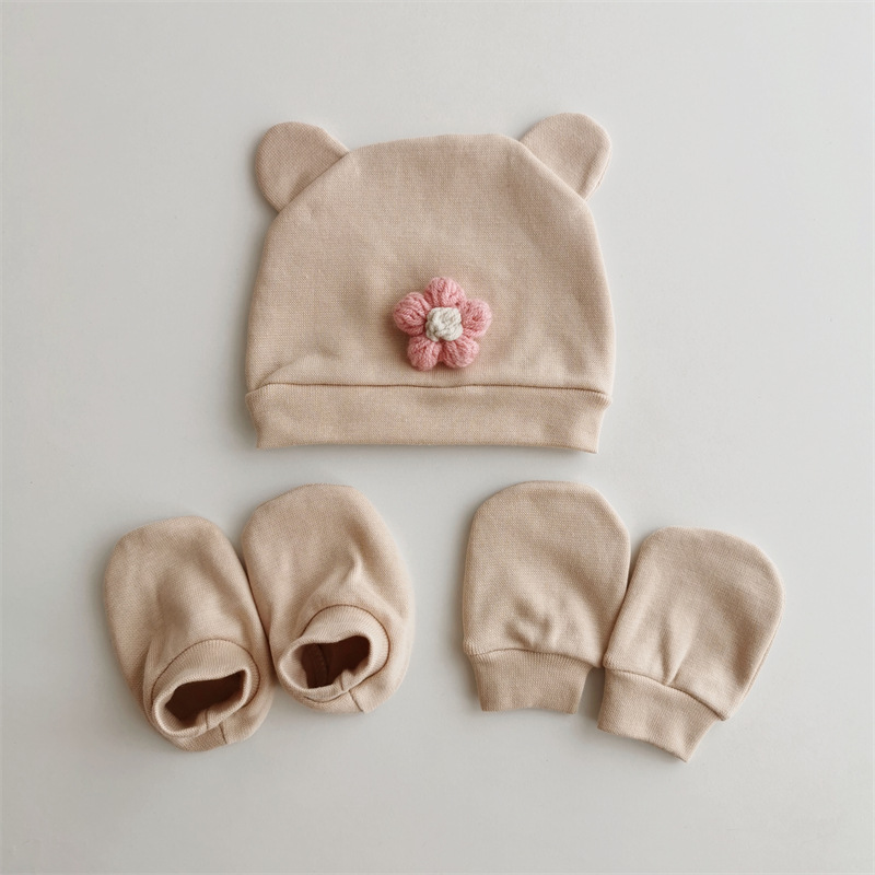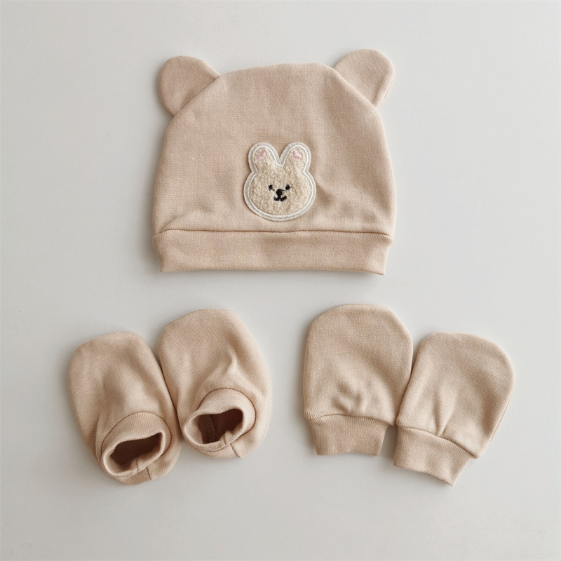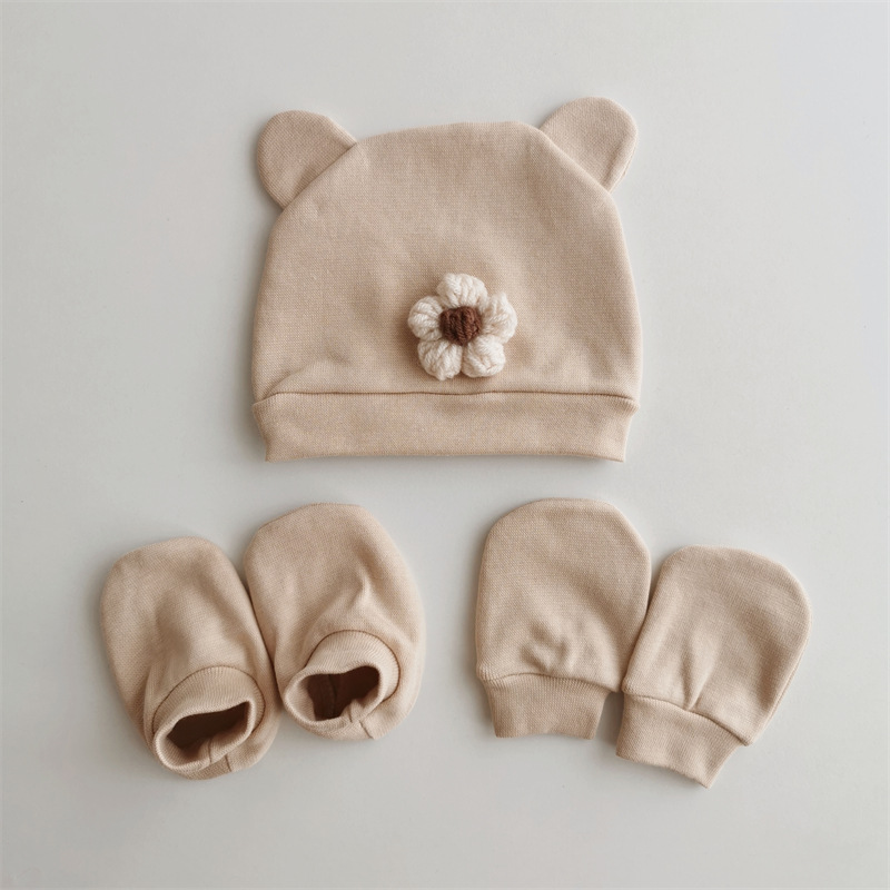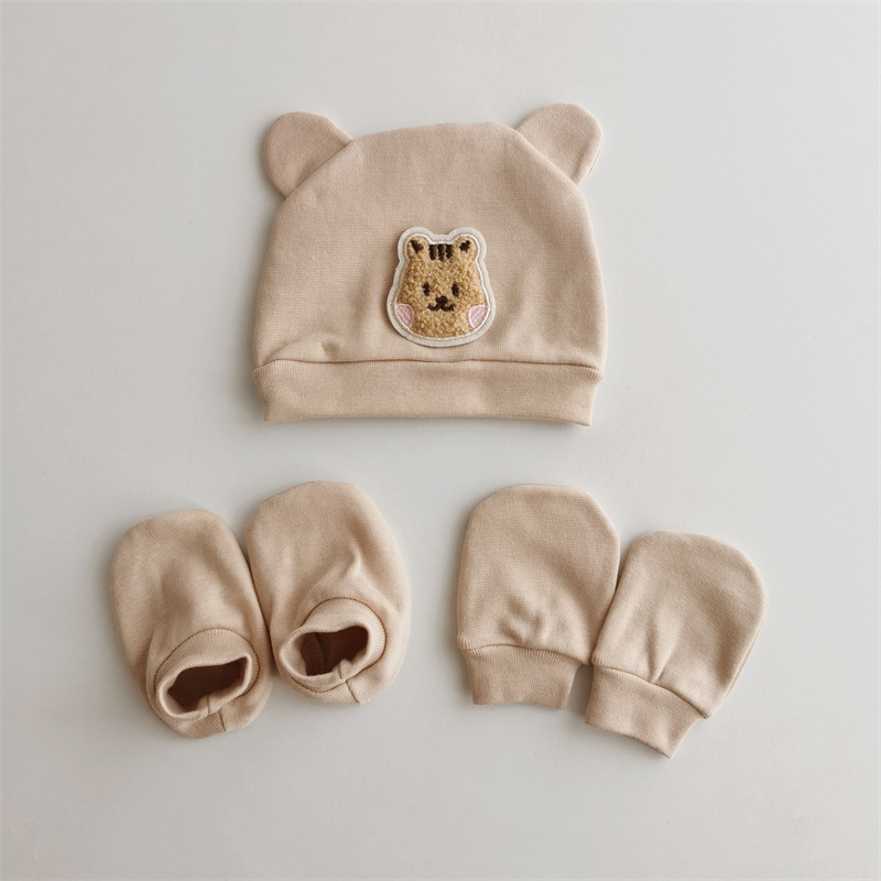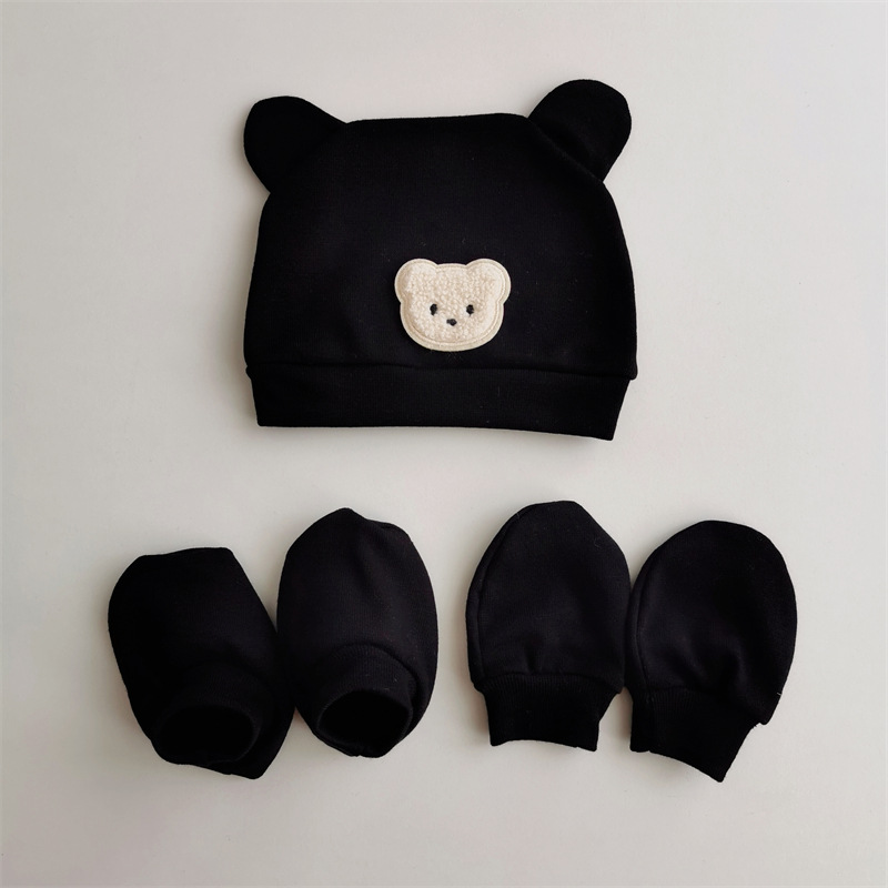 韩版ins风 新生儿小熊耳朵胎帽+防抓手套+脚套