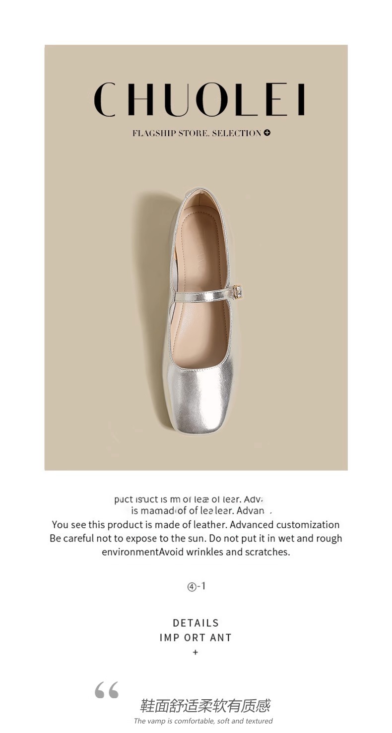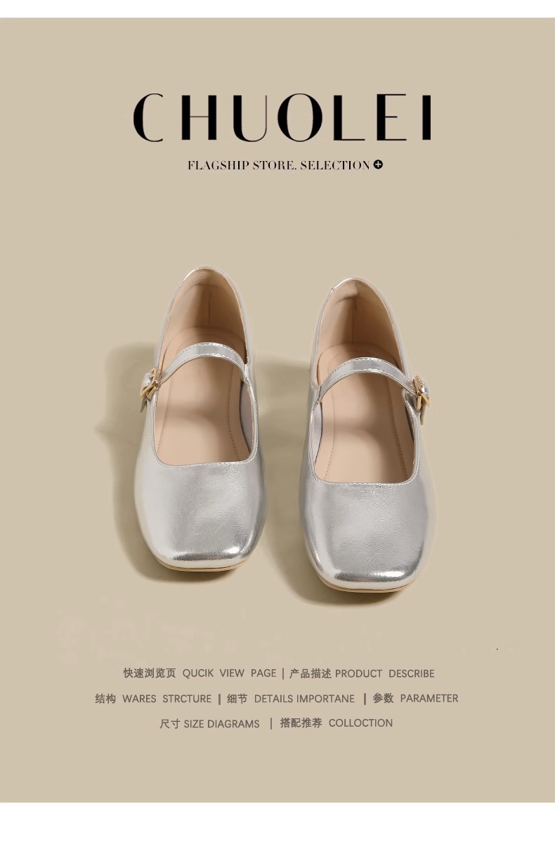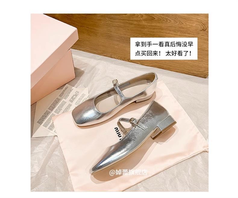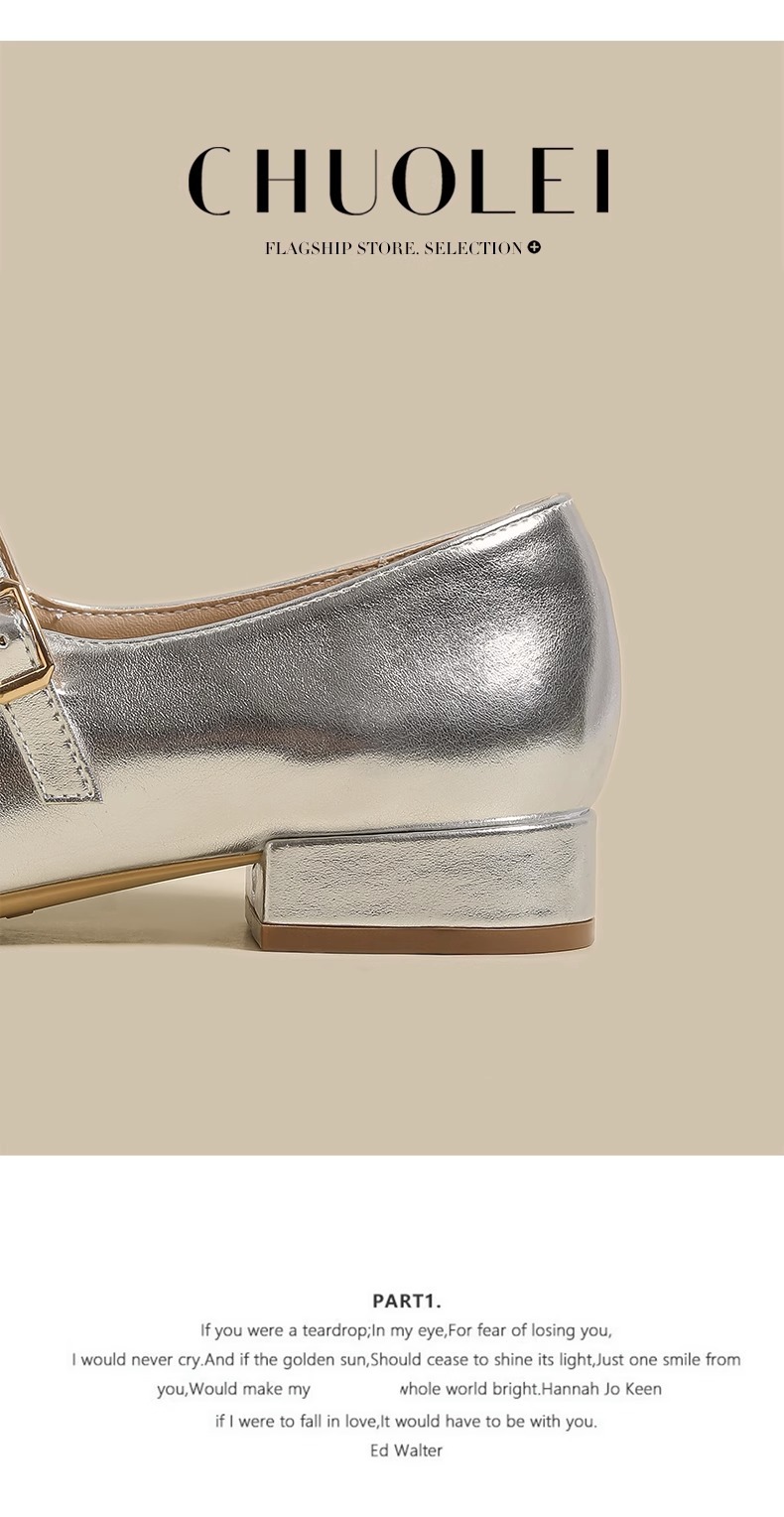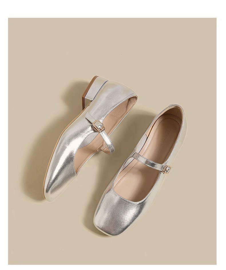 여성용 정품 가죽 복고풍 프렌치 로우힐 가죽 신발 2024 가을 실버 펌프스 플랫 메리제인 슈즈, 다용도스토어 가기