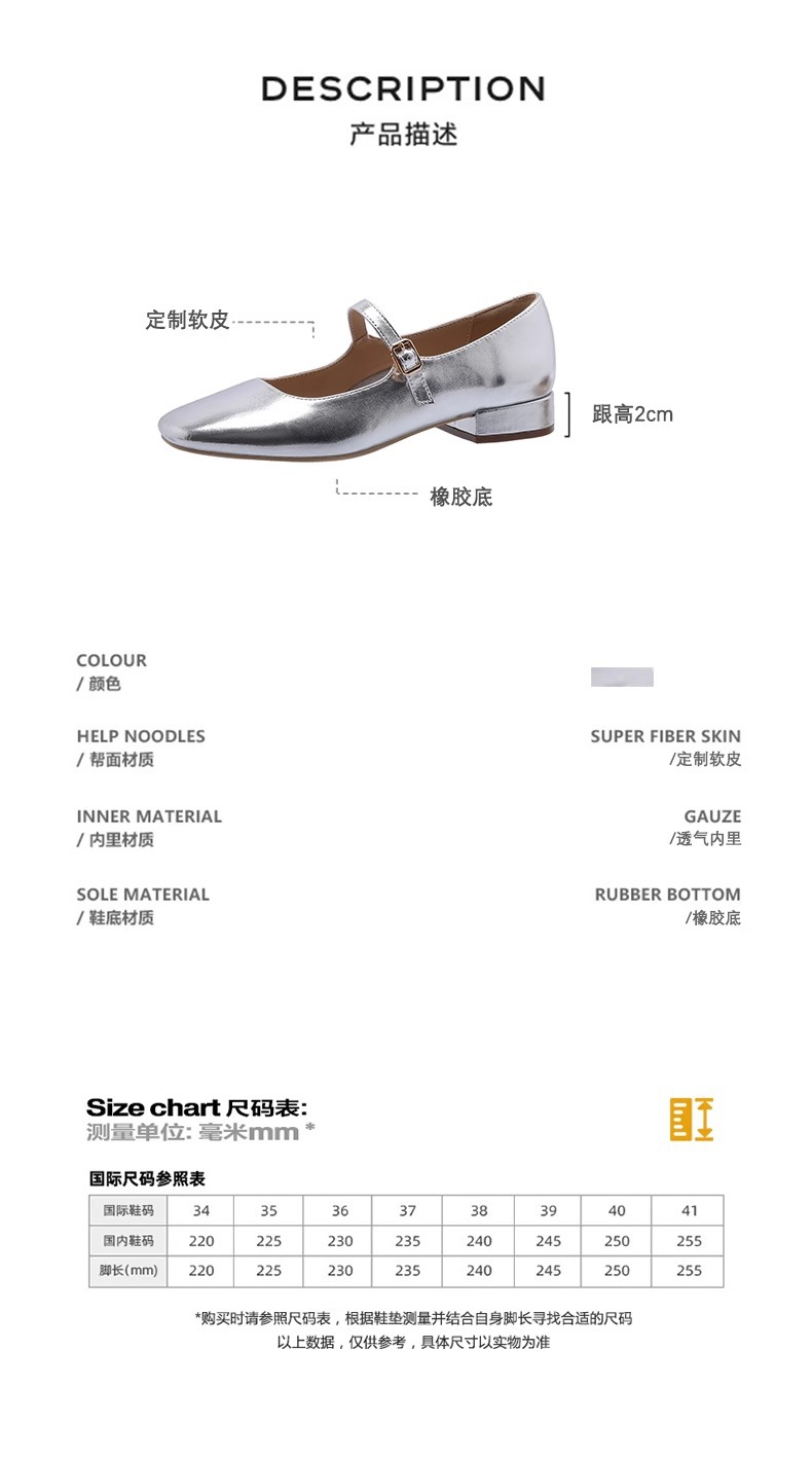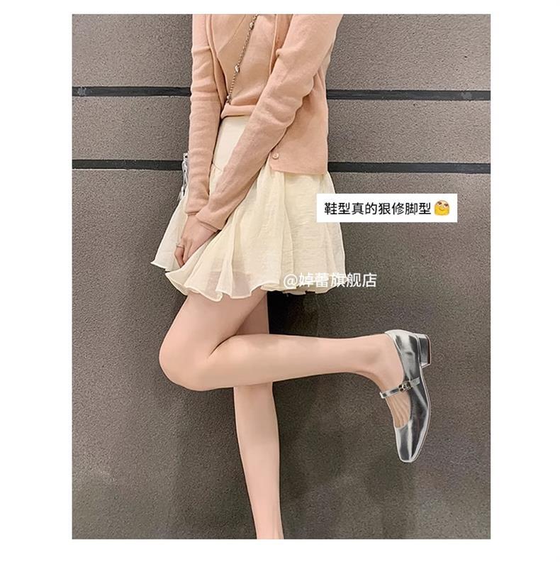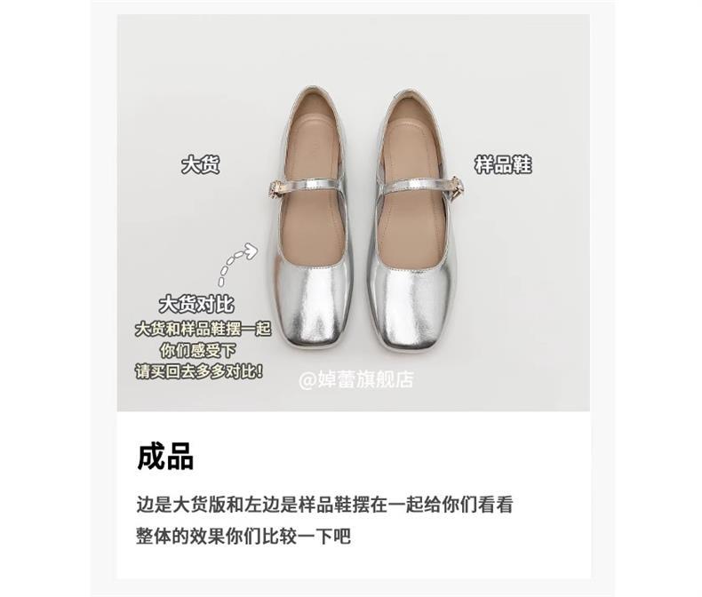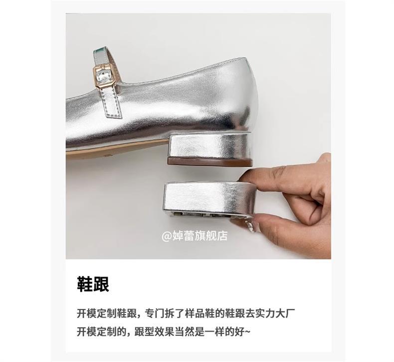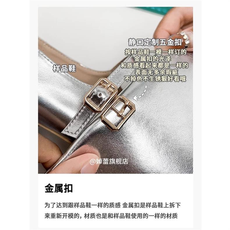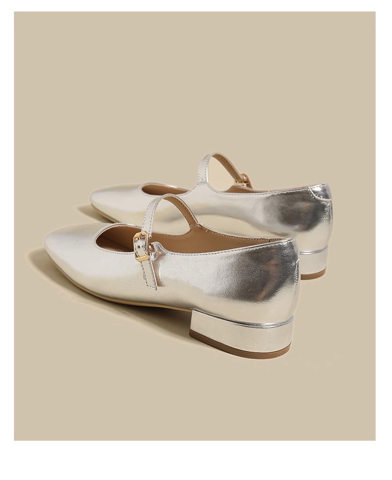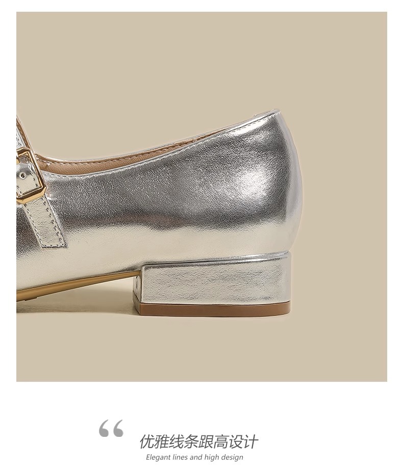 여성용 정품 가죽 복고풍 프렌치 로우힐 가죽 신발 2024 가을 실버 펌프스 플랫 메리제인 슈즈, 다용도스토어 가기
