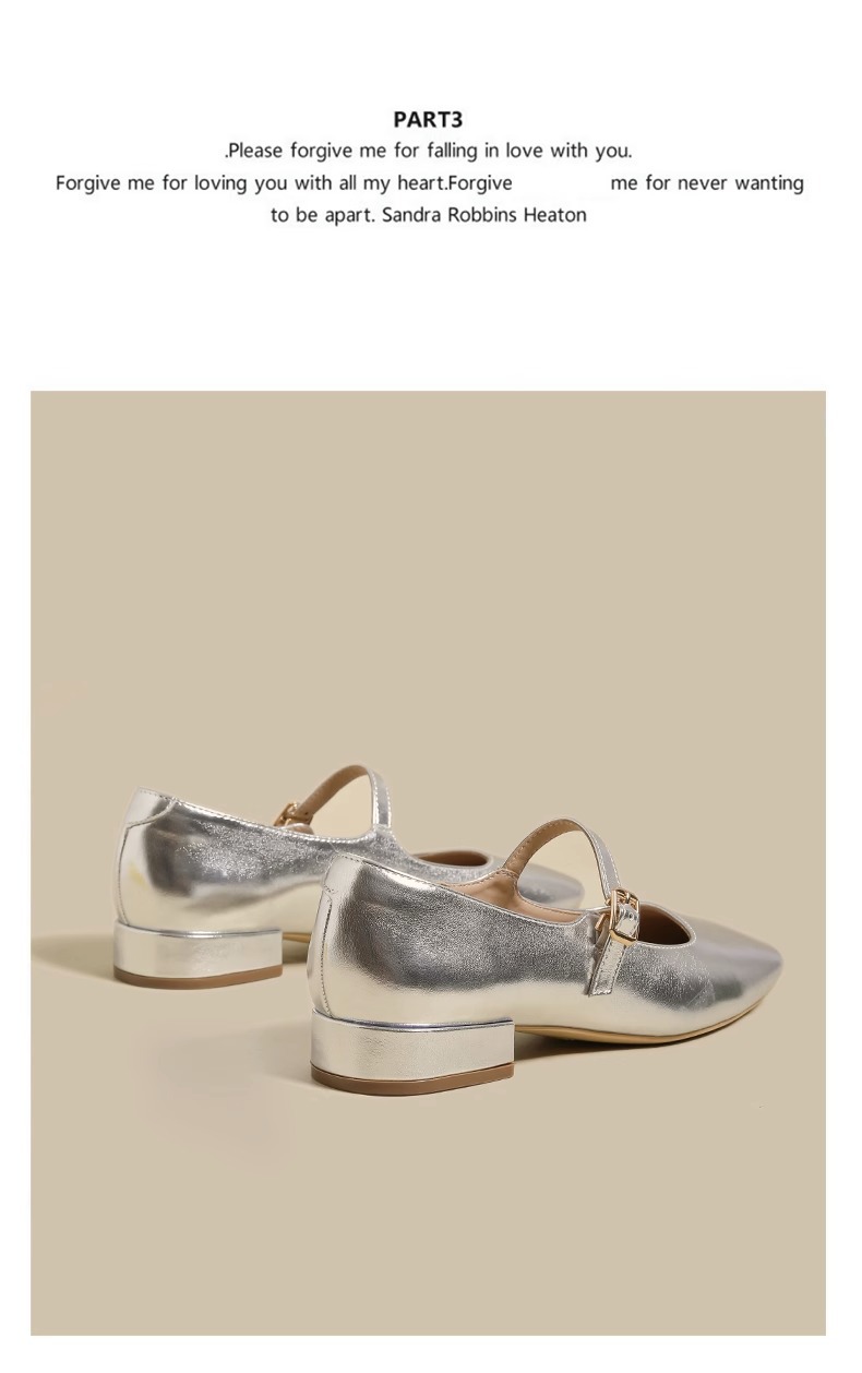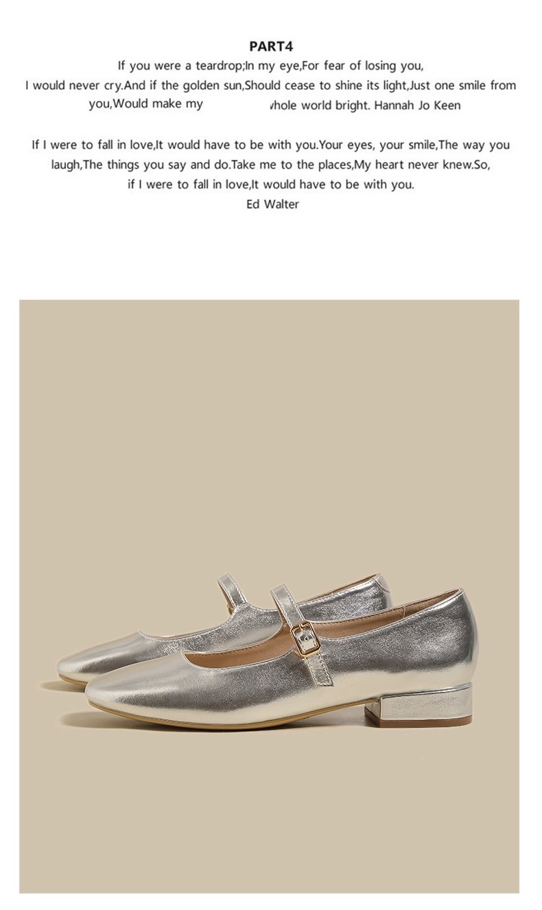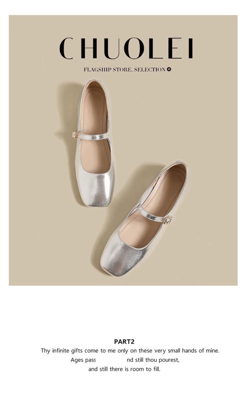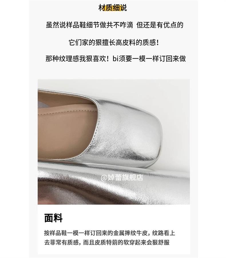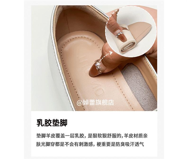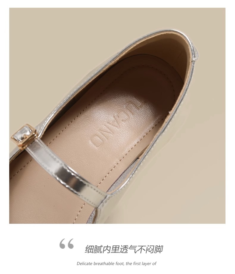 여성용 정품 가죽 복고풍 프렌치 로우힐 가죽 신발 2024 가을 실버 펌프스 플랫 메리제인 슈즈, 다용도스토어 가기
