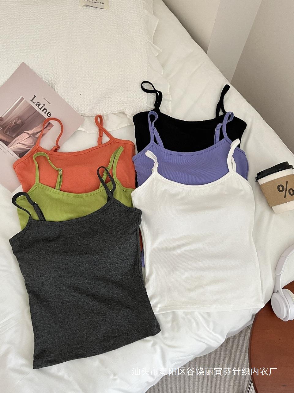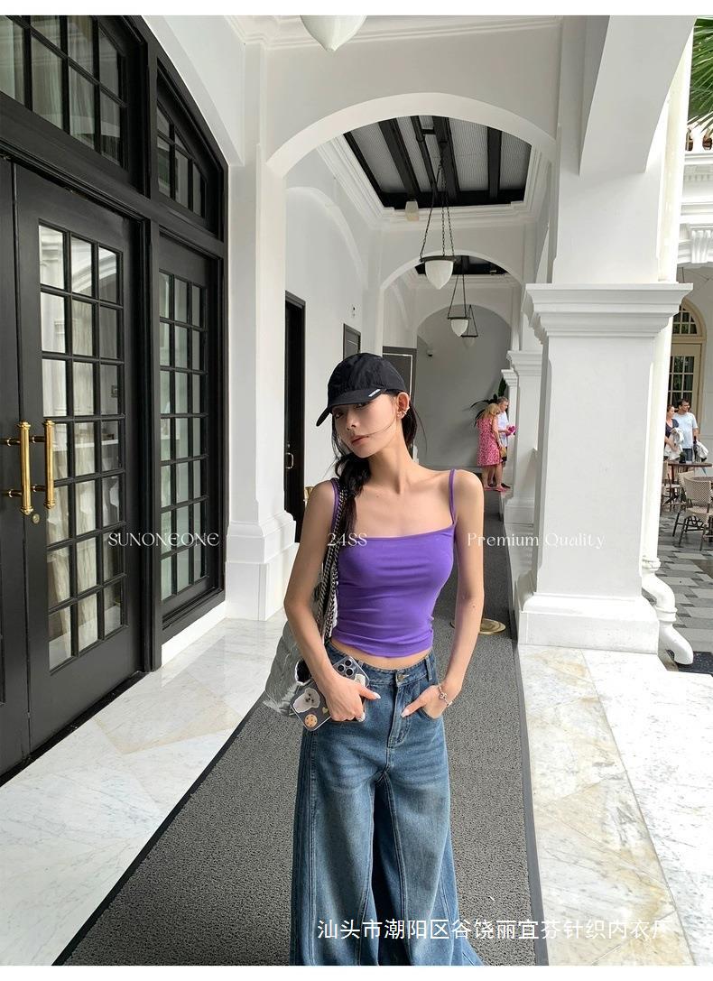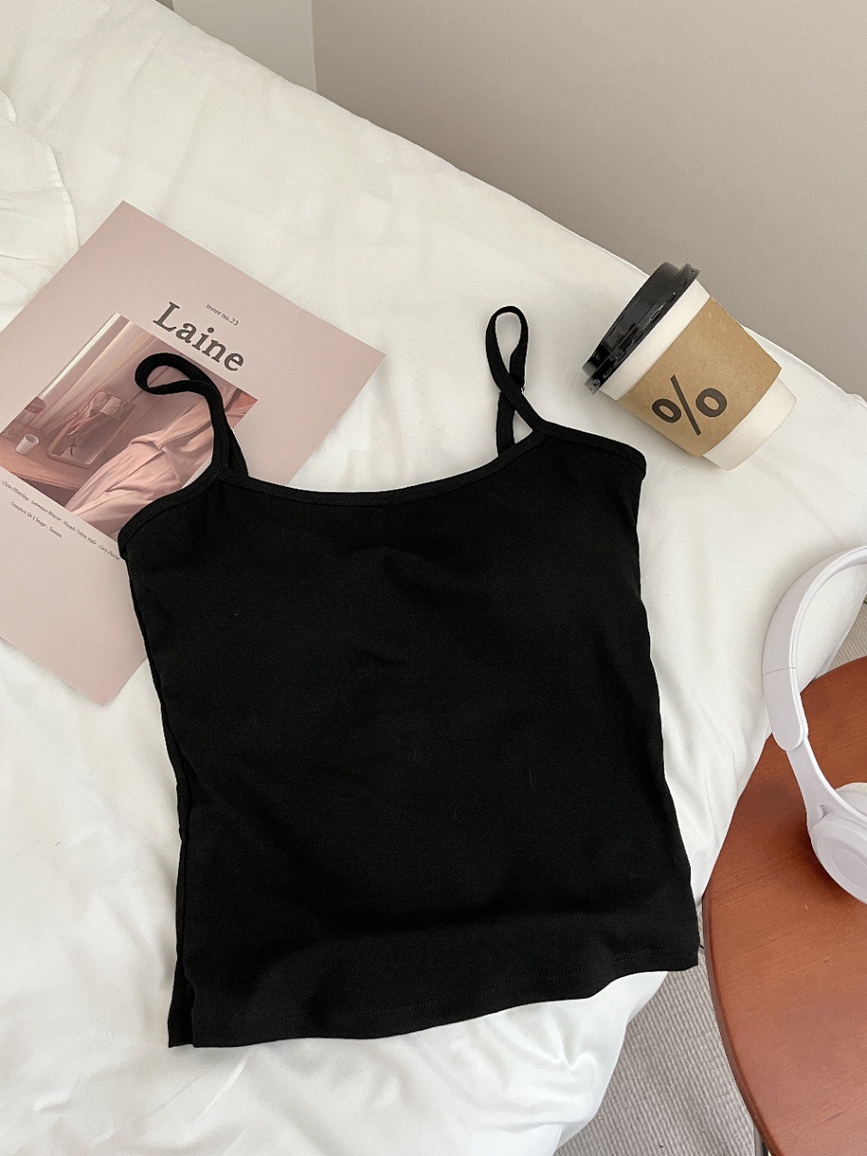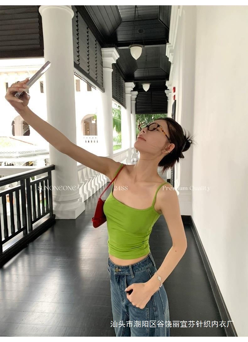 순수한 스파이스 소녀 카미 솔 올 매치 솔리드 컬러 아름다운 등 섹시한 고정 가슴 패드 내부 탑 외부 착용 슬림 핏 여성스토어 가기