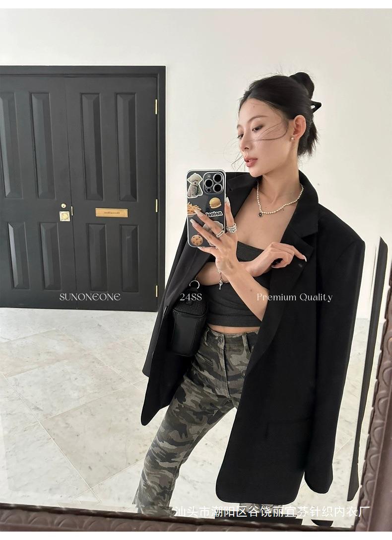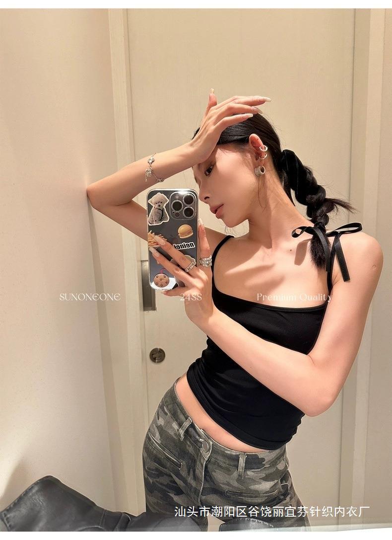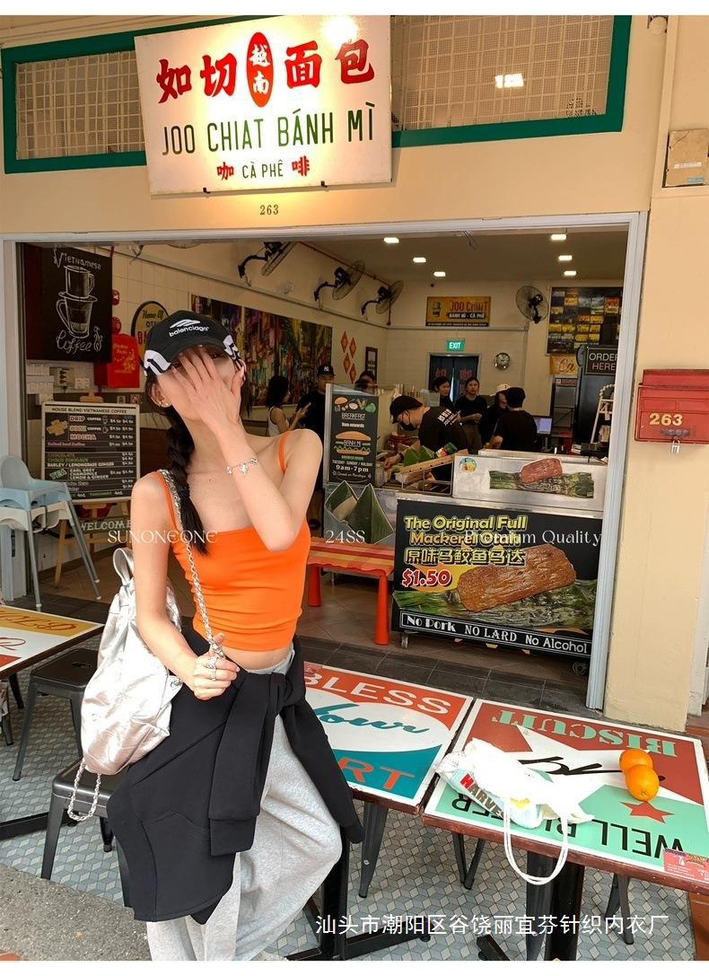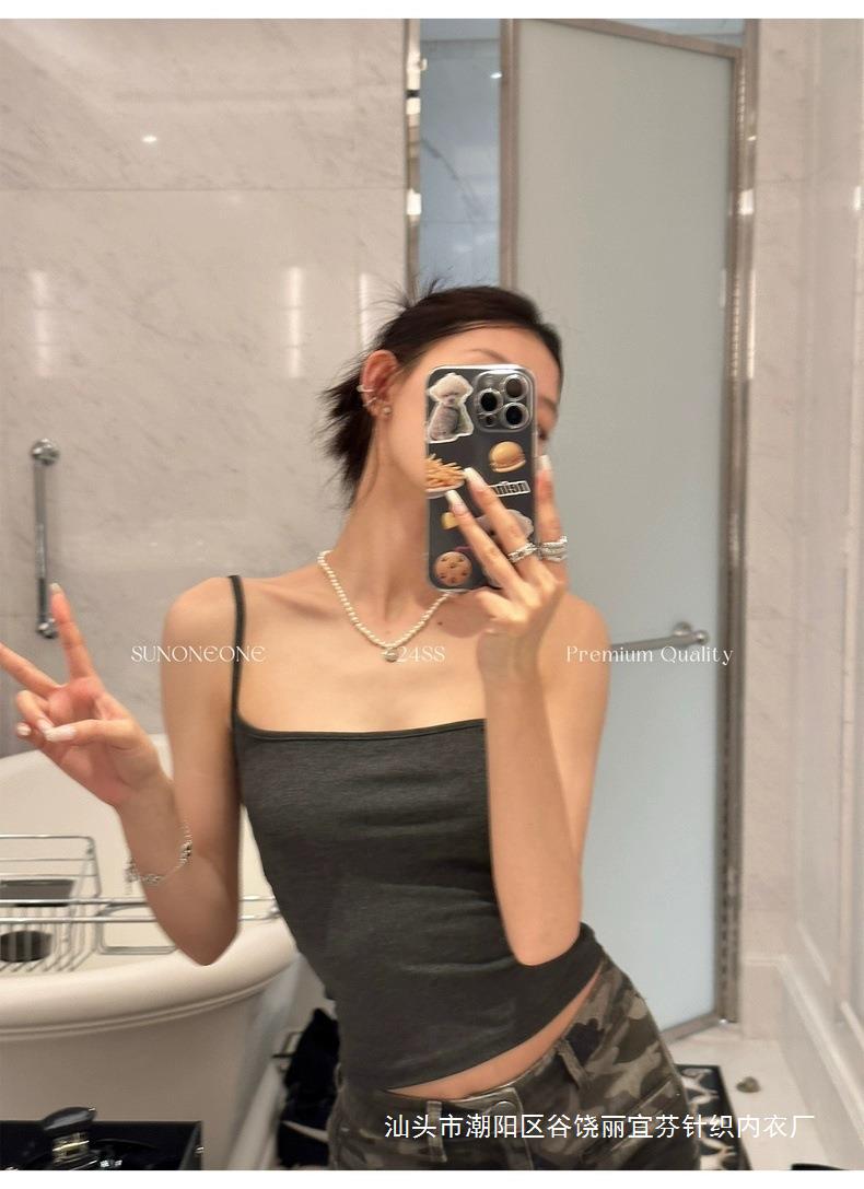 순수한 스파이스 소녀 카미 솔 올 매치 솔리드 컬러 아름다운 등 섹시한 고정 가슴 패드 내부 탑 외부 착용 슬림 핏 여성스토어 가기