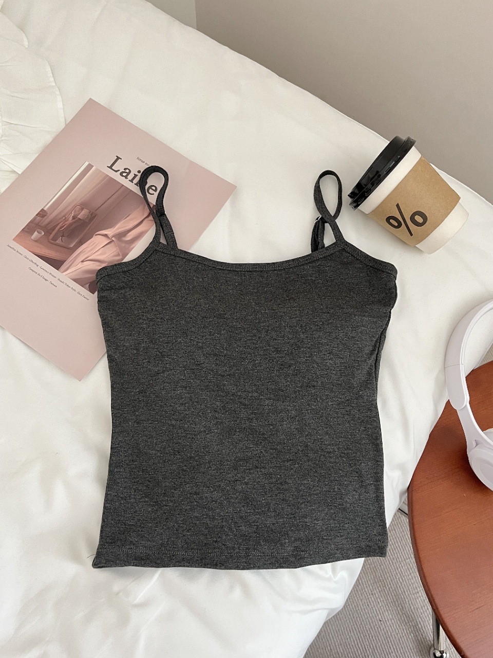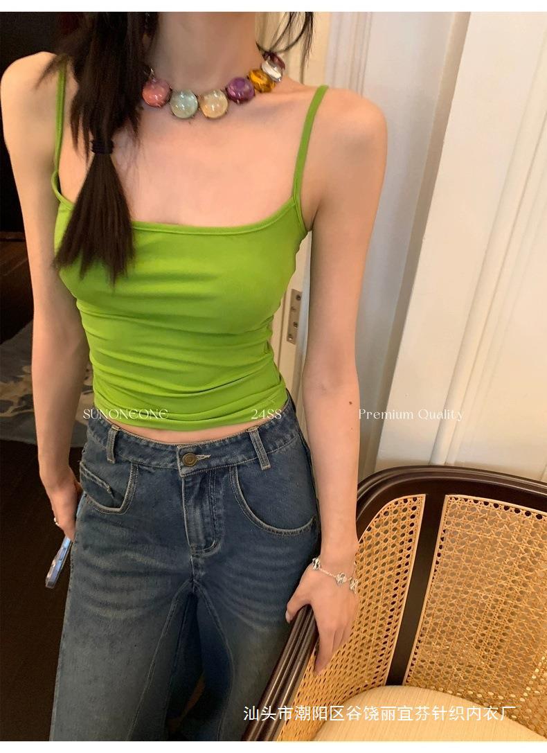 순수한 스파이스 소녀 카미 솔 올 매치 솔리드 컬러 아름다운 등 섹시한 고정 가슴 패드 내부 탑 외부 착용 슬림 핏 여성