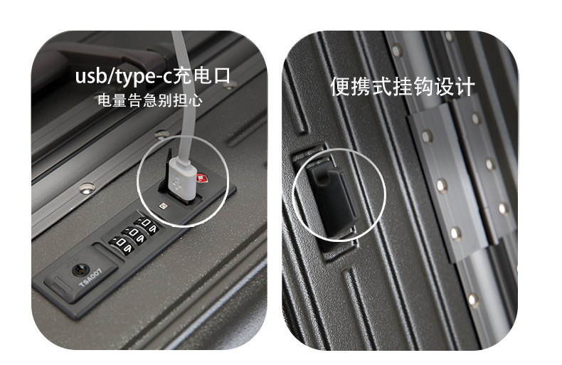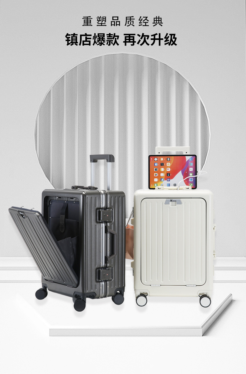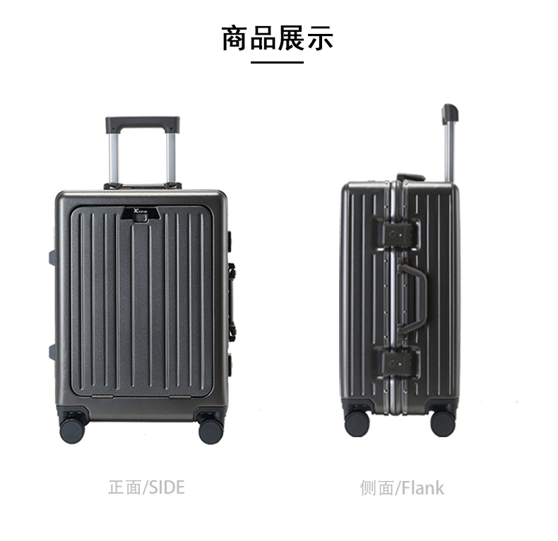 20 인치 알루미늄 프레임 전면 개방 수하물 케이스 여성의 작은 경량 다기능 충전 여행 트롤리 케이스 암호 상자