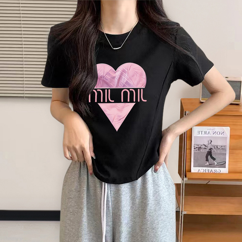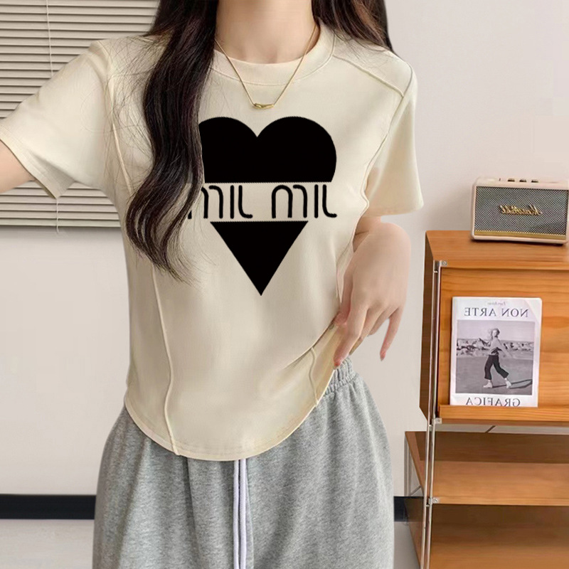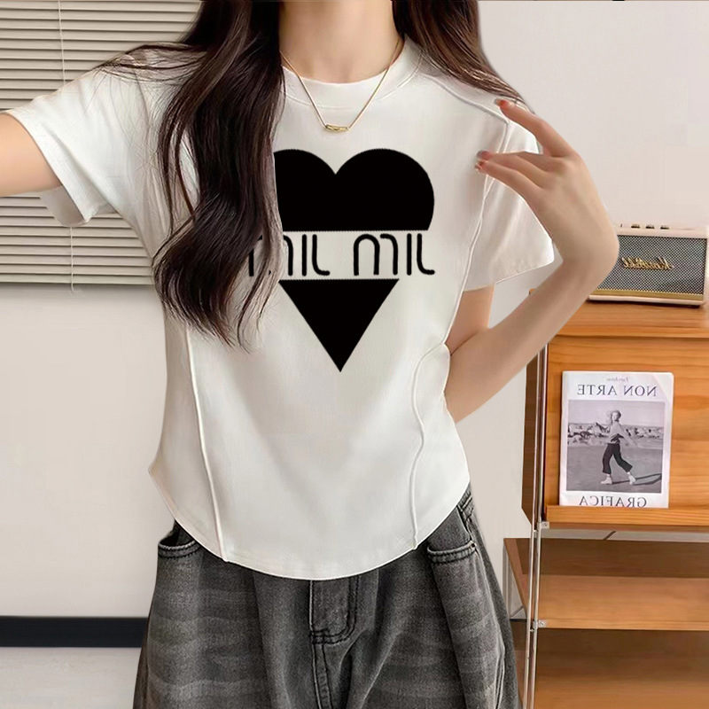 어깨 크루 넥 반팔 티셔츠 여성의 새로운 대형 슬림 핏 슬림 핏 디자인 감각 불규칙한 생선 셔츠 탑스토어 가기