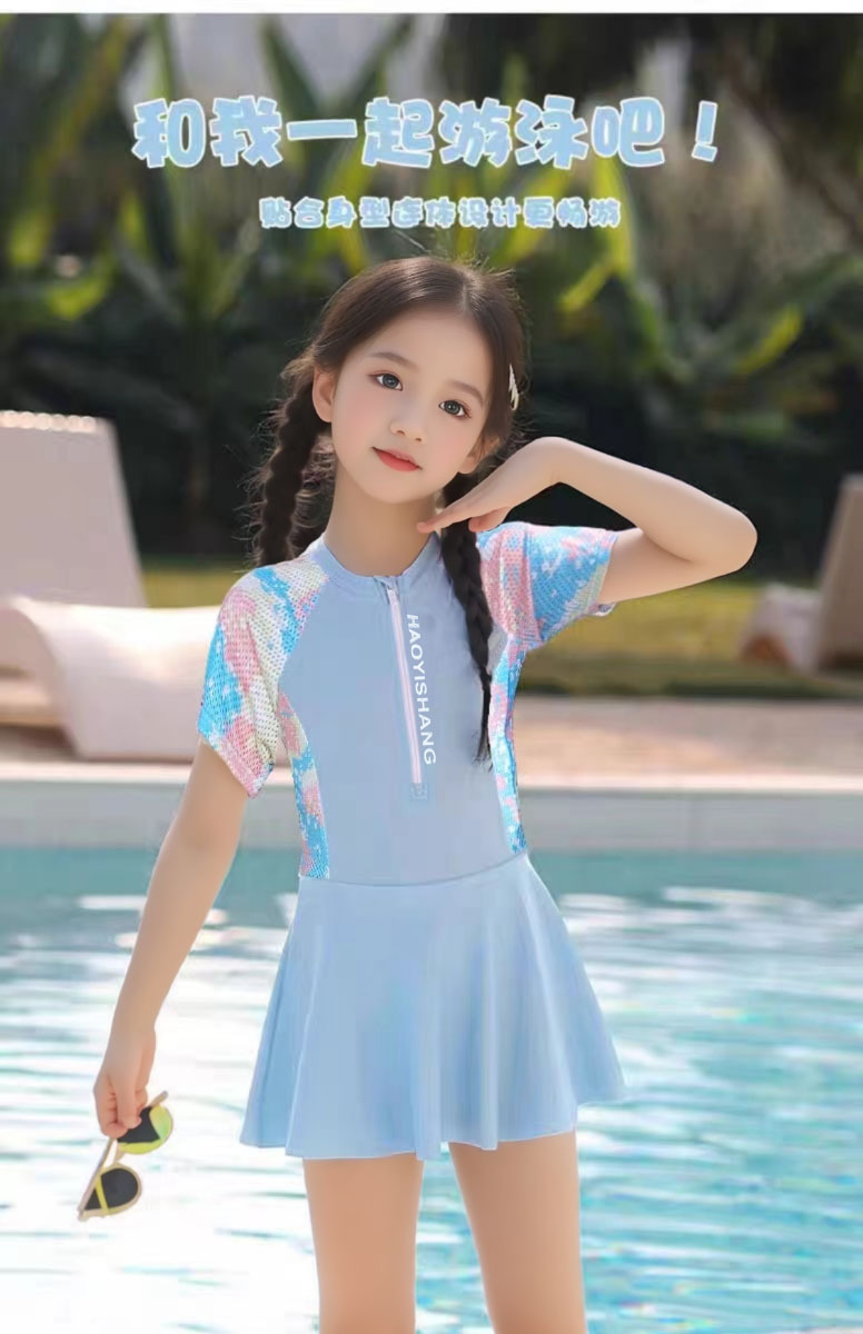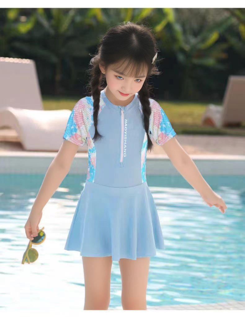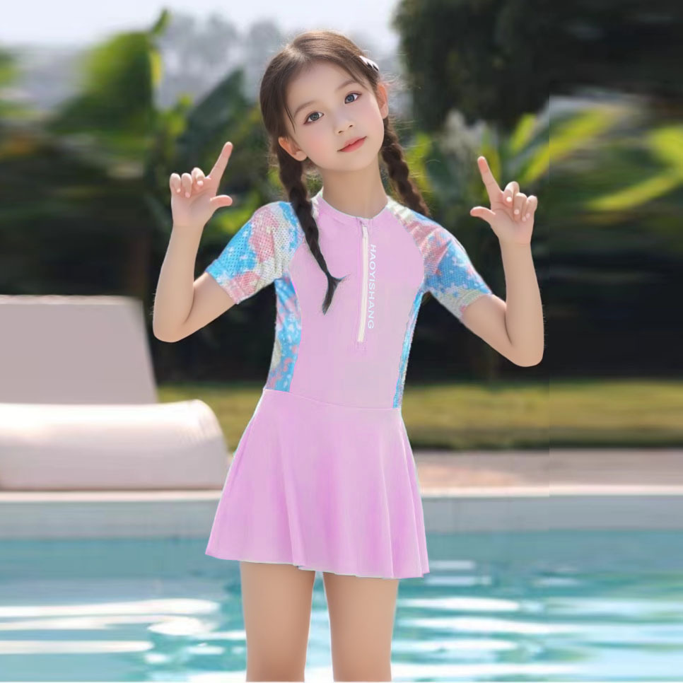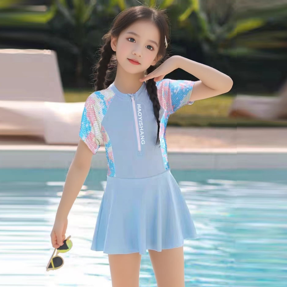 여자 수영복 걸스 빅 보이 2024 새로운 스타일 세트 가슴 패드 전문 여자 수영복 태양 방지 빠른 건조스토어 가기