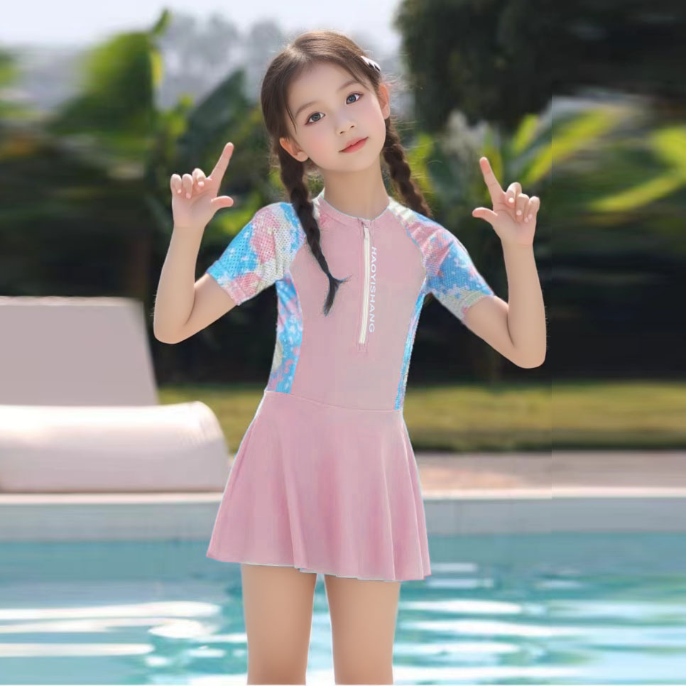 여자 수영복 걸스 빅 보이 2024 새로운 스타일 세트 가슴 패드 전문 여자 수영복 태양 방지 빠른 건조