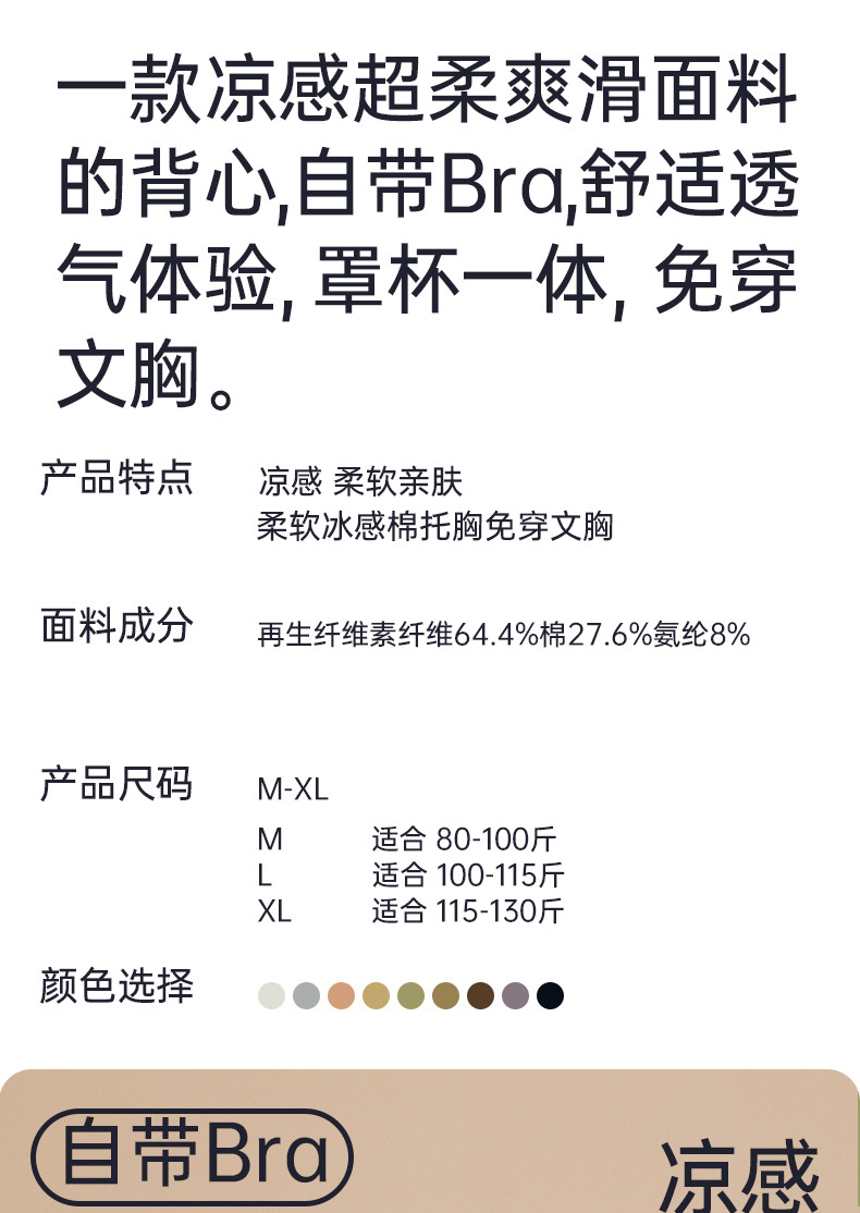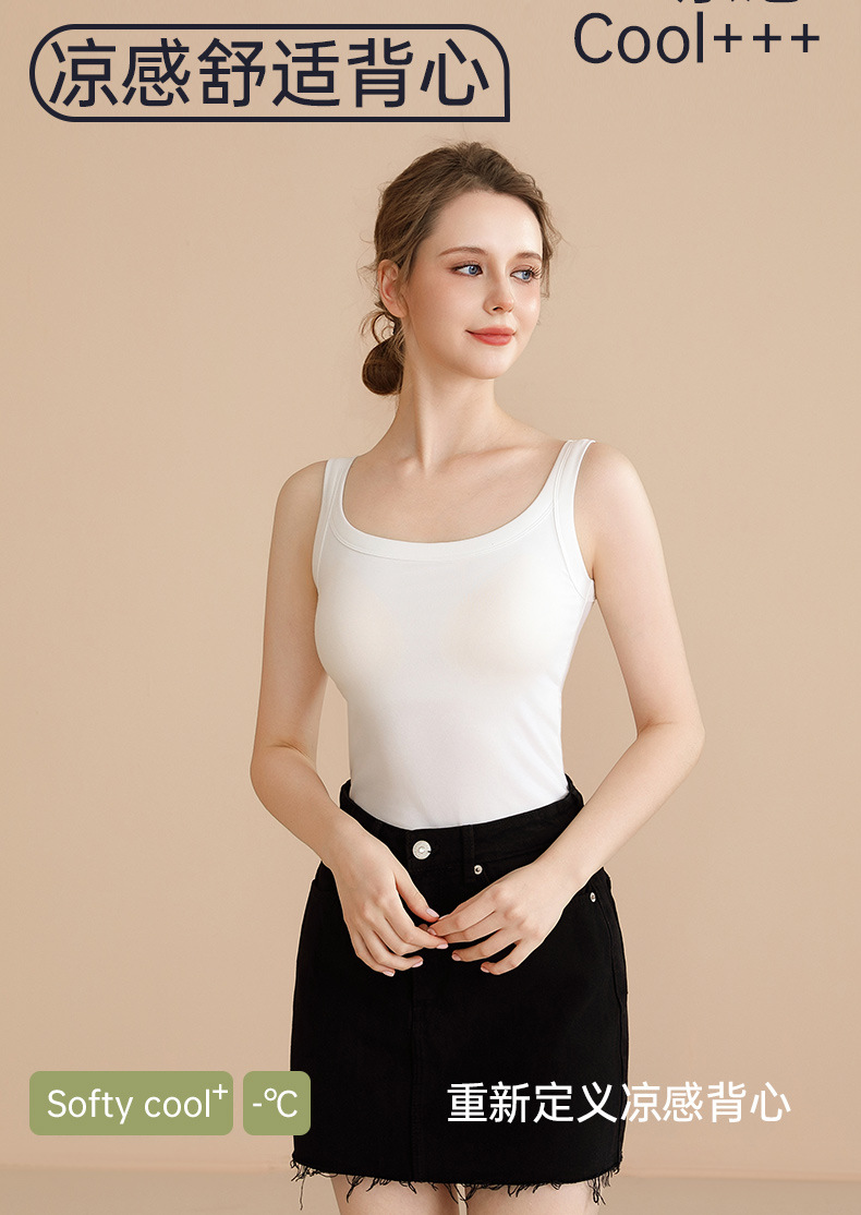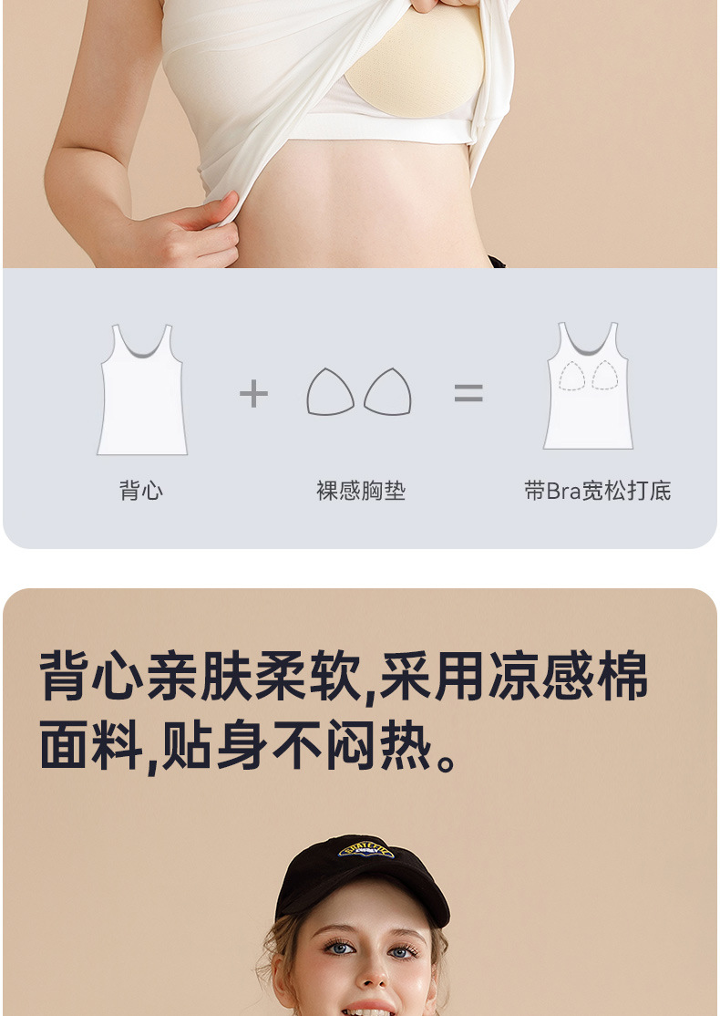 여성용 여름 얇은 민소매 탑, 내장형 브라 패드, 브라 착용 불필요, 올인원 이너웨어, 아우터웨어, 통기성 좋은 끈나시스토어 가기
