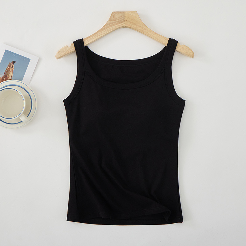 여성용 여름 얇은 민소매 탑, 내장형 브라 패드, 브라 착용 불필요, 올인원 이너웨어, 아우터웨어, 통기성 좋은 끈나시