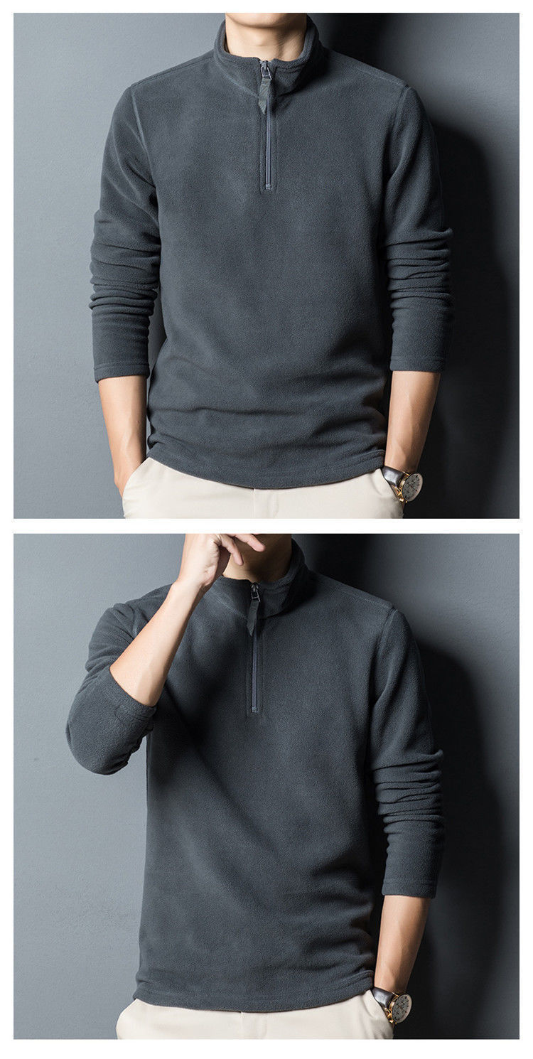 가을과 겨울 스탠드 칼라 폴라 플리스 하프 지퍼 티셔츠 남성용 젊고 중년의 단색 긴 소매 스웨터 따뜻한베이스 셔츠 세대 헤어