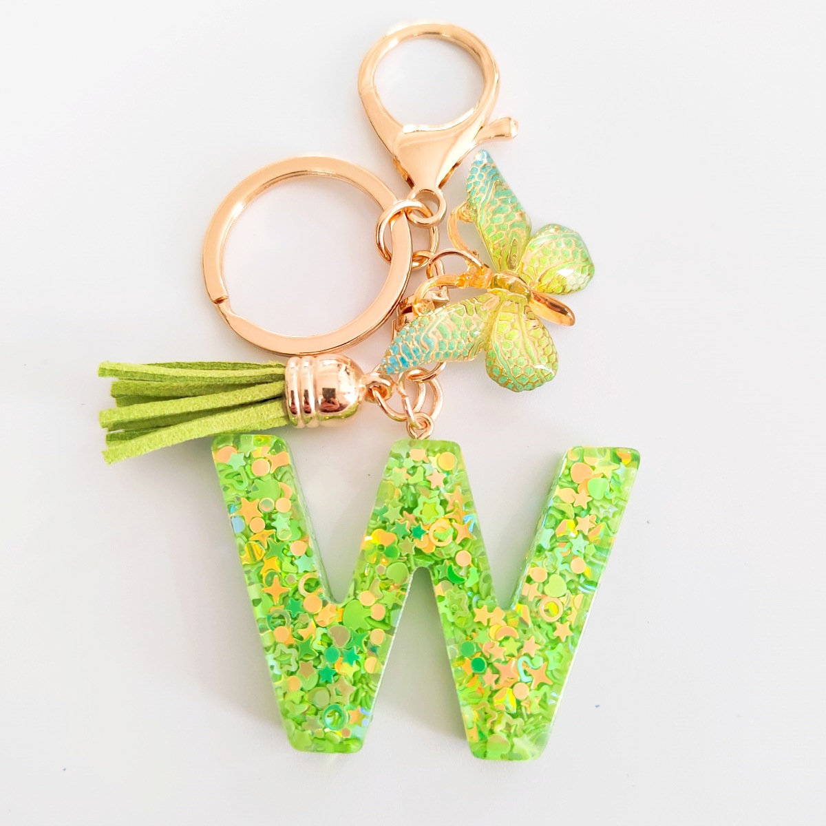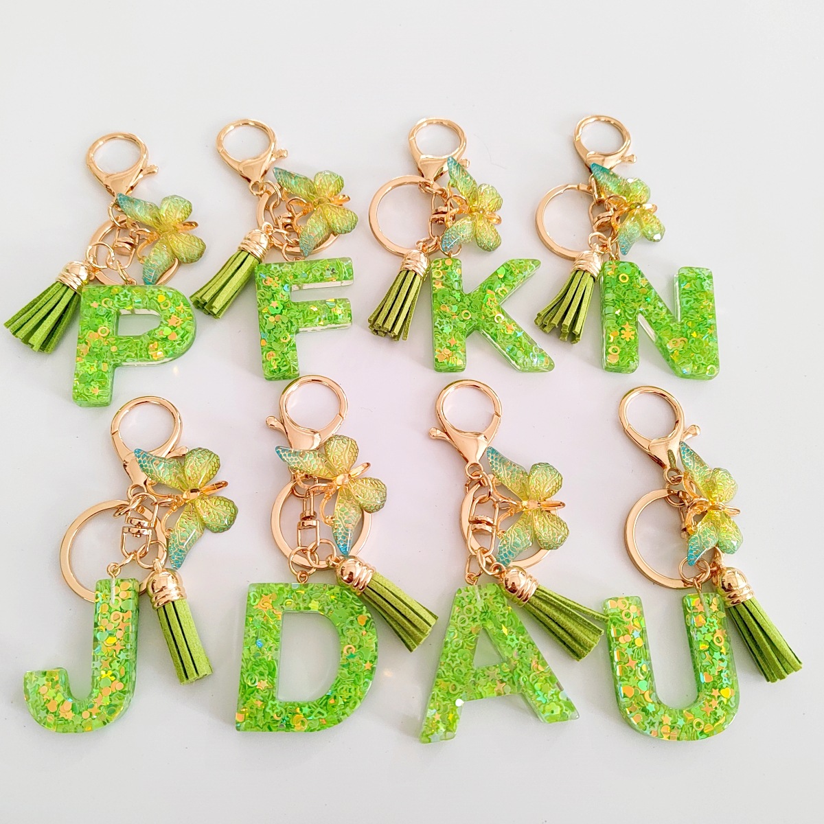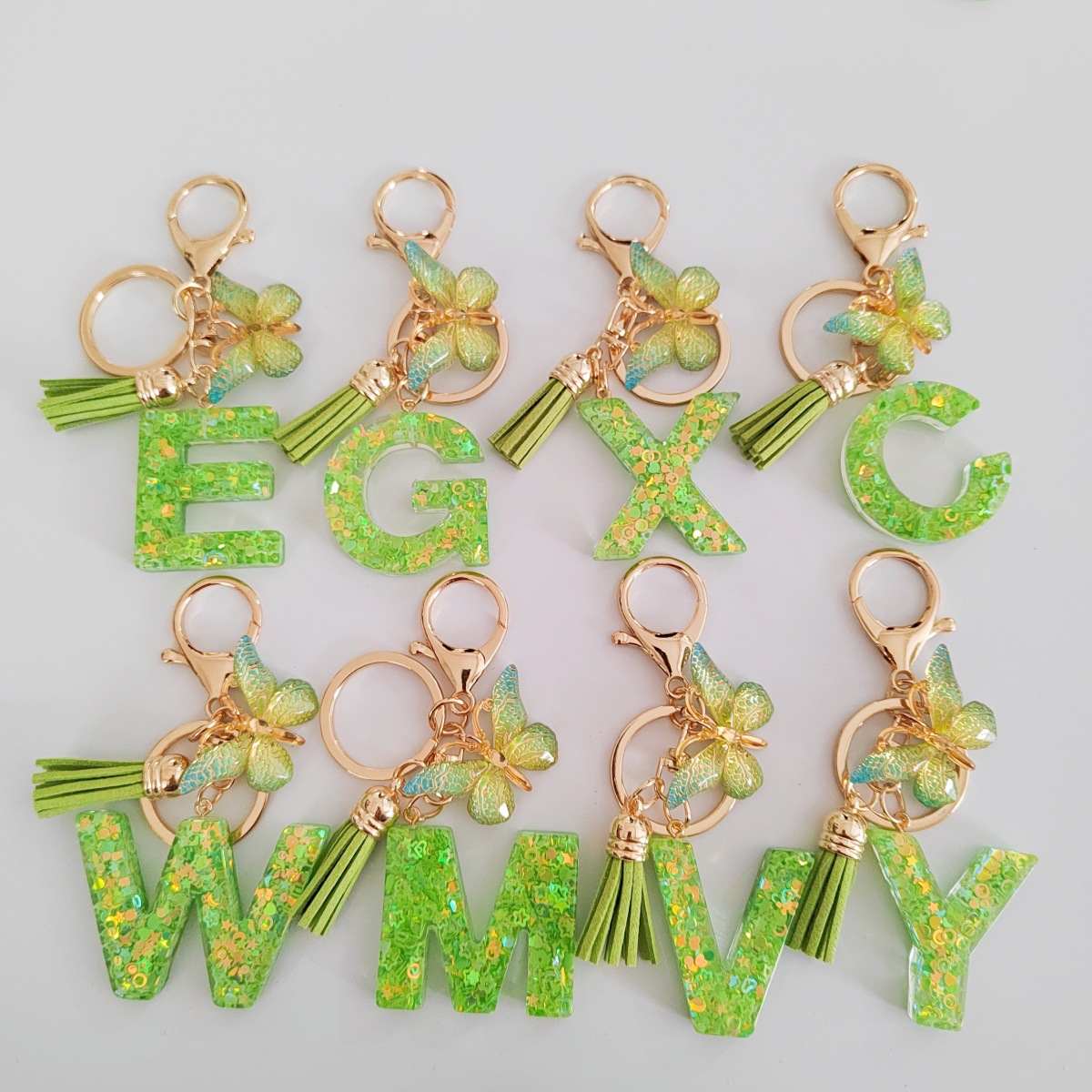 26 영어 알파벳 키 체인 펜던트 그린 스타 반짝이 수지 펜던트 유럽과 미국의 성격 키 체인스토어 가기